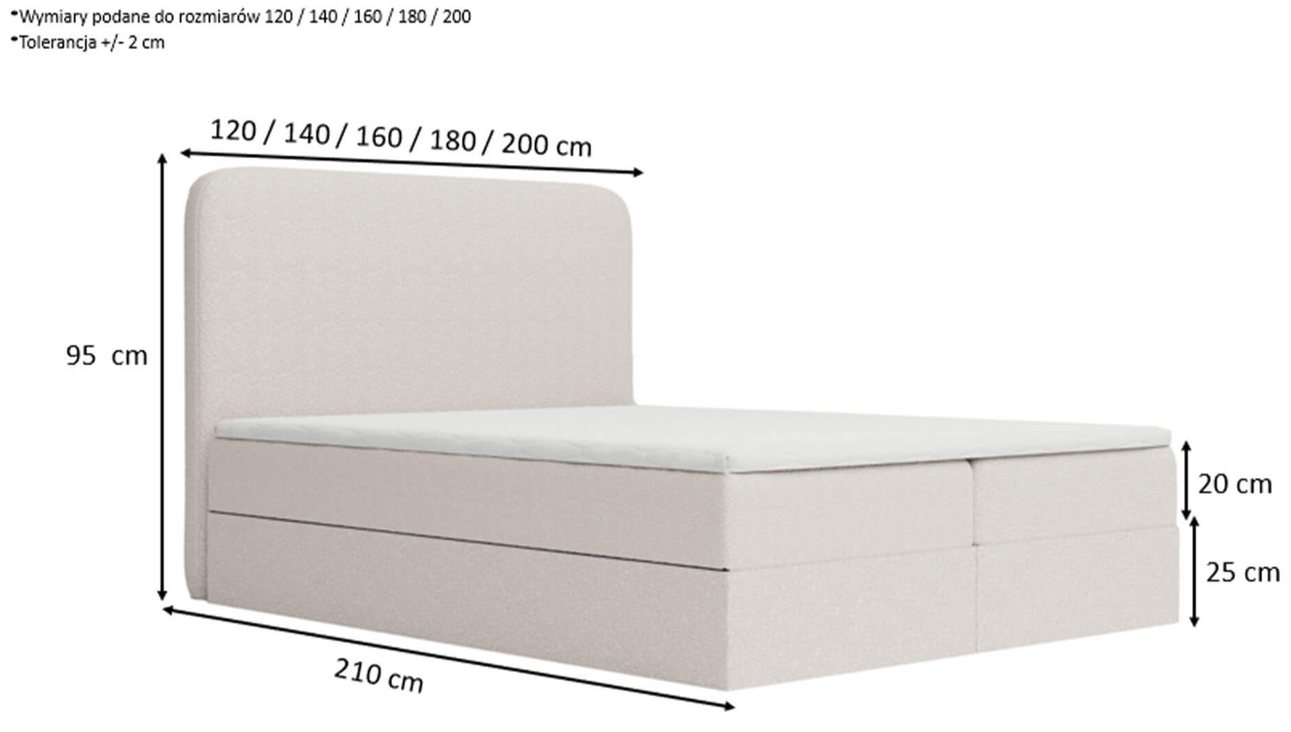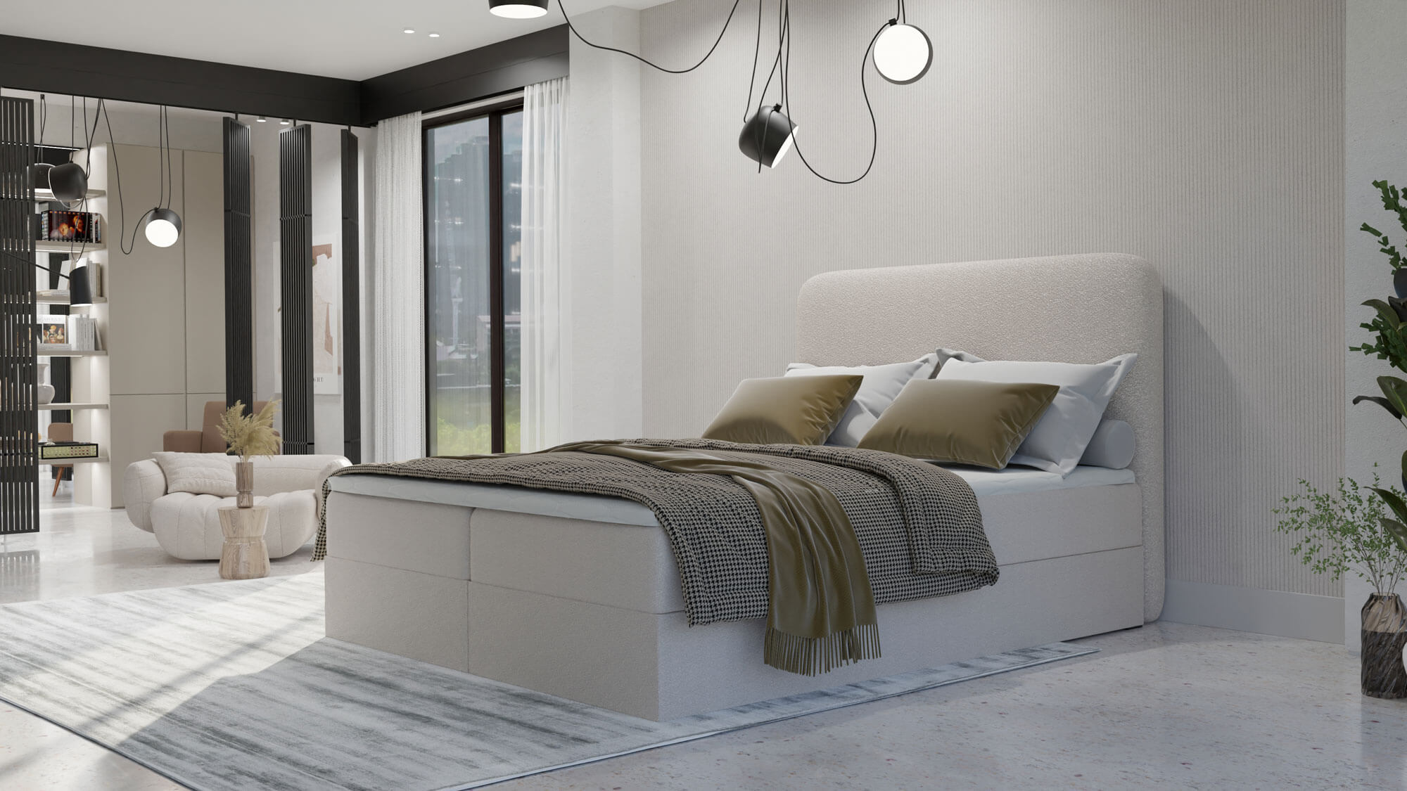 Łóżko kontynentalne LAMI2 w rozmiarze 140x200 to propozycja stworzona z myślą o osobach ceniących nowoczesny styl, wygodę oraz funkcjonalność na najwyższym poziomie. Jego elegancka, jednolita bryła z zaokrąglonym, tapicerowanym wezgłowiem bez przeszyć nadaje wnętrzu subtelnej lekkości i wyjątkowej harmonii. Gładkie wykończenie przyciąga wzrok, a miękka, przyjemna w dotyku tapicerka gwarantuje codzienny komfort i relaks po intensywnym dniu. Wysoka i solidna podstawa nie tylko doskonale podtrzymuje materac, ale również ułatwia codzienne wstawanie, zapewniając wygodę użytkowania każdemu domownikowi. Praktyczny i pojemny schowek na pościel ukryty wewnątrz łóżka pozwala zaoszczędzić miejsce w sypialni, utrzymując porządek i funkcjonalność wnętrza. Automaty sprężynowe w stelażu ułatwiają dostęp do pojemnika, dzięki czemu korzystanie z dodatkowej przestrzeni do przechowywania staje się niezwykle komfortowe. Stabilna i trwała konstrukcja łóżka LAMI2 to gwarancja wieloletniego użytkowania bez kompromisów. Model ten oferuje możliwość wyboru koloru tapicerki, co pozwala idealnie dopasować go do charakteru Twojej sypialni – niezależnie od stylu, w jakim została urządzona. Jeśli marzysz o sypialni pełnej klasy, spokoju i ponadczasowego designu, łóżko kontynentalne LAMI2 140x200 to doskonały wybór, który łączy w sobie estetykę, funkcjonalność i wygodę.