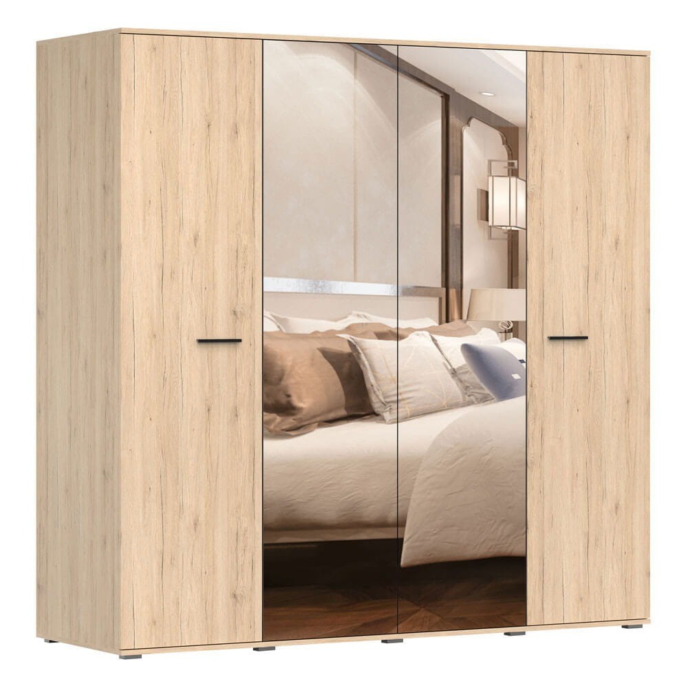 Szafa BARI 200 cm z lustrem to przestronne rozwiązanie, które idealnie wpasowuje się w każde wnętrze dzięki swojej nowoczesnej kolorystyce. Drzwi szafy są tradycyjnie otwierane, co znacząco ułatwia jej codzienne użytkowanie. Wygodne uchwyty oraz lustra umieszczone na frontach optycznie powiększają przestrzeń w pomieszczeniu. Wewnątrz szafy znajduje się wiele głębokich półek oraz drążek na wieszaki, co zapewnia dużo miejsca na przechowywanie ubrań i akcesoriów.