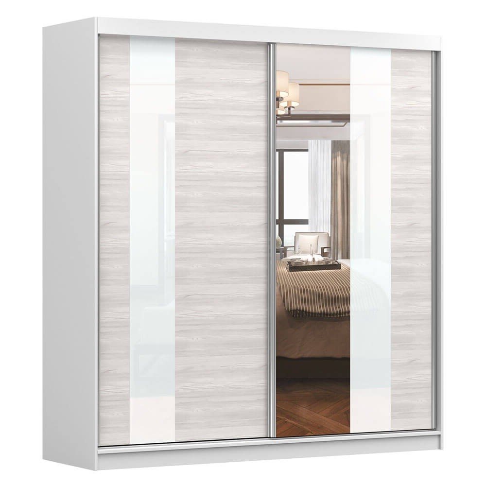 Szafa MULTI - 32 | 203| Dąb sonoma, Biały półpołysk z lustrem