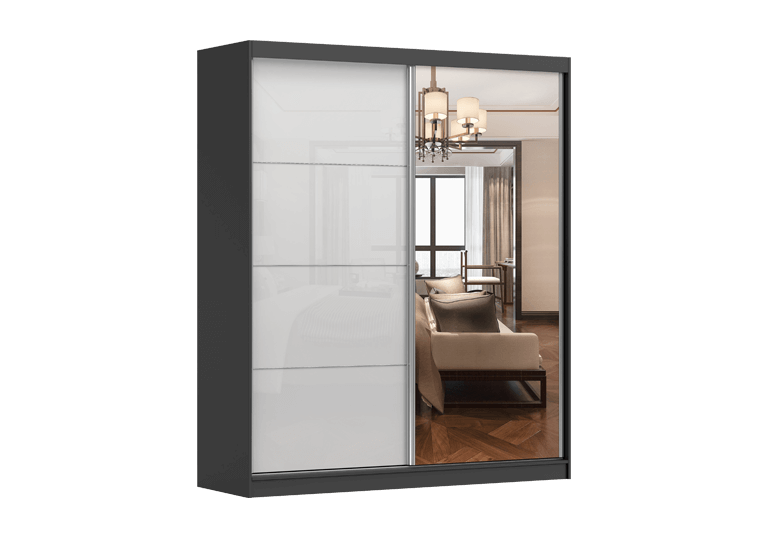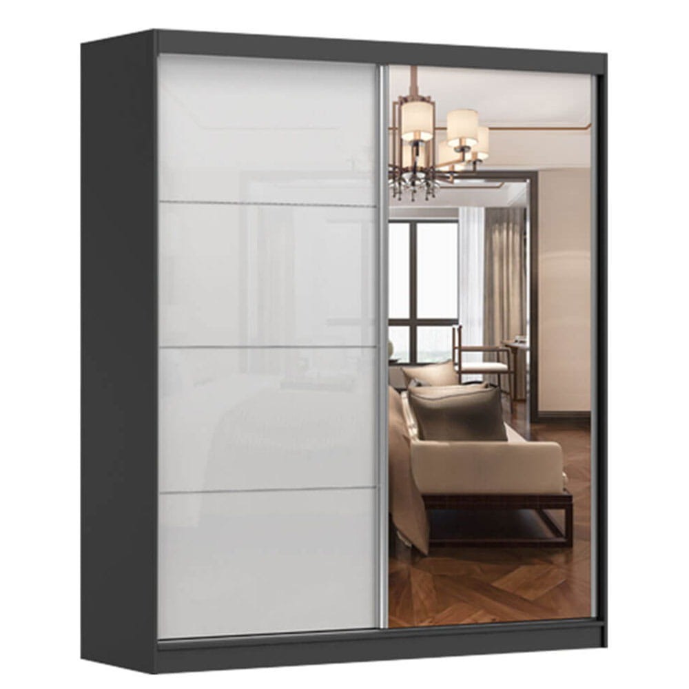 Szafa przesuwna z lustrem 183 cm – czarno-biała