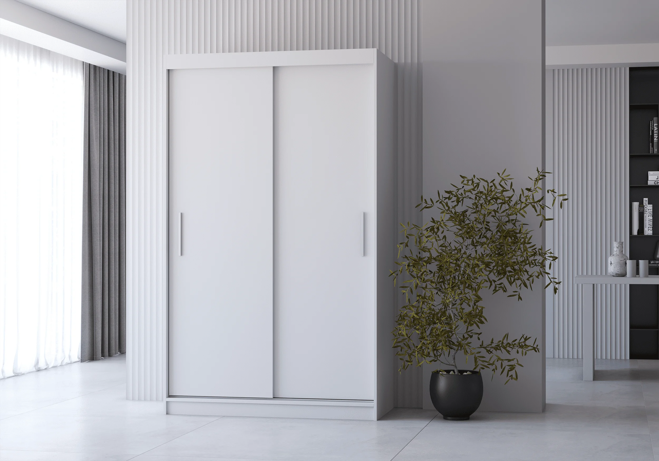 Szafa NEOMI 04 w kolorze białym to nowoczesny mebel, który łączy prostotę formy z wysoką funkcjonalnością. System drzwi przesuwnych sprawia, że szafa idealnie sprawdzi się również w mniejszych pomieszczeniach – otwieranie nie wymaga dodatkowej przestrzeni, a wnętrze pozostaje zawsze łatwo dostępne.