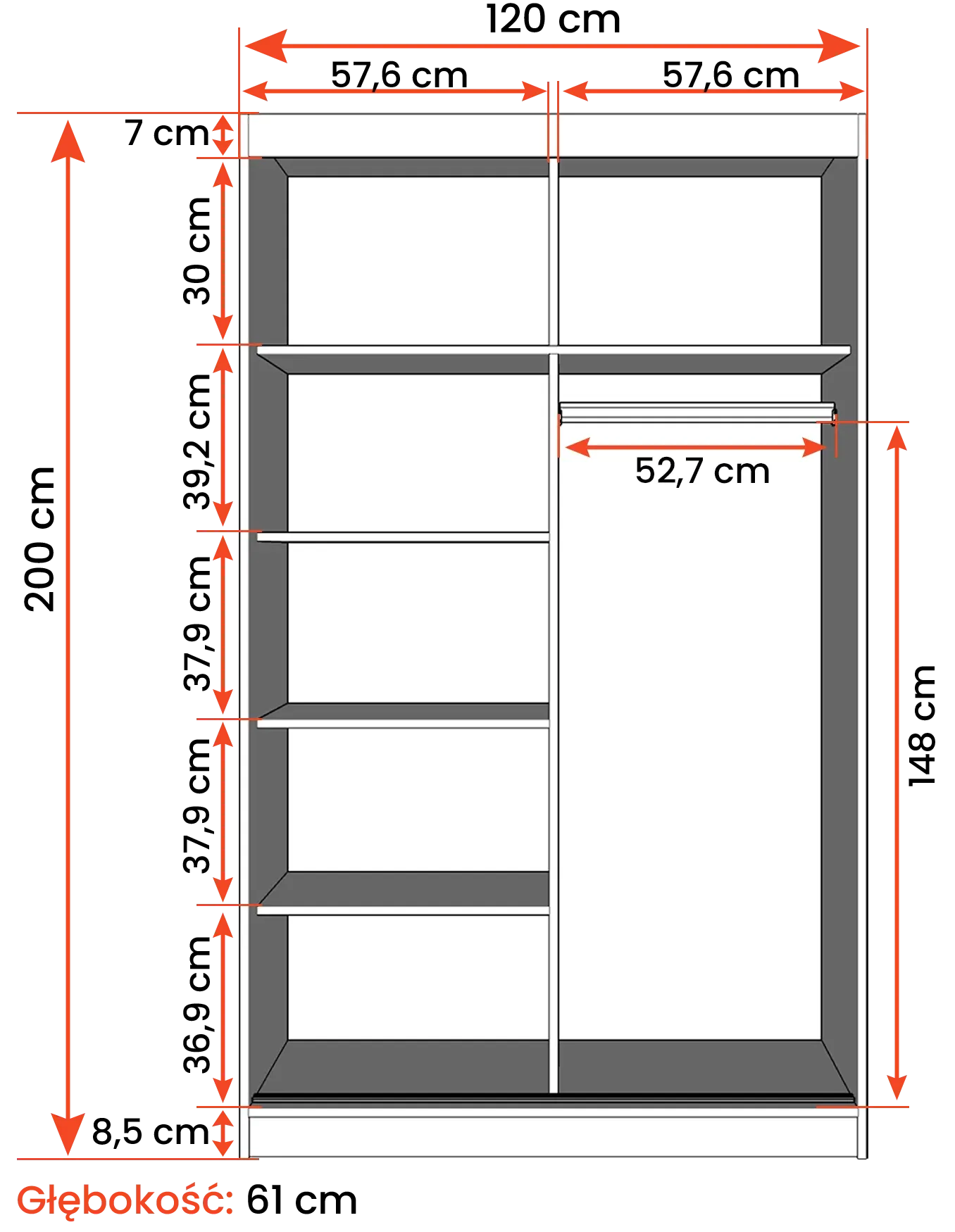 Szafa NEOMI 05 w kolorze dąb sonoma z lustrem to praktyczny i elegancki mebel, który świetnie sprawdzi się w każdym nowoczesnym wnętrzu. System drzwi przesuwnych pozwala na swobodne korzystanie z szafy nawet w niewielkich pomieszczeniach, a duże lustro umieszczone na froncie nie tylko ułatwia codzienne użytkowanie, ale też optycznie powiększa i rozjaśnia przestrzeń. Wnętrze szafy zostało zaprojektowane z myślą o wygodnym przechowywaniu ubrań i akcesoriów – wyposażone jest w pięć pojemnych półek oraz drążek na wieszaki. Konstrukcja wykonana z płyty laminowanej o grubości 16 mm jest solidna i odporna na uszkodzenia, a obrzeża zabezpieczone okleiną ABS zapewniają estetyczne wykończenie i trwałość na lata. Metalowe prowadnice z rolkami na łożyskach gwarantują cichą i płynną pracę drzwi. Szafa NEOMI 05 to idealne połączenie funkcjonalności i stylu, które doda wnętrzu klasy i harmonii.