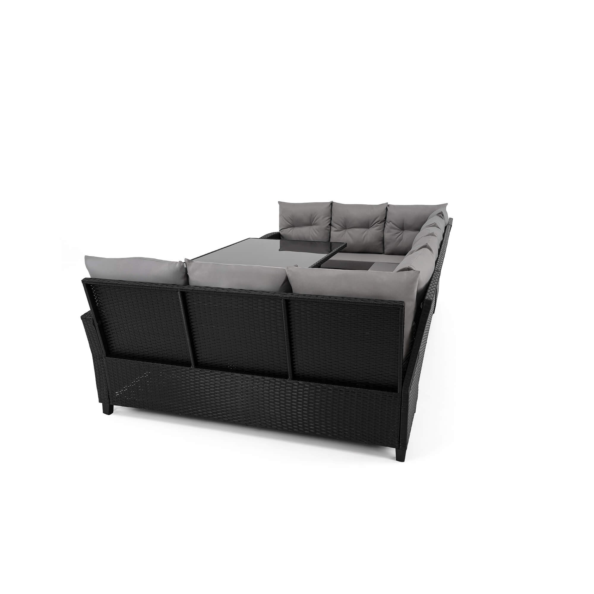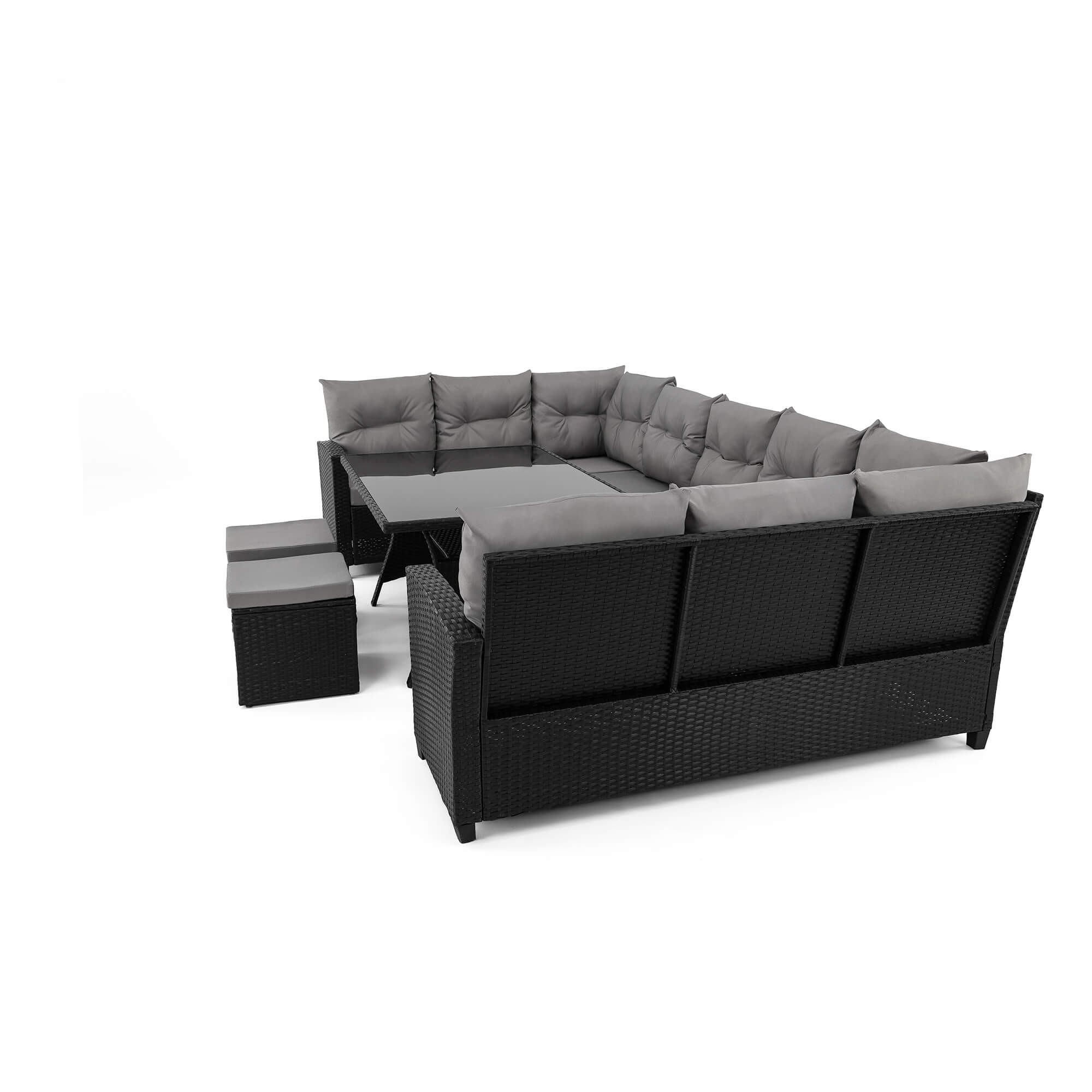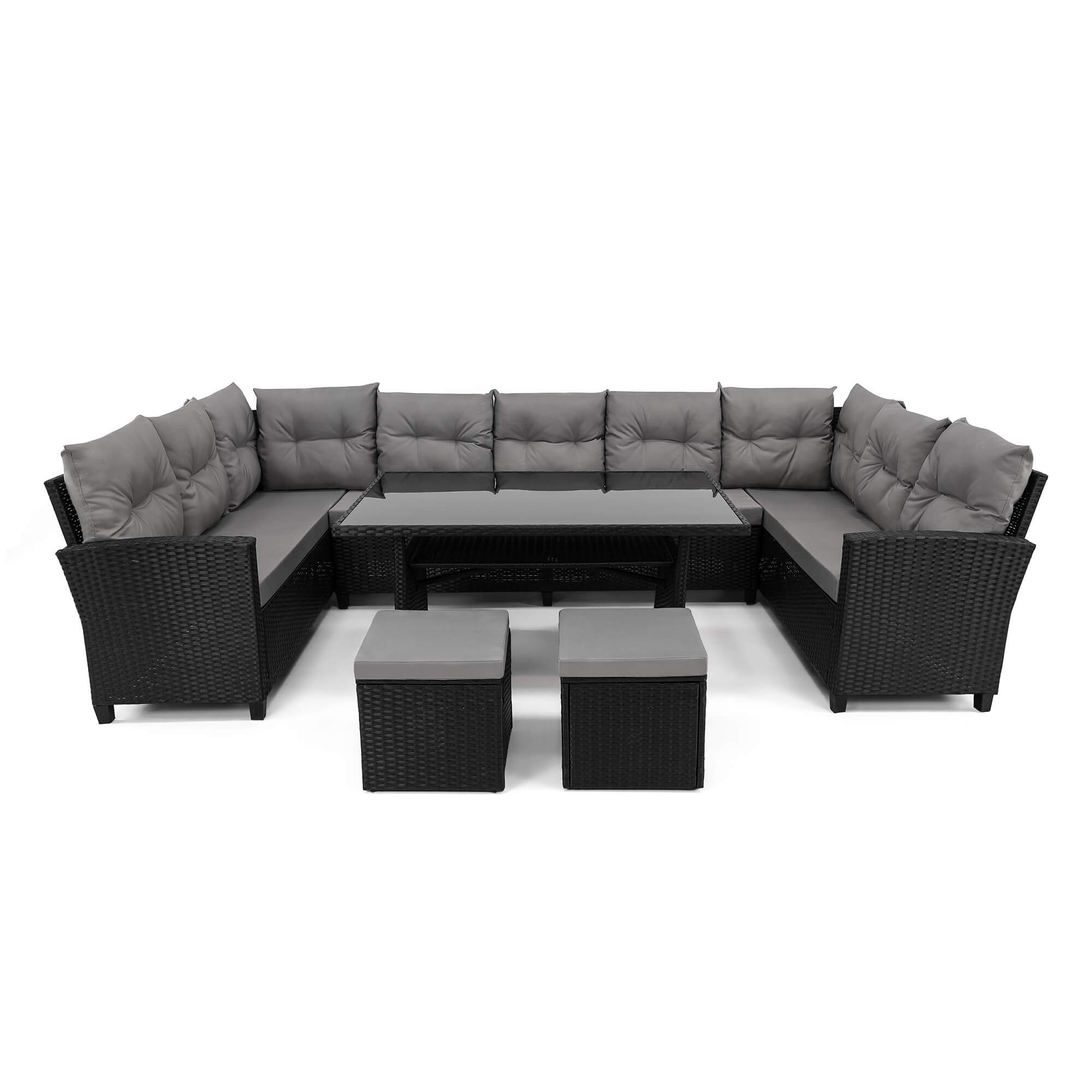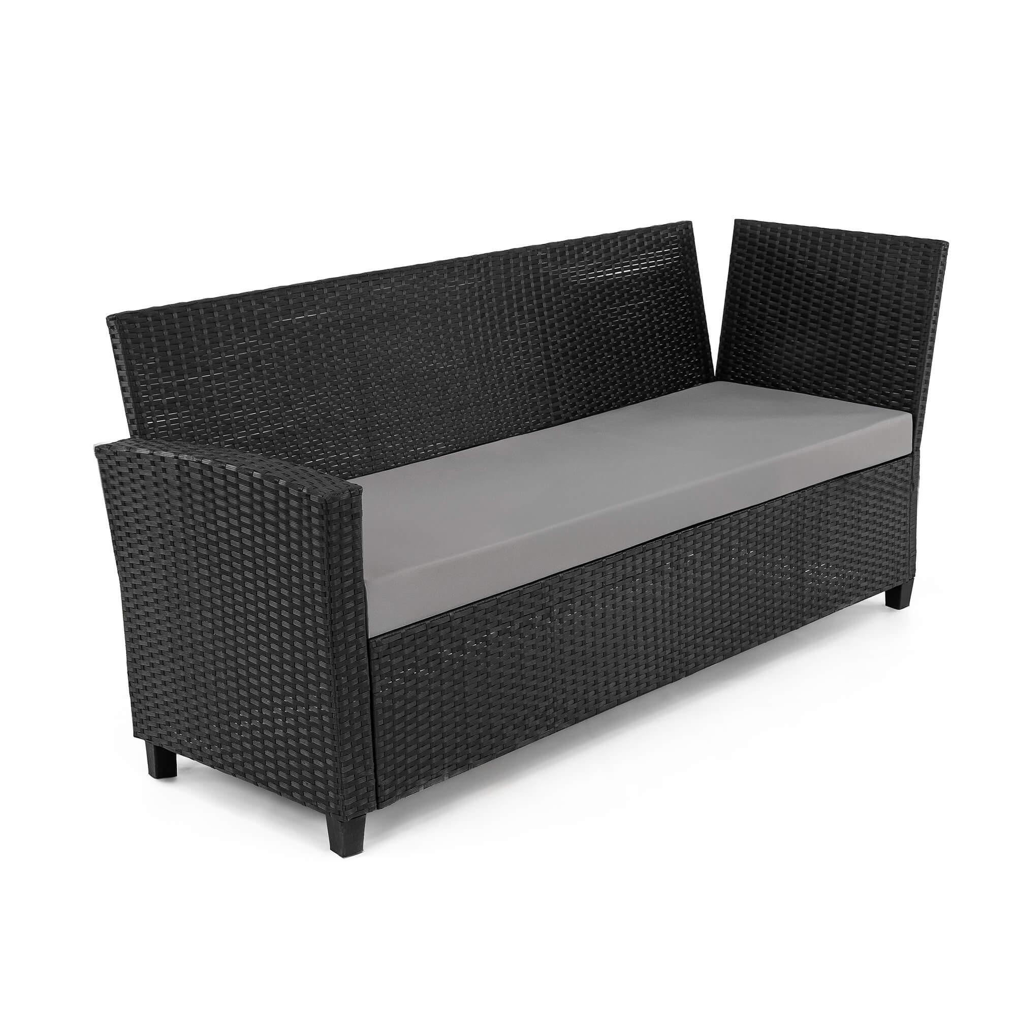 Zestaw ogrodowy PORTO XXL | Dwa pojemniki | Technorattan | Czarny | Poduszki szare 01