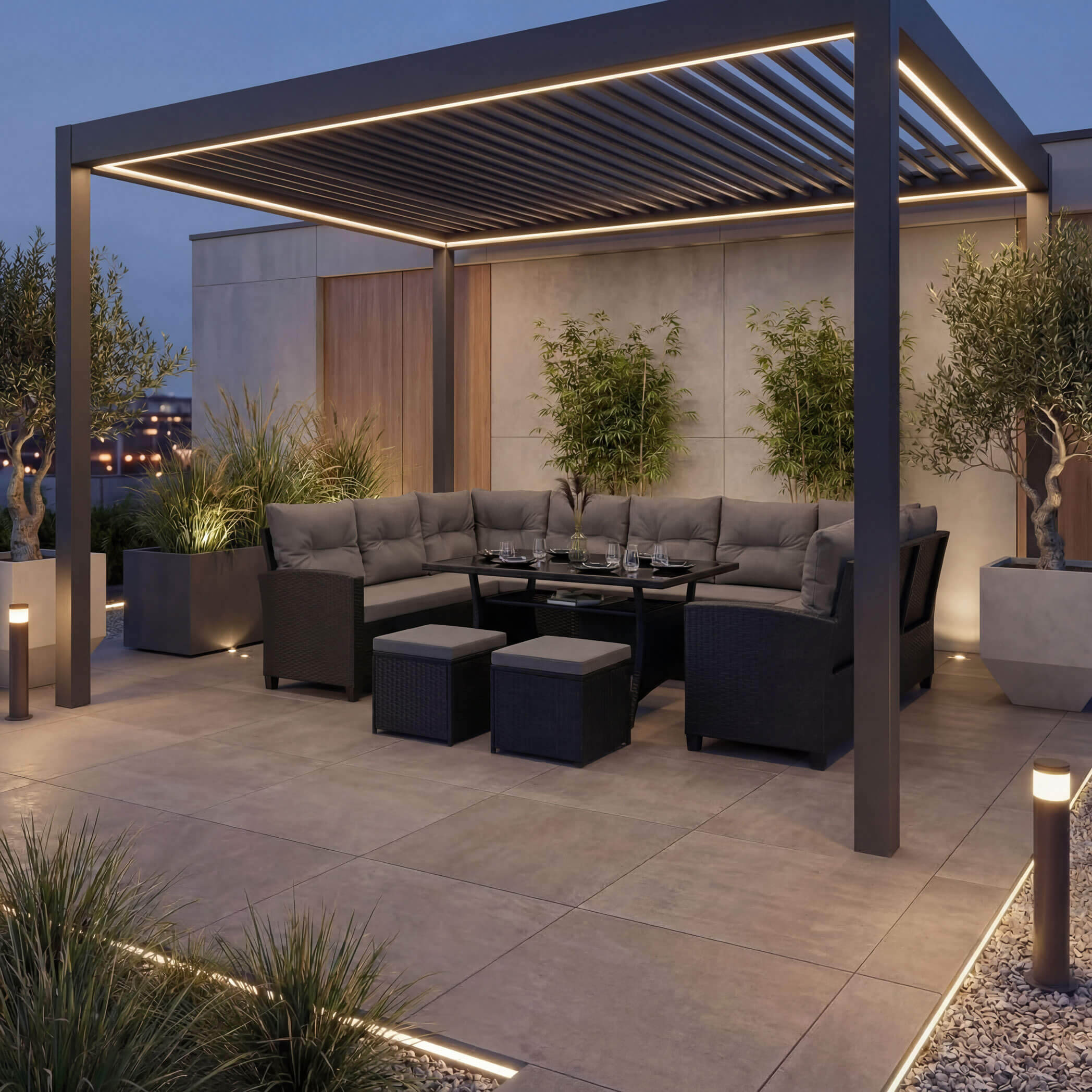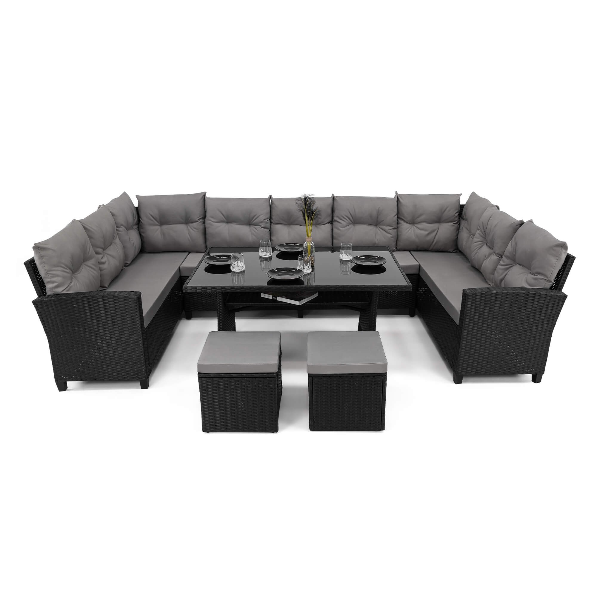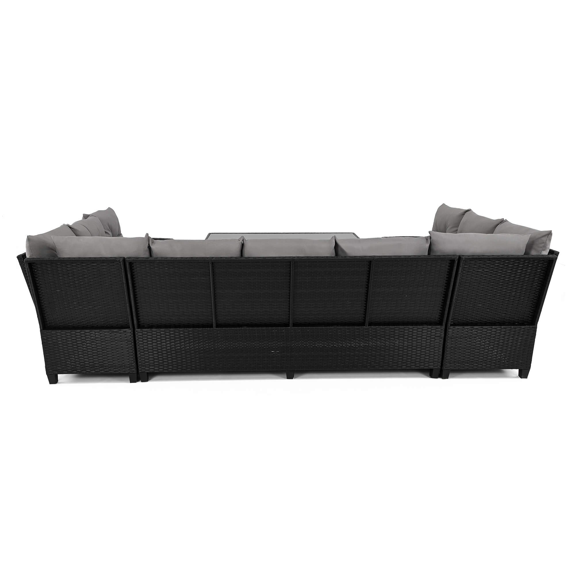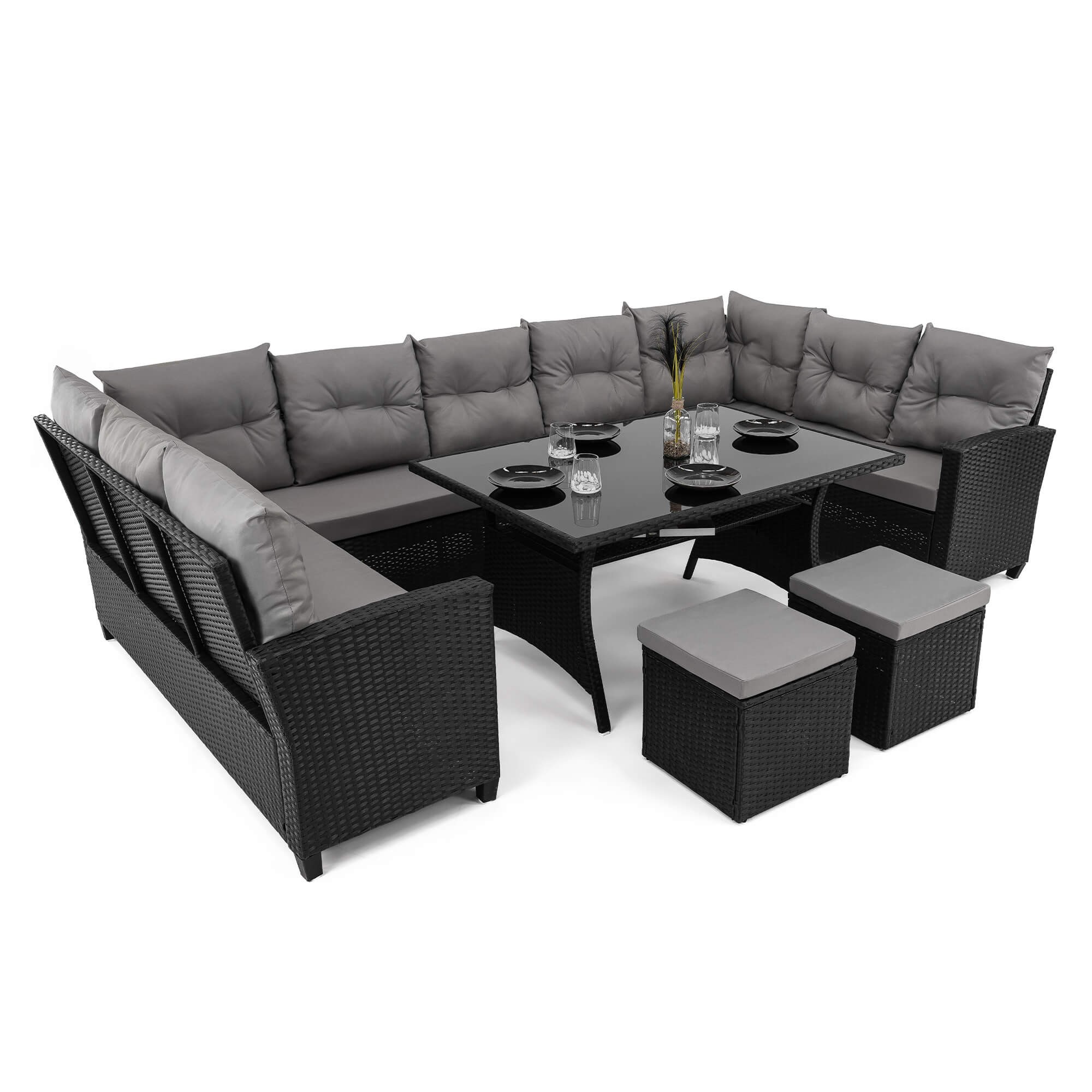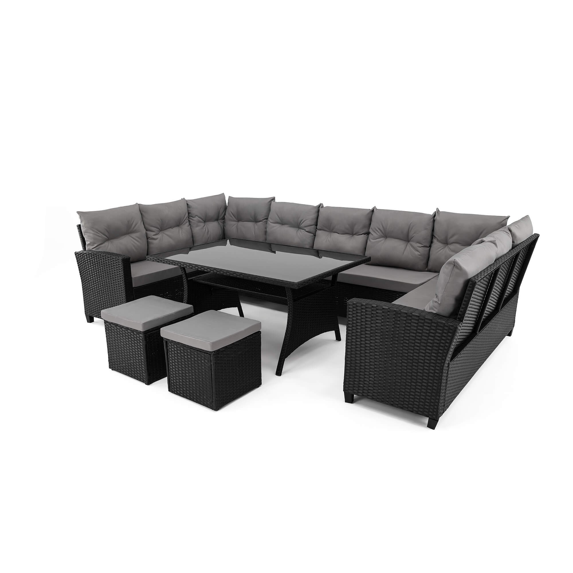 Zestaw ogrodowy PORTO XXL | Dwa pojemniki | Technorattan | Czarny | Poduszki szare 01