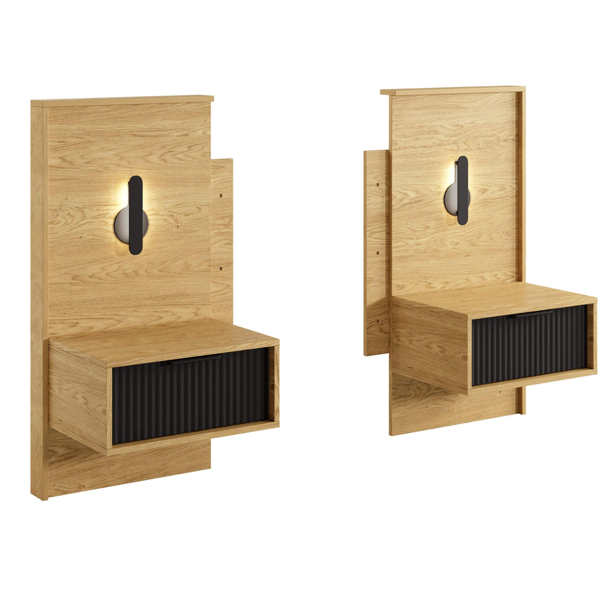 2 stoliki nocne z oświetleniem LED BALTIC (D) | Dąb baltic, czarny
