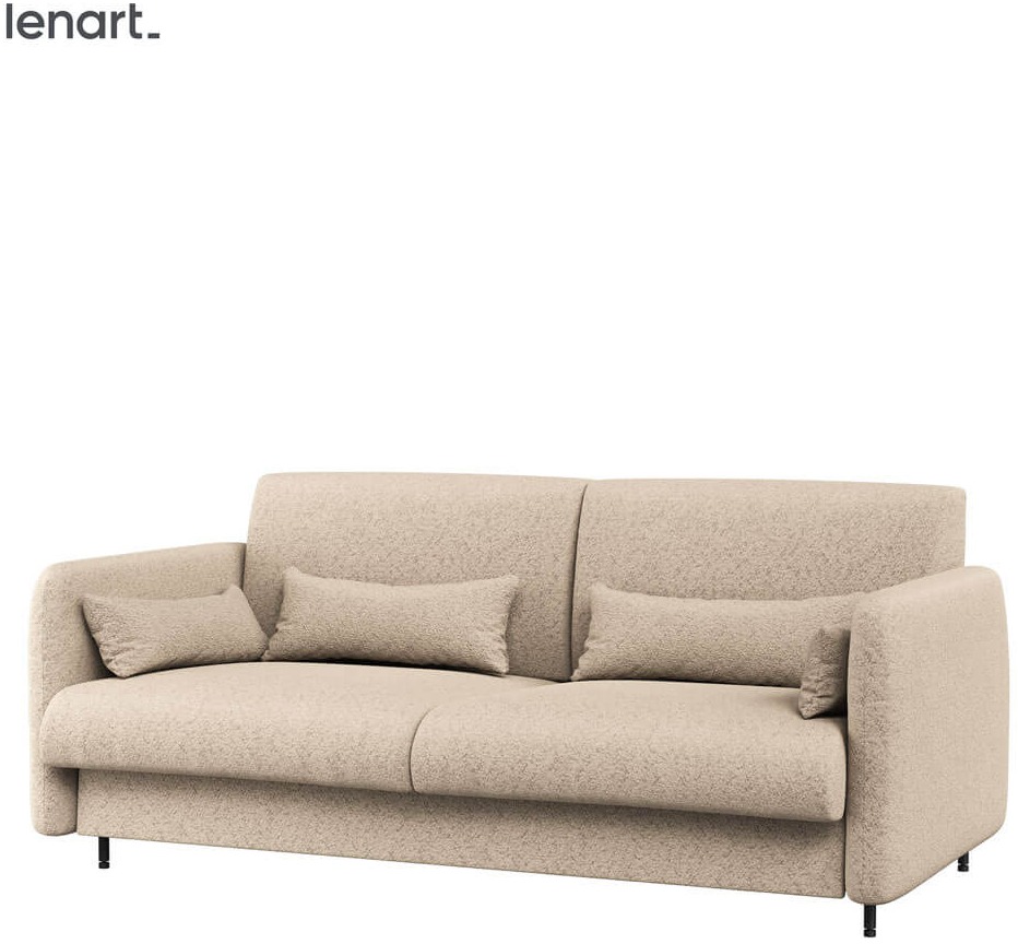 Lenart BED CONCEPT BC-18 to sofa dedykowana do półkotapczanu BC-01 pod materac o szerokości 140 cm. Marka Lenart przygotowała ten model z myślą o osobach, które chcą połączyć nowoczesny design z maksymalną funkcjonalnością. Sofa BC-18 w tkaninie boucle PIU 03 i z frontem w kolorze dąb artisan świetnie komponuje się z różnymi aranżacjami, wprowadzając do wnętrza przytulny i elegancki klimat. Dzięki systemowi BED CONCEPT w kilka chwil zamienisz wygodny salon w pełnowymiarową sypialnię. Sofa z półkotapczanem pozwala na komfortowe korzystanie z przestrzeni w ciągu dnia, a wieczorem zapewnia spokojny i wygodny sen. To praktyczne rozwiązanie, które idealnie sprawdza się w małych mieszkaniach oraz pokojach gościnnych.