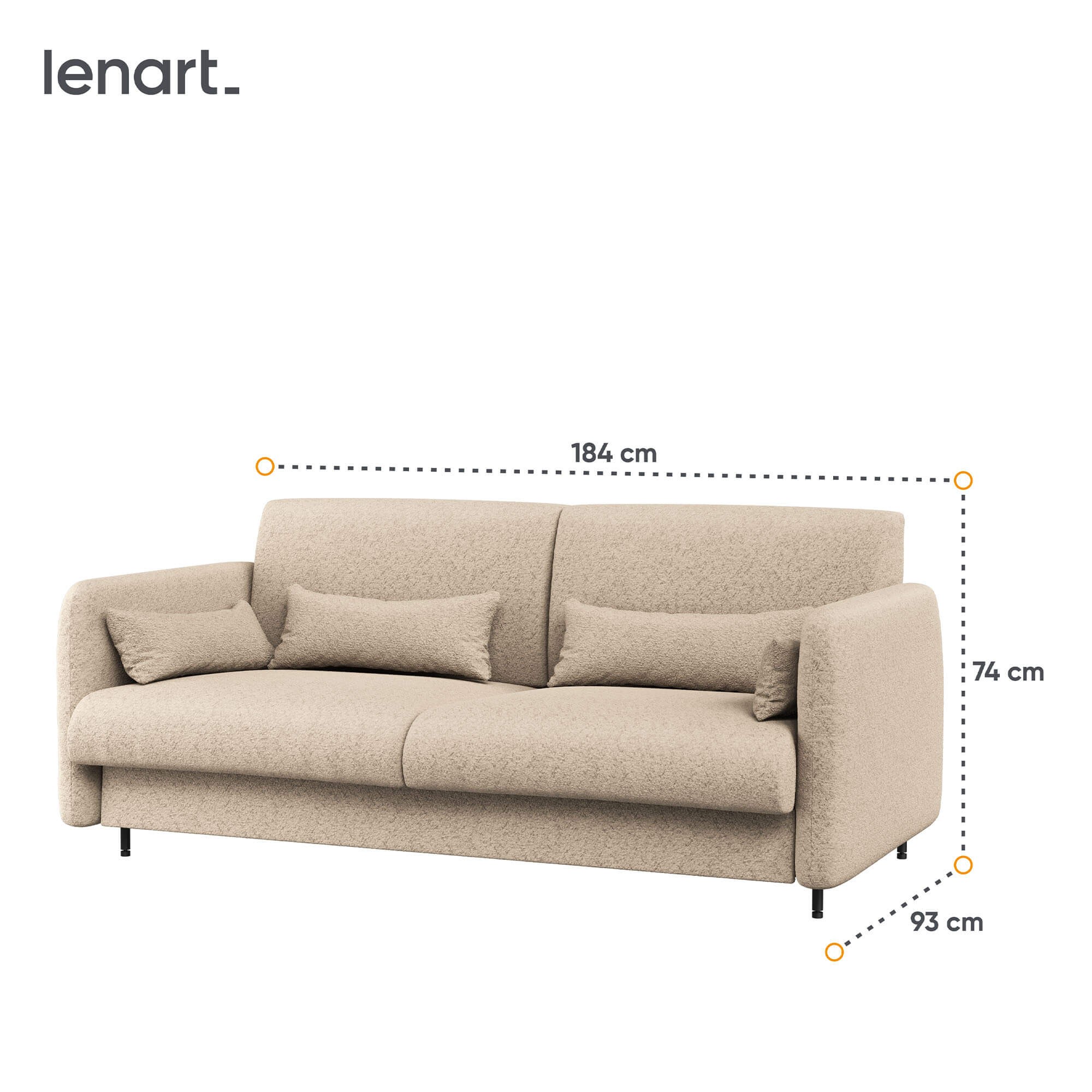 Lenart BED CONCEPT BC-19 to sofa dopasowana do półkotapczanu BC-12 pod materac o szerokości 160 cm. Marka Lenart przygotowała ten model tak, aby łączył funkcjonalność z eleganckim stylem. Sofa BC-19 w tkaninie boucle PIU 03 z frontem w wybarwieniu dąb artisan to rozwiązanie, które idealnie sprawdzi się w nowoczesnych wnętrzach, dodając im przytulnego charakteru. System BED CONCEPT pozwala w kilka chwil zmienić salon w pełnowymiarową sypialnię. W ciągu dnia sofa jest wygodnym miejscem do spotkań i relaksu, a wieczorem zamienia się w komfortowe łóżko. To doskonała propozycja dla osób, które chcą maksymalnie wykorzystać przestrzeń w małych mieszkaniach i kawalerkach, nie tracąc przy tym estetyki i komfortu.