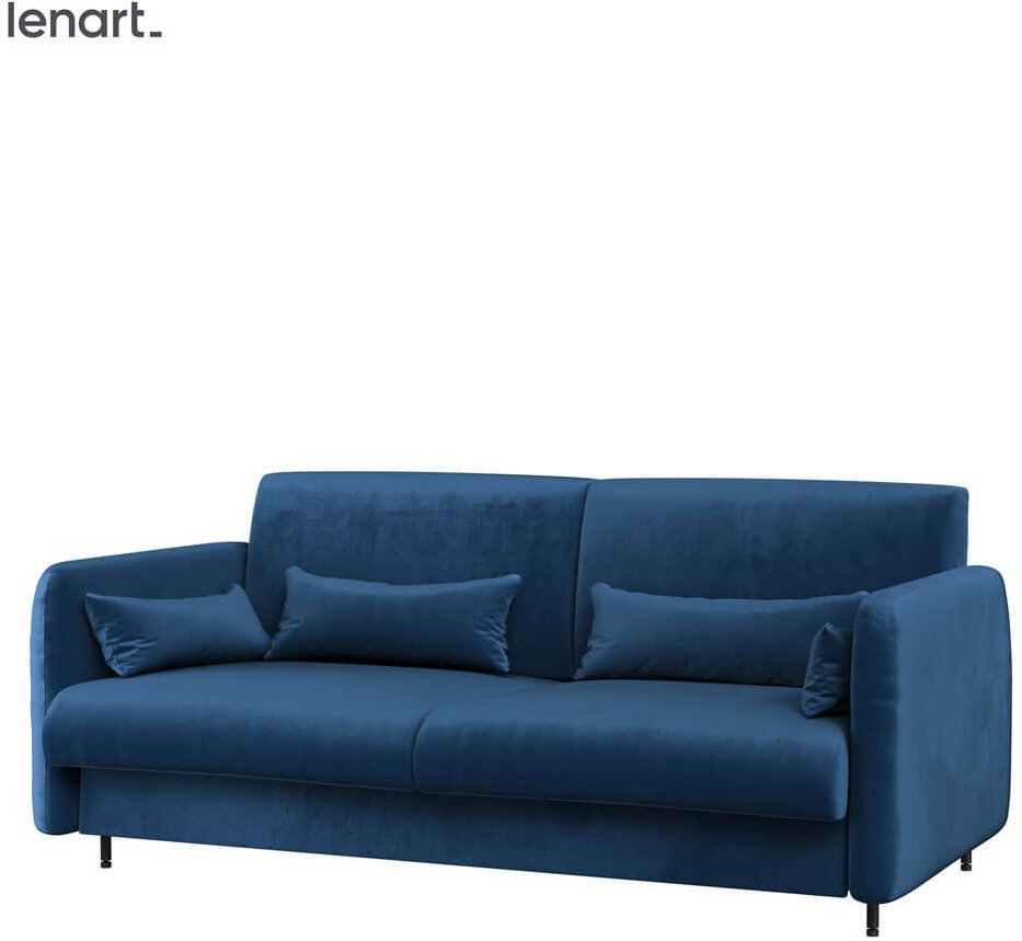 Lenart BED CONCEPT BC-19 Sofa 160 to praktyczne uzupełnienie łóżka chowanego w szafie BC-12 w kolorze szarym. Dzięki temu połączeniu powstaje zestaw, który łączy nowoczesny design z funkcjonalnością, pozwalając w prosty sposób przekształcić salon w wygodną sypialnię. Marka Lenart zadbała o to, by sofa BC-19 była nie tylko estetyczna, ale również trwała i komfortowa w codziennym użytkowaniu. Obicie w tkaninie Solo 263 w odcieniu granatowym nadaje całości wyjątkowego charakteru i sprawia, że mebel świetnie komponuje się w nowoczesnych aranżacjach. Zestaw BC-12 z sofą BC-19 to idealne rozwiązanie do małych mieszkań i kawalerek, w których liczy się każdy centymetr przestrzeni. To propozycja dla osób szukających połączenia funkcjonalności i elegancji.