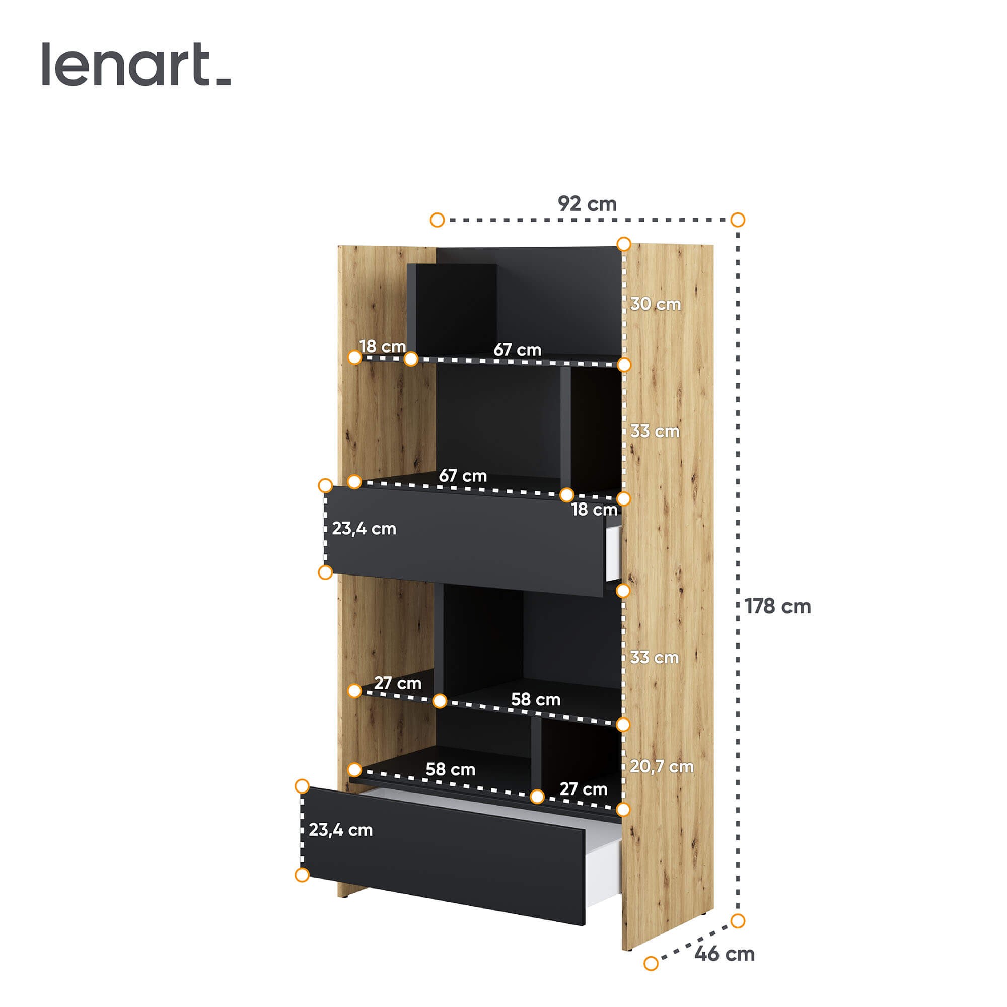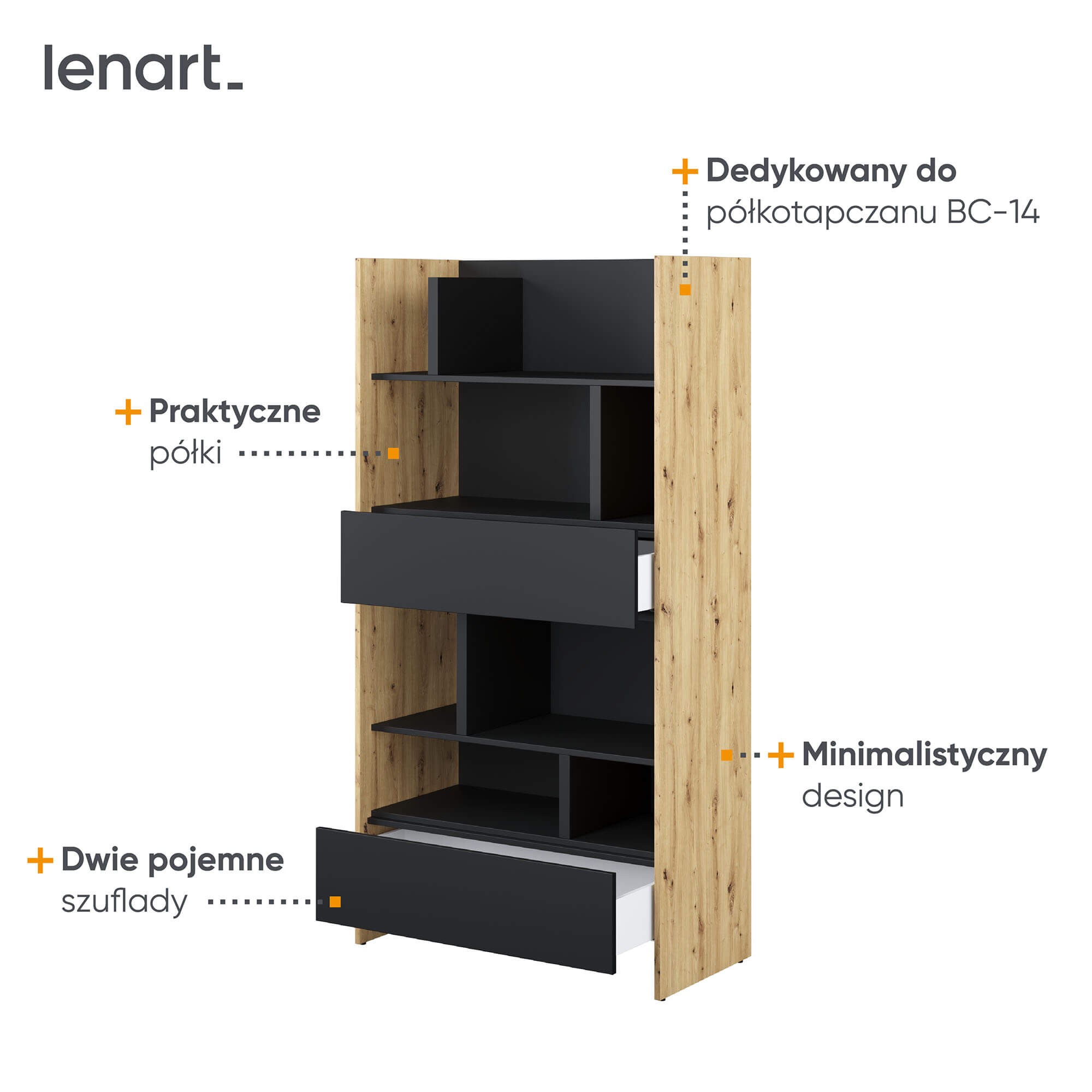 BED CONCEPT BC-28 - regał 92x178 - dąb artisan/czarny