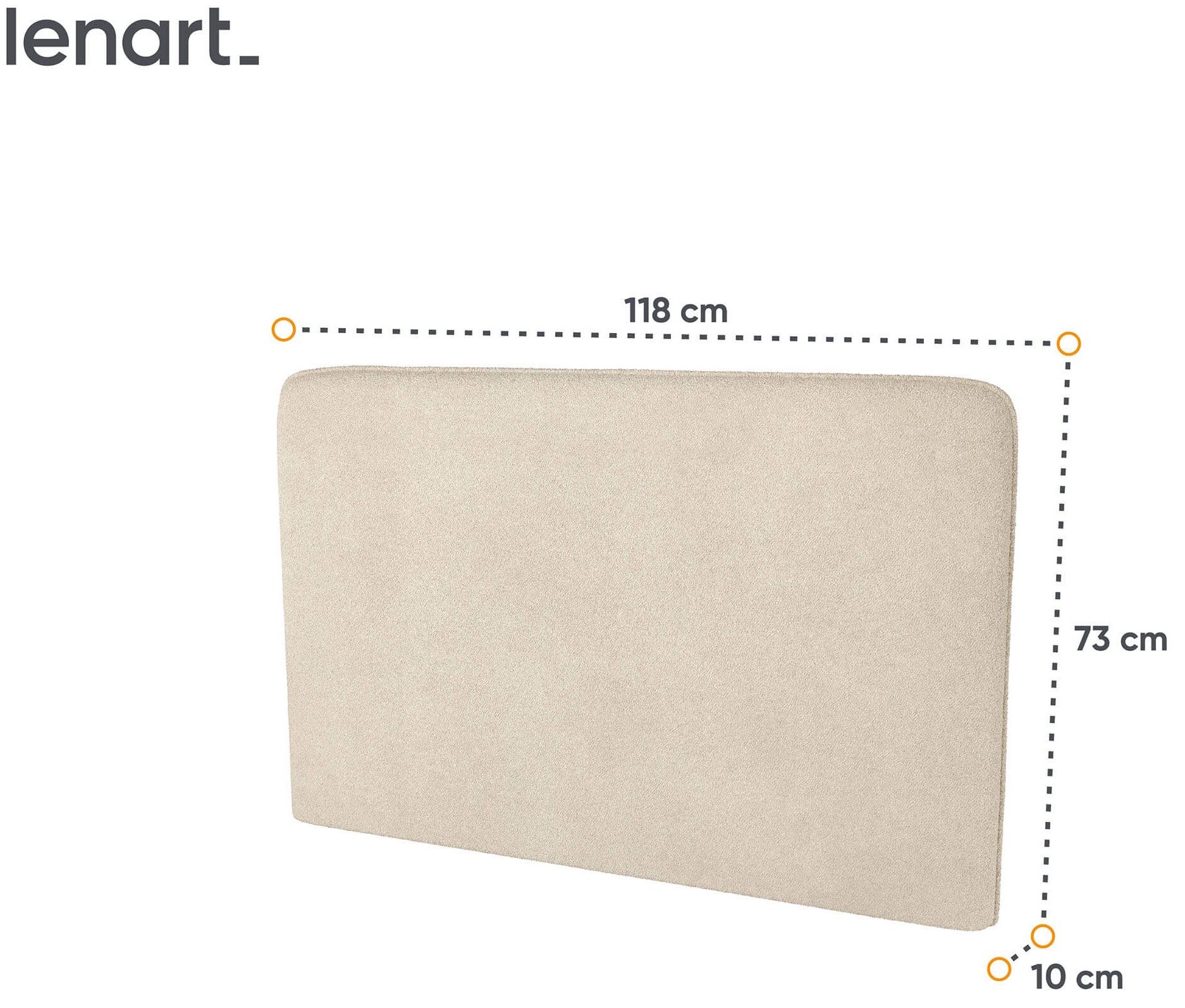 Lenart BED CONCEPT BC-32 to tapicerowany zagłówek przeznaczony do półkotapczanu BC-02 pod materac o szerokości 120 cm. To praktyczne uzupełnienie łóżka, które zwiększa wygodę codziennego użytkowania i nadaje mu przytulny charakter. Marka Lenart zaprojektowała model BC-32 tak, aby łączył funkcjonalność z eleganckim wyglądem, pasującym do nowoczesnych aranżacji wnętrz. Zagłówek został wykonany w tkaninie boucle PIU 03 w beżowym kolorze. Materiał o składzie 100% PL i wysokiej gramaturze 780 g/m² wyróżnia się trwałością, mięsistą strukturą i przyjemnym w dotyku wykończeniem. Dzięki miękkiemu wypełnieniu zagłówek zapewnia wygodne podparcie pleców podczas czytania, pracy z laptopem czy oglądania telewizji. To element, który podnosi komfort snu i jednocześnie podkreśla nowoczesny styl kolekcji BED CONCEPT.