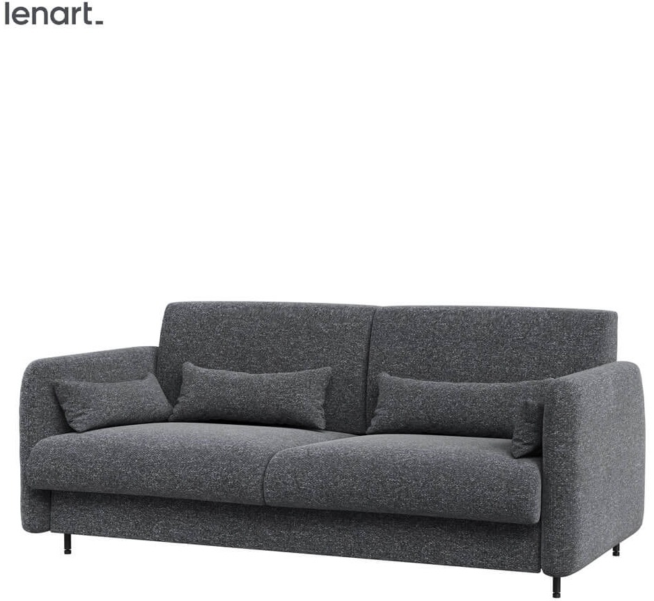 Lenart BED CONCEPT BC-35 Sofa 180 do BC-13 to praktyczne i eleganckie łóżko chowane w szafie, które pozwala maksymalnie wykorzystać przestrzeń w domu. Marka Lenart oferuje nowoczesne rozwiązanie, dzięki któremu nawet mały salon w kilka sekund zamienia się w pełnowymiarową sypialnię. Półkotapczan z sofą to idealna opcja dla osób mieszkających w kawalerce czy w niewielkim mieszkaniu, gdzie każdy metr jest na wagę złota. Model BED CONCEPT BC-35 z sofą dedykowaną do półkotapczanu BC-13 w kolorze białym łączy funkcjonalność i estetykę. Grafitowa sofa, tapicerowana tkaniną LUKKA 38, doskonale kontrastuje z jasnym frontem, nadając meblowi nowoczesnego i stylowego charakteru. W dzień pełni rolę wygodnej kanapy, a wieczorem w prosty sposób zamienia się w komfortowe łóżko, zapewniające spokojny sen. To mebel, który nie tylko oszczędza przestrzeń, ale także wzbogaca wnętrze swoją uniwersalną formą i eleganckim wyglądem.