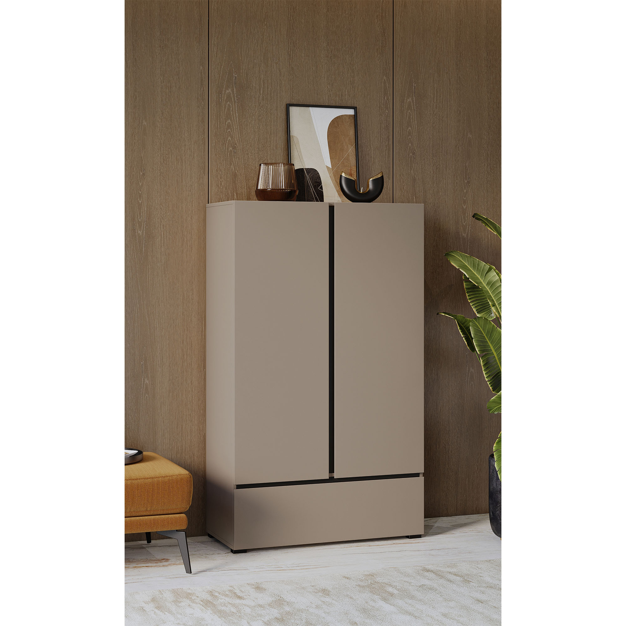 • Dwie zamykane szafki oraz praktyczna szuflada zapewniające funkcjonalne przechowywanie.