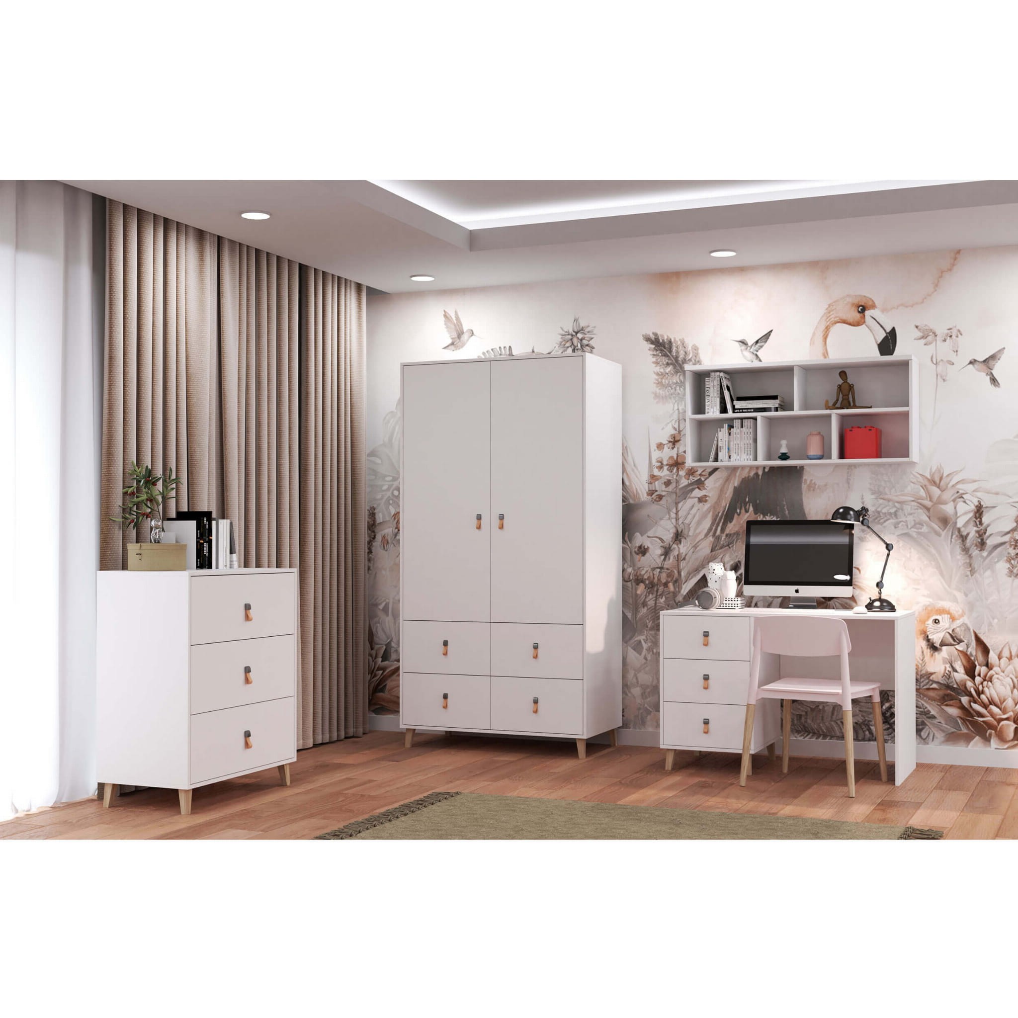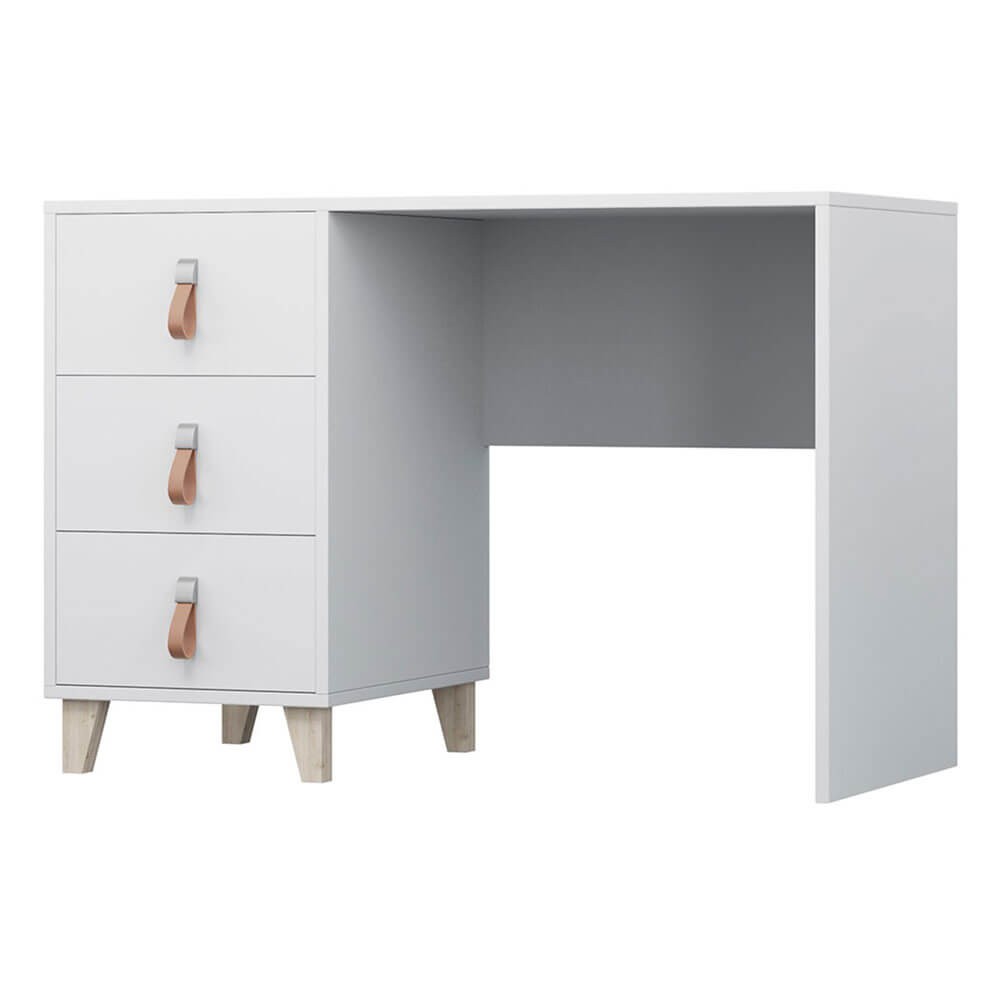 Biurko Figo 08 to harmonijne połączenie nowoczesnego skandynawskiego stylu z funkcjonalnością. Jest to praktyczny mebel wyposażony w trzy szuflady, który doskonale organizuje przestrzeń. Jego jasne wykończenie wraz ze skórzanymi uchwytami dodaje uroku i nadaje wnętrzu unikalny charakter.