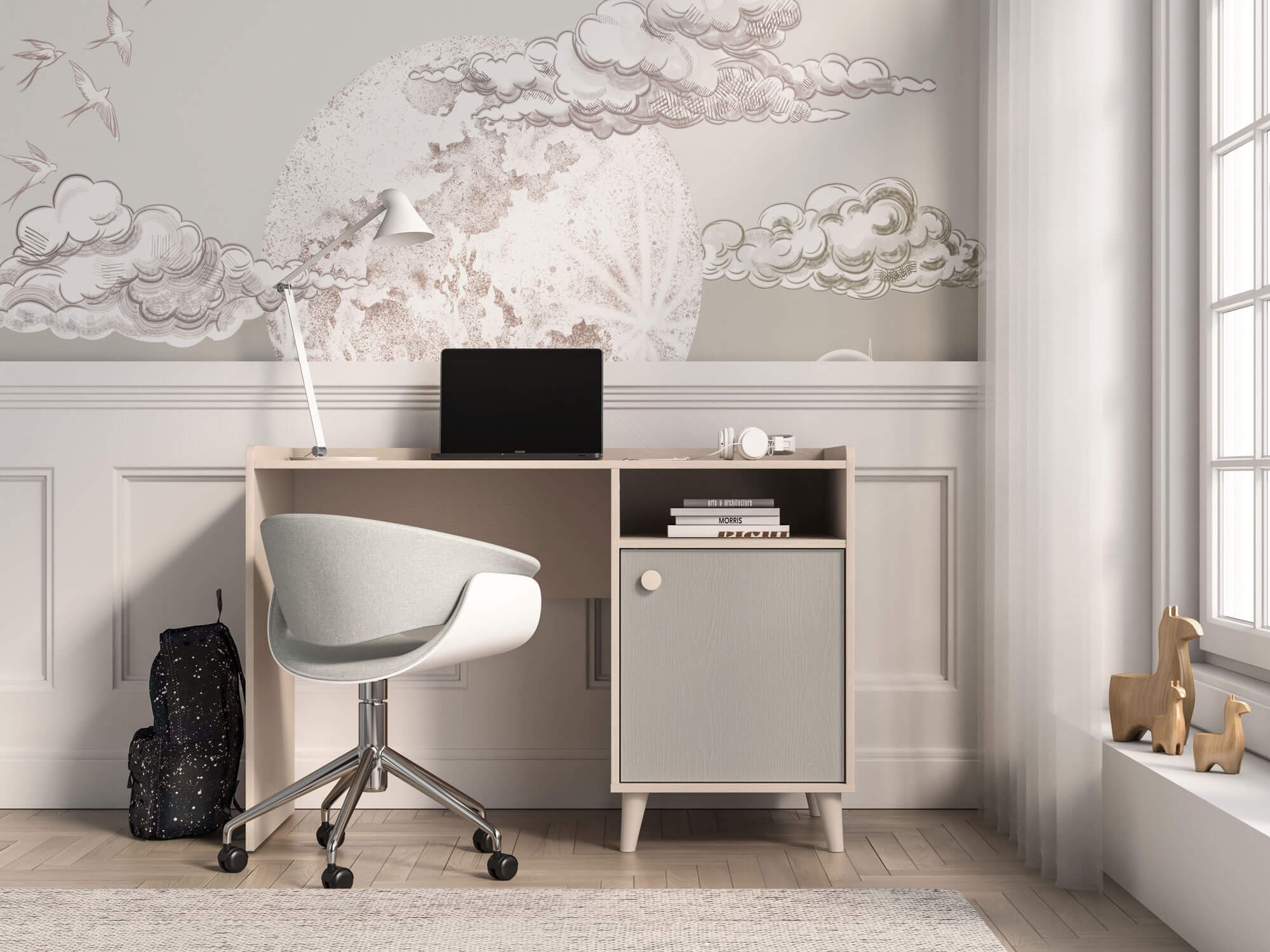 Biurko młodzieżowe MEVEL 07 | 120cm | Szary, piaskowy beż