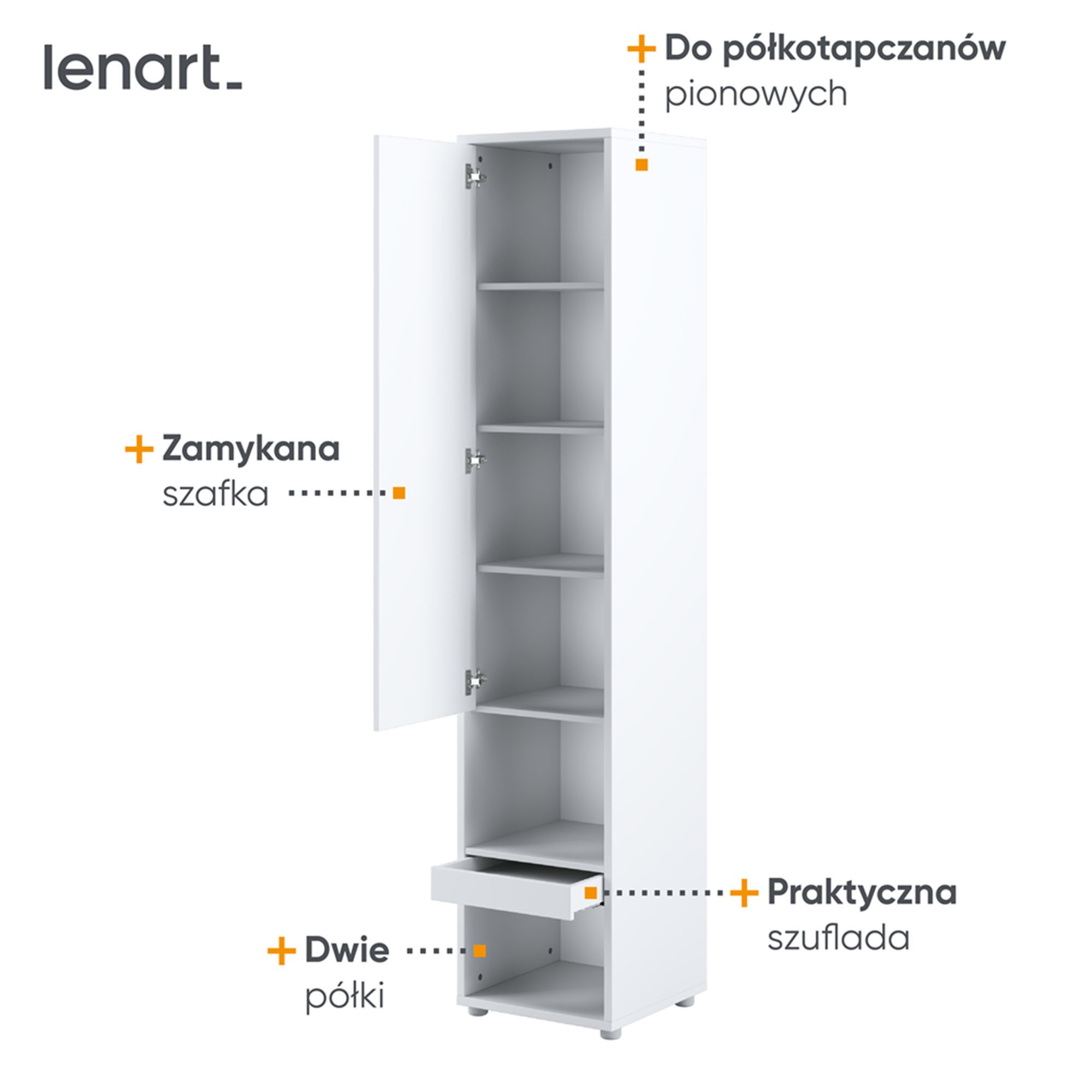 Szafka BED CONCEPT CP-07 1D to praktyczny mebel, który pomaga uporządkować przestrzeń i wygodnie przechowywać codzienne drobiazgi. Dzięki kompaktowej formie świetnie sprawdza się w salonie, sypialni, przedpokoju oraz w pokoju młodzieżowym, wszędzie tam, gdzie liczy się funkcjonalność i estetyczny wygląd wnętrza. Zamykana bryła pozwala szybko ukryć rzeczy, które chcesz mieć pod ręką, a jednocześnie zachować w pomieszczeniu wrażenie ładu. Model BED CONCEPT CP-07 w wersji szafka 1D jest dobrym wyborem, gdy potrzebujesz dodatkowego miejsca na przechowywanie, ale nie chcesz wstawiać dużych mebli. Jedne drzwi zapewniają łatwy dostęp do zawartości i pomagają w organizacji akcesoriów domowych, dokumentów, tekstyliów czy innych przedmiotów zależnie od przeznaczenia pomieszczenia. Taka szafka dobrze sprawdza się także jako element uzupełniający większą zabudowę, tworząc spójny układ i poprawiając ergonomię wnętrza.
