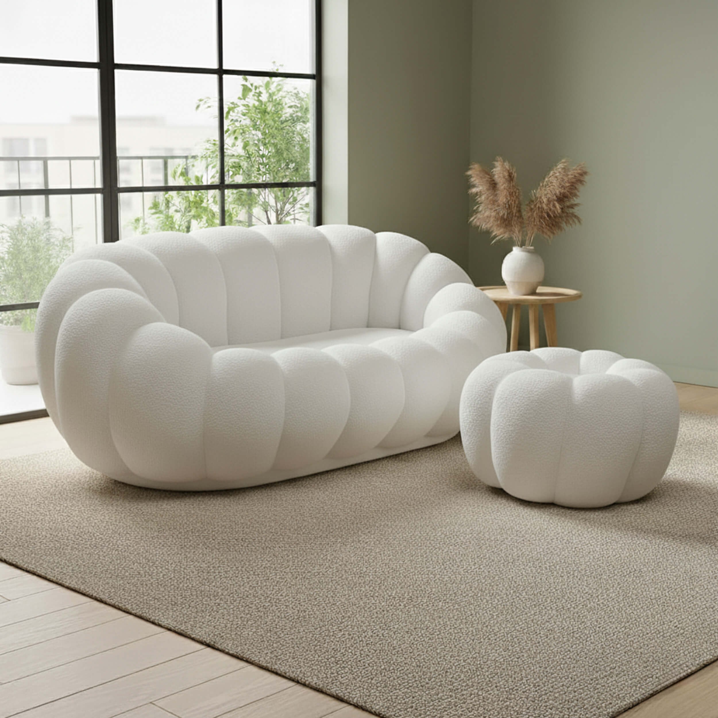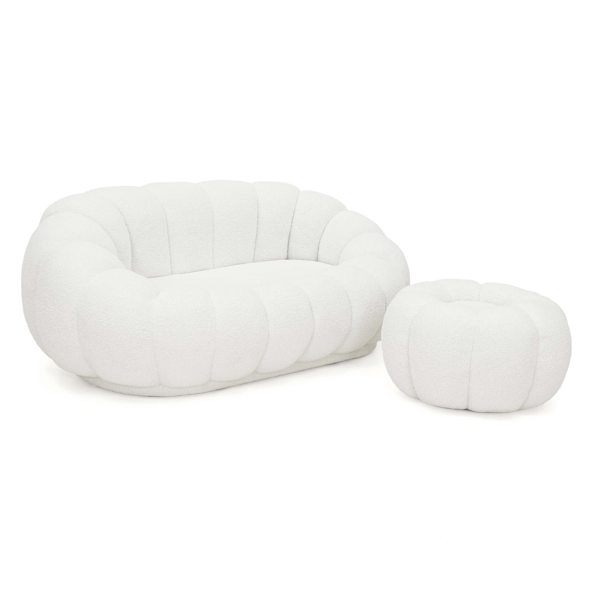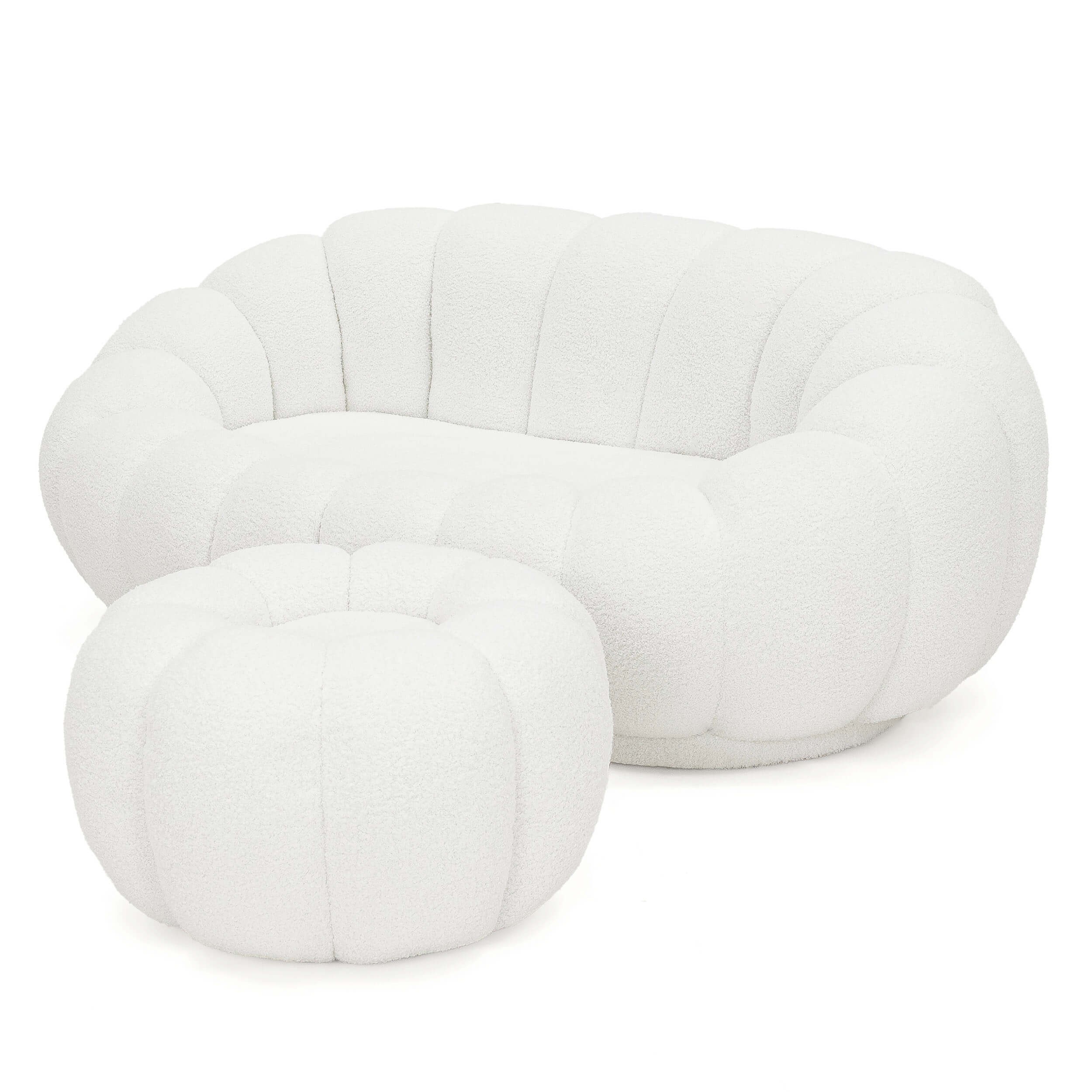 Fotel 2 osobowy z podnóżkiem CX2032 Pumpkin | Bouclé | Biały #1