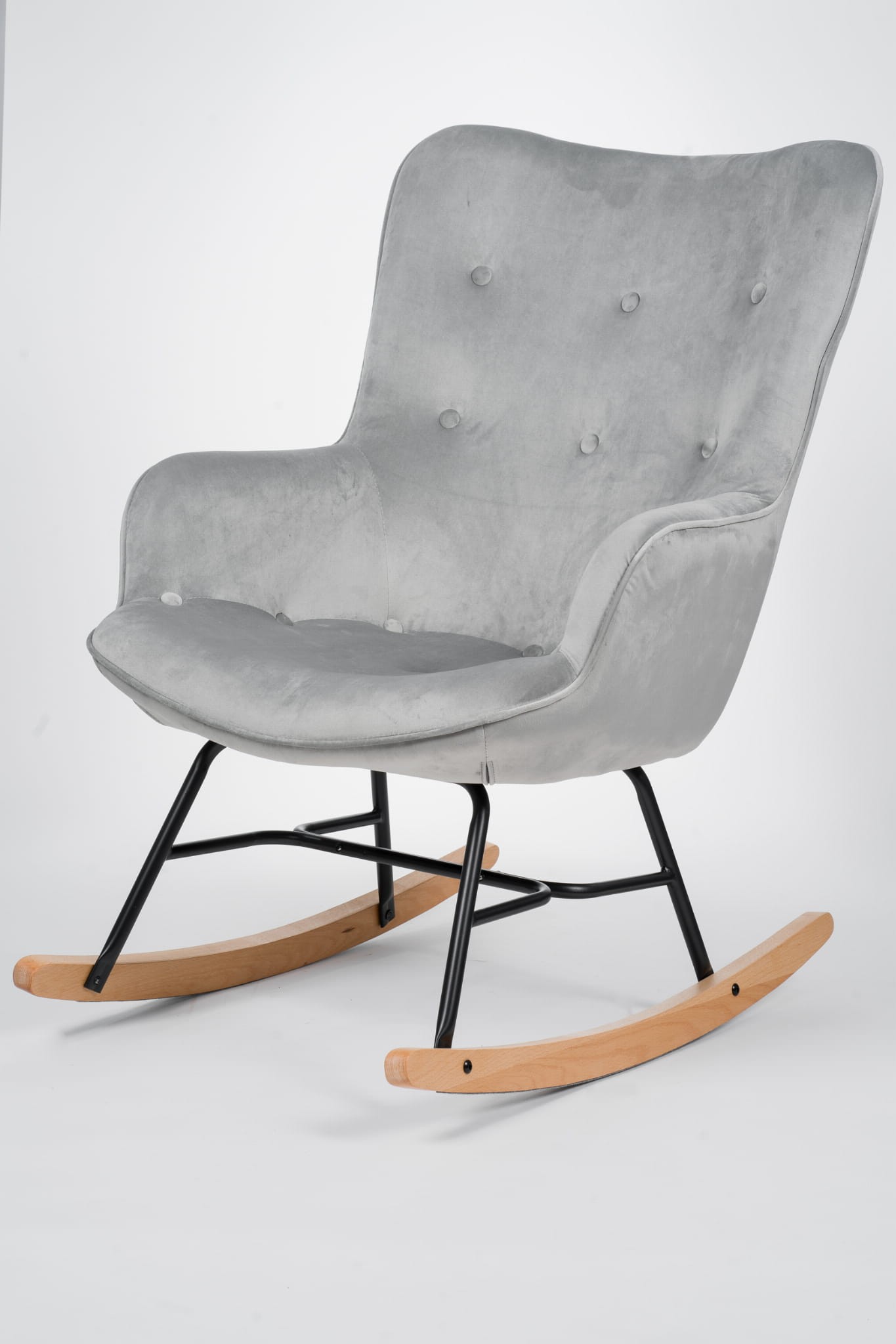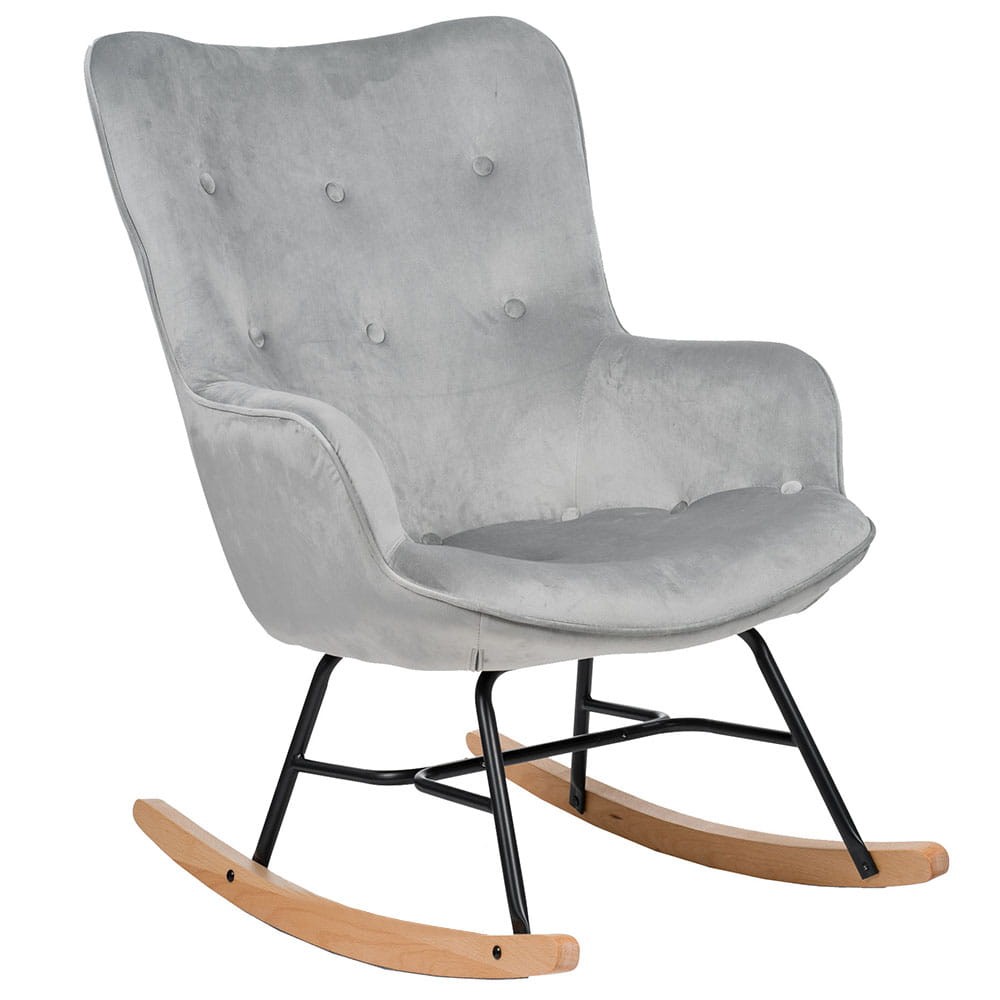 Niezwykle komfortowy fotel bujany szary to idealne rozwiązanie do kącika sypialni, salonu czy też domowego gabinetu lub biblioteczki. Mebel swoją minimalistyczną formą nada Twojemu wnętrzu domowego charakteru, a dodatkowo pozwoli w pełni zrelaksować całe ciało. Przytulna, aksamitna tapicerka w kolorze szarym to modny welur. Szarość to kolor nieśmiertelny, bardzo uniwersalny! Materiał w tym kolorze dodatkowo sprawia, że fotel bujany szary prezentuje się bardzo pięknie, jest miły w dotyku, a to sama przyjemność podczas relaksu! Muskający meszek ukoi Twoje zszargane nerwy, a możliwość pobujania się w objęciach ulubionego fotela dziękom solidnym, drewnianym płozom sprawi, że poczujesz się bardzo przyjemnie. Fotel bujany szary, welurowy to mebel idealny do salonu. Drewniane płozy to wspaniały akcent w stylu skandynawskim. Posiadają zabezpieczenia przed uszkodzeniem podłogi.