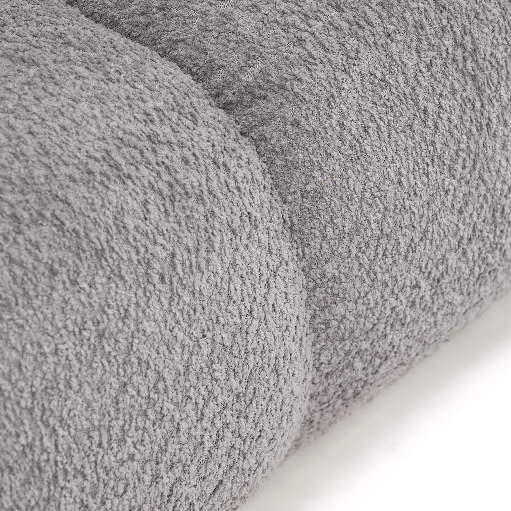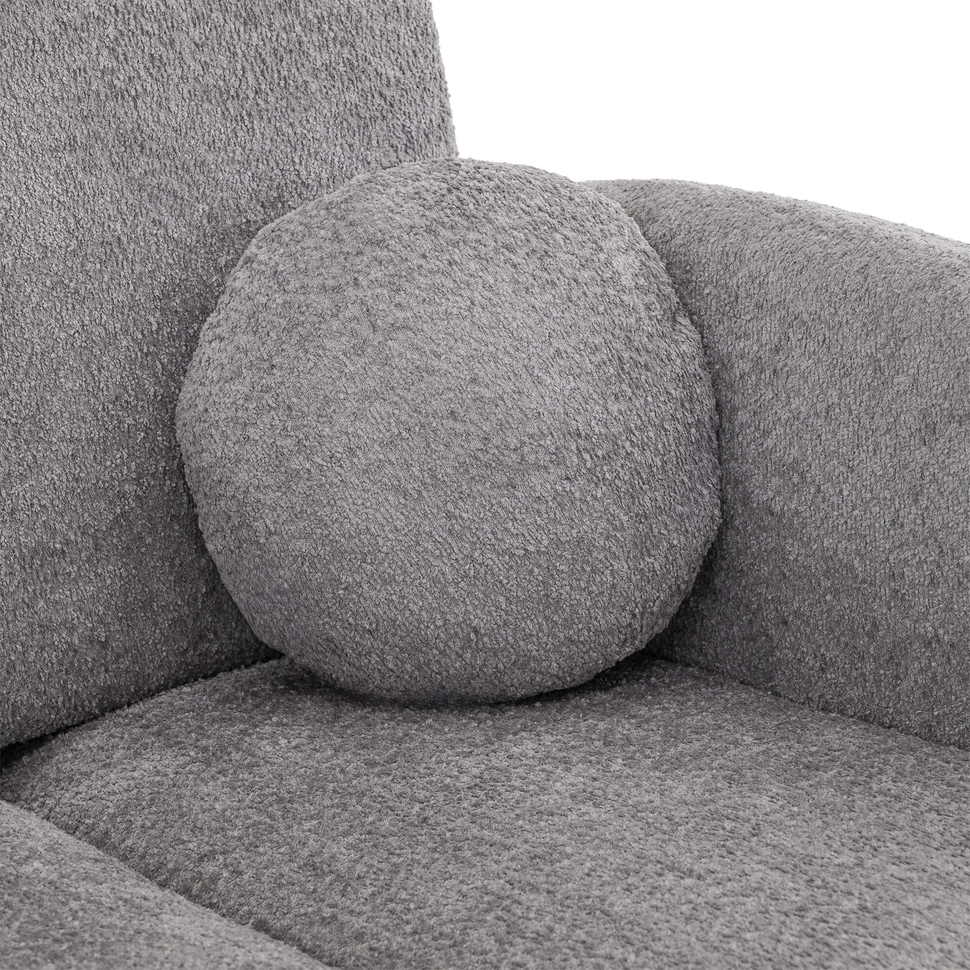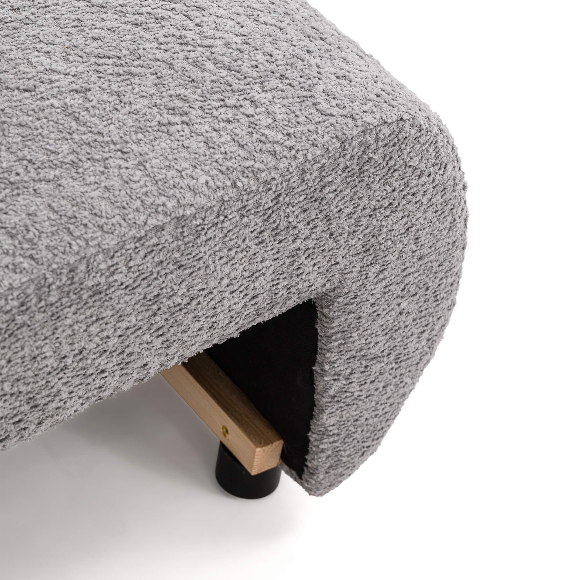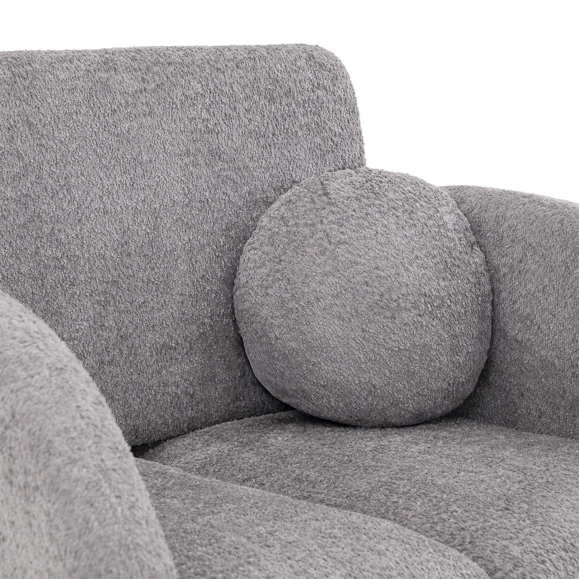 Kluczowym elementem modelu PUFI jest zastosowanie tkaniny typu bouclé, zwanej potocznie „barankiem”. Jej miękka, pętelkowa struktura sprawia, że fotel jest niezwykle przyjemny w dotyku i wprowadza do wnętrza ciepłą, domową atmosferę. Organiczny kształt mebla, pozbawiony ostrych krawędzi, oraz dołączona do zestawu okrągła poduszka, wpisują się w najnowsze trendy wnętrzarskie oparte na obłościach i naturalnych formach.