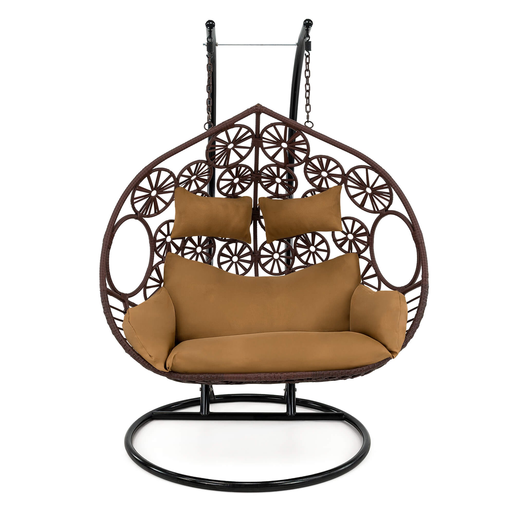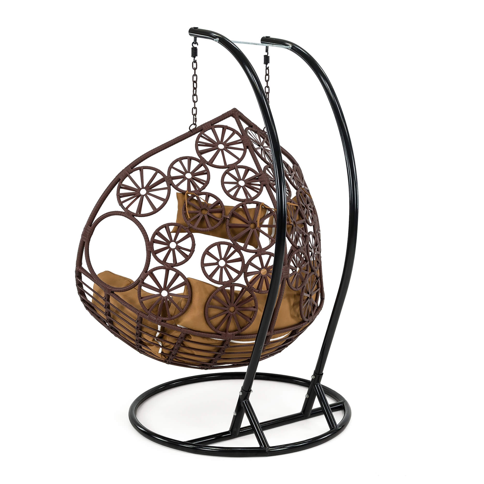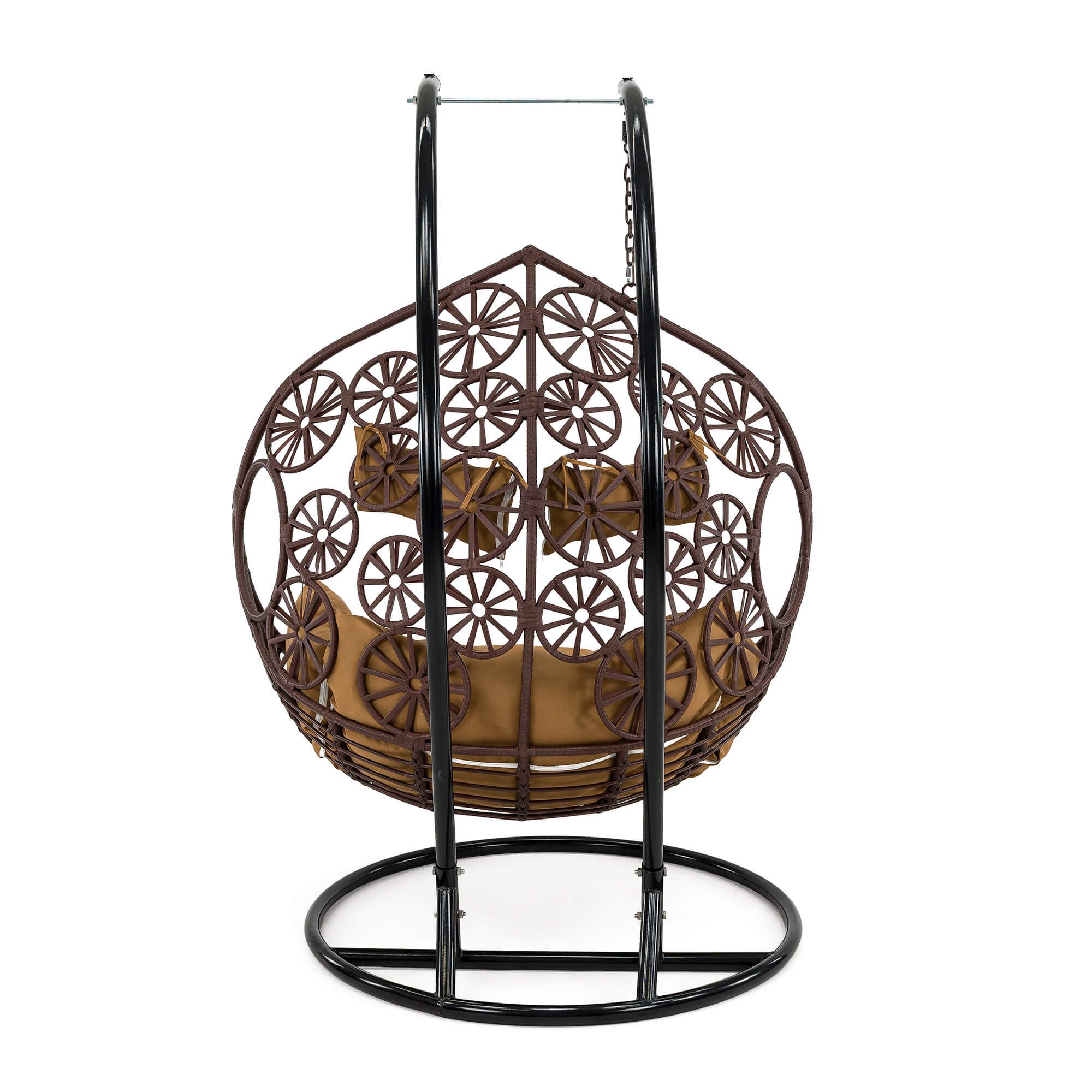 Fotel wiszący ogrodowy dwuosobowy SC-N3 | Brąz | Poduszki brązowe
