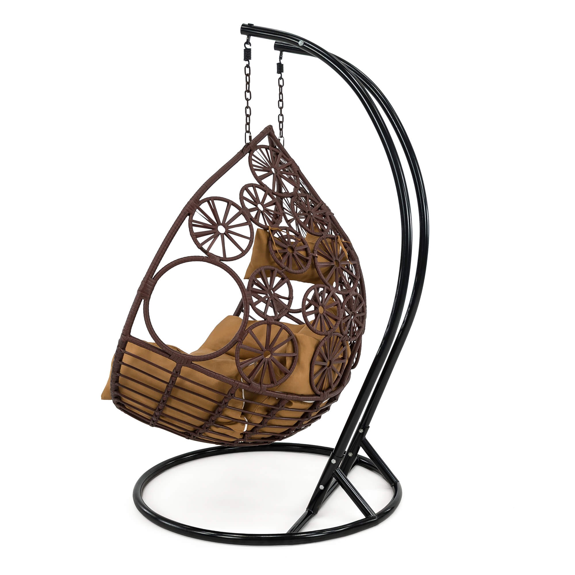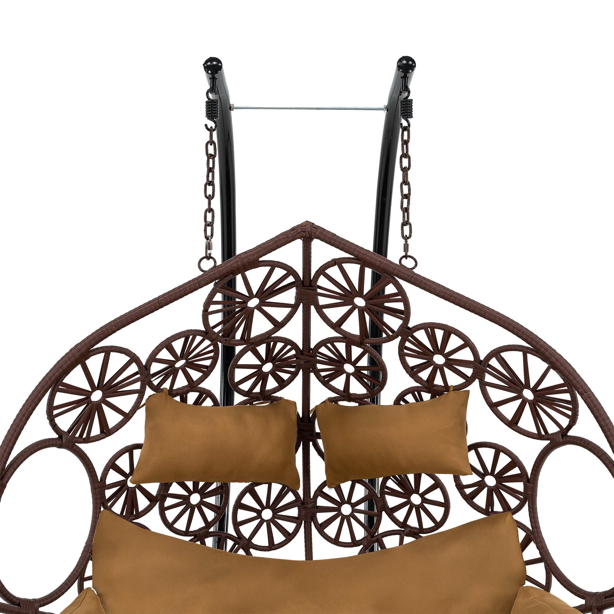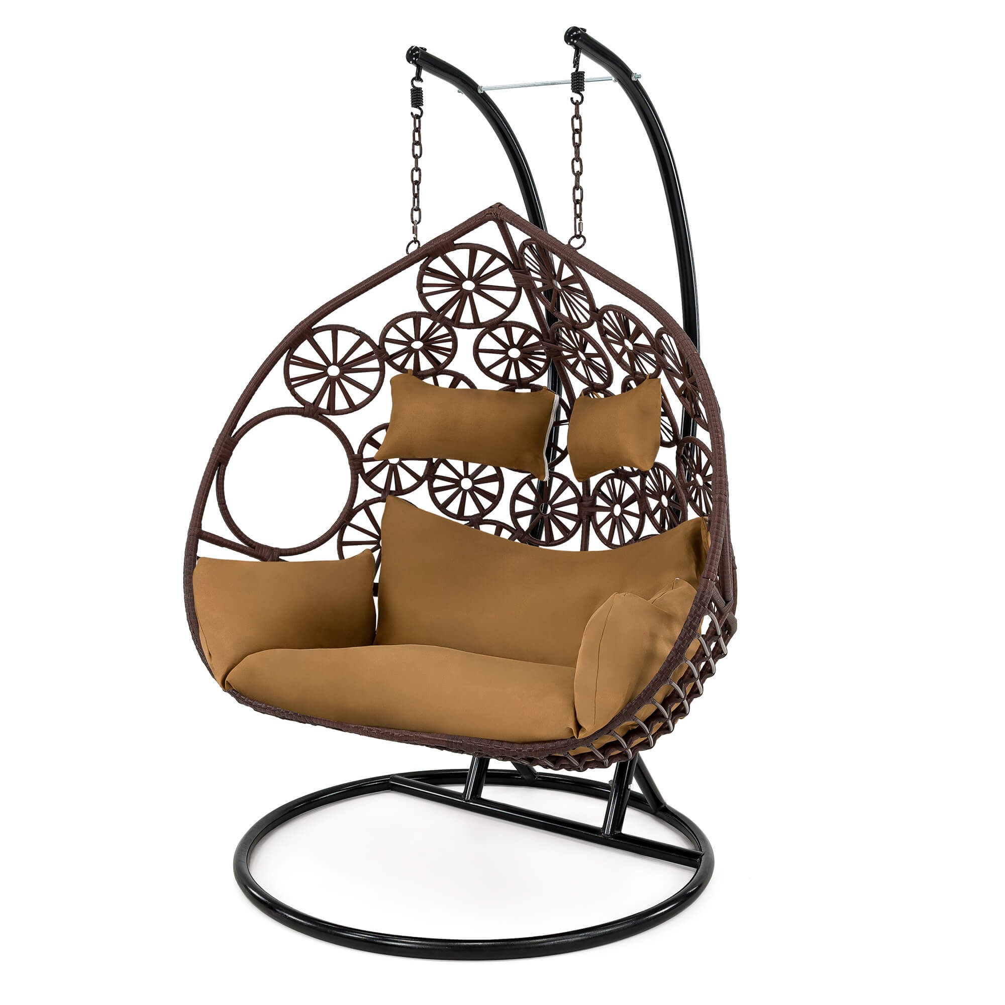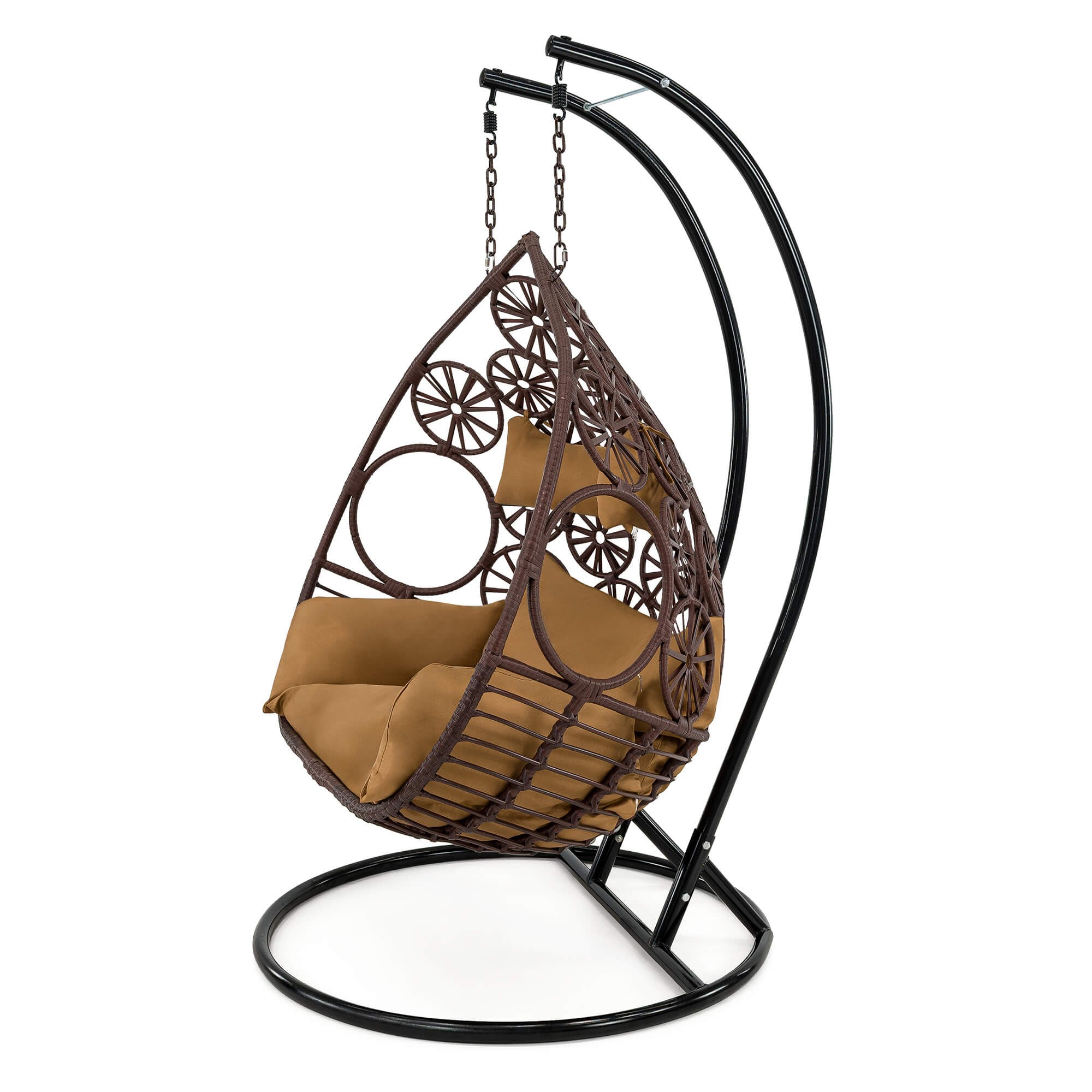 Fotel wiszący ogrodowy dwuosobowy SC-N3 | Brąz | Poduszki brązowe