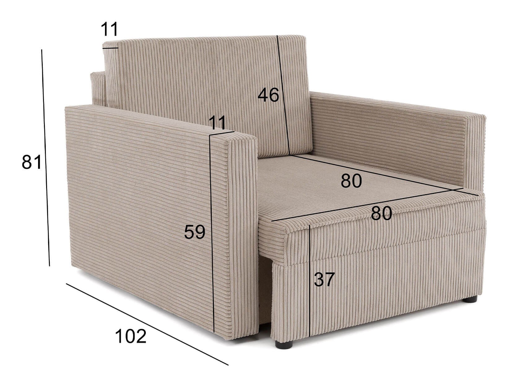Fotel z funkcją spania - sztruksowy beżowy/cappuccino