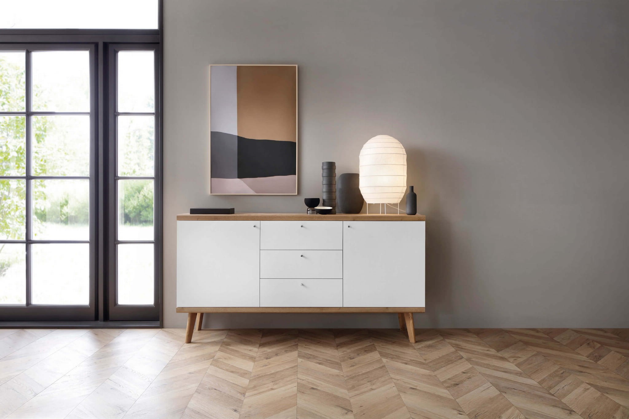Ponadto garderoba prezentuje się bardzo lekko i subtelnie. Delikatny, naturalny odcień dąb riviera w połączeniu z białym nadaje skandynawskiego charakteru. Wysokiej jakości płyty laminowane wykorzystane do produkcji są bardzo trwałe i estetyczne, a także ułatwiają utrzymanie czystości.
