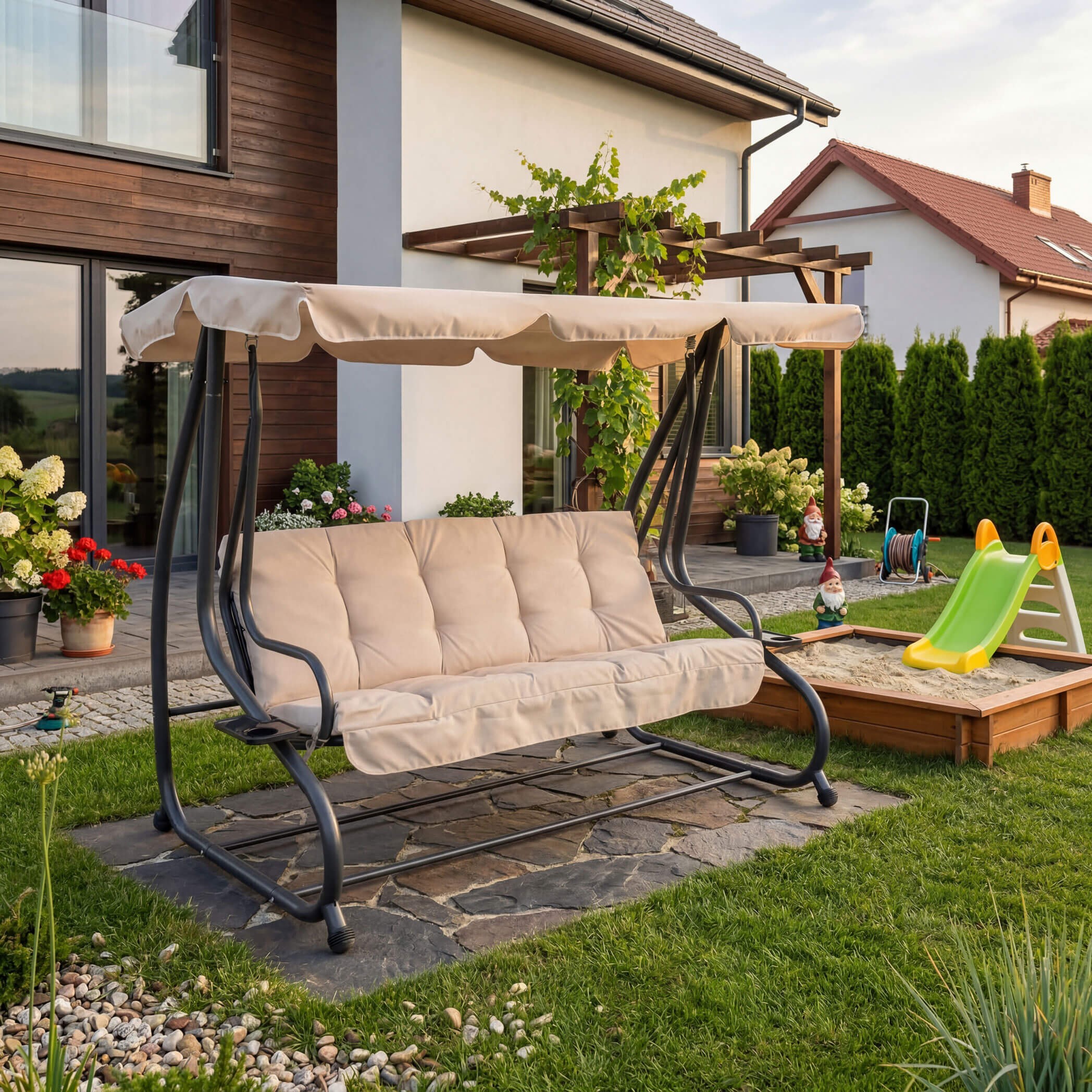 Huśtawka ogrodowa GRACJA – luksusowy relaks z funkcją spania