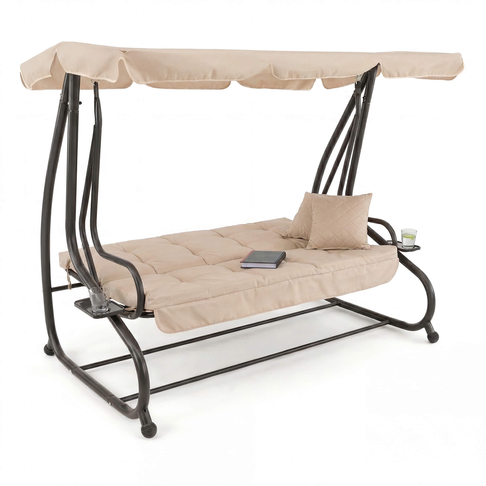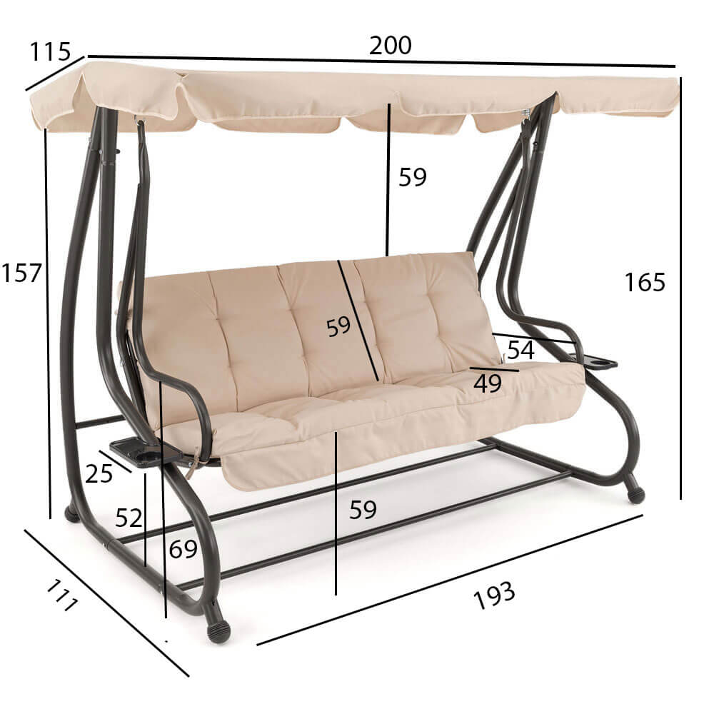 Huśtawka ogrodowa GRACJA YN8209 | Czarny | Poduszki beżowe