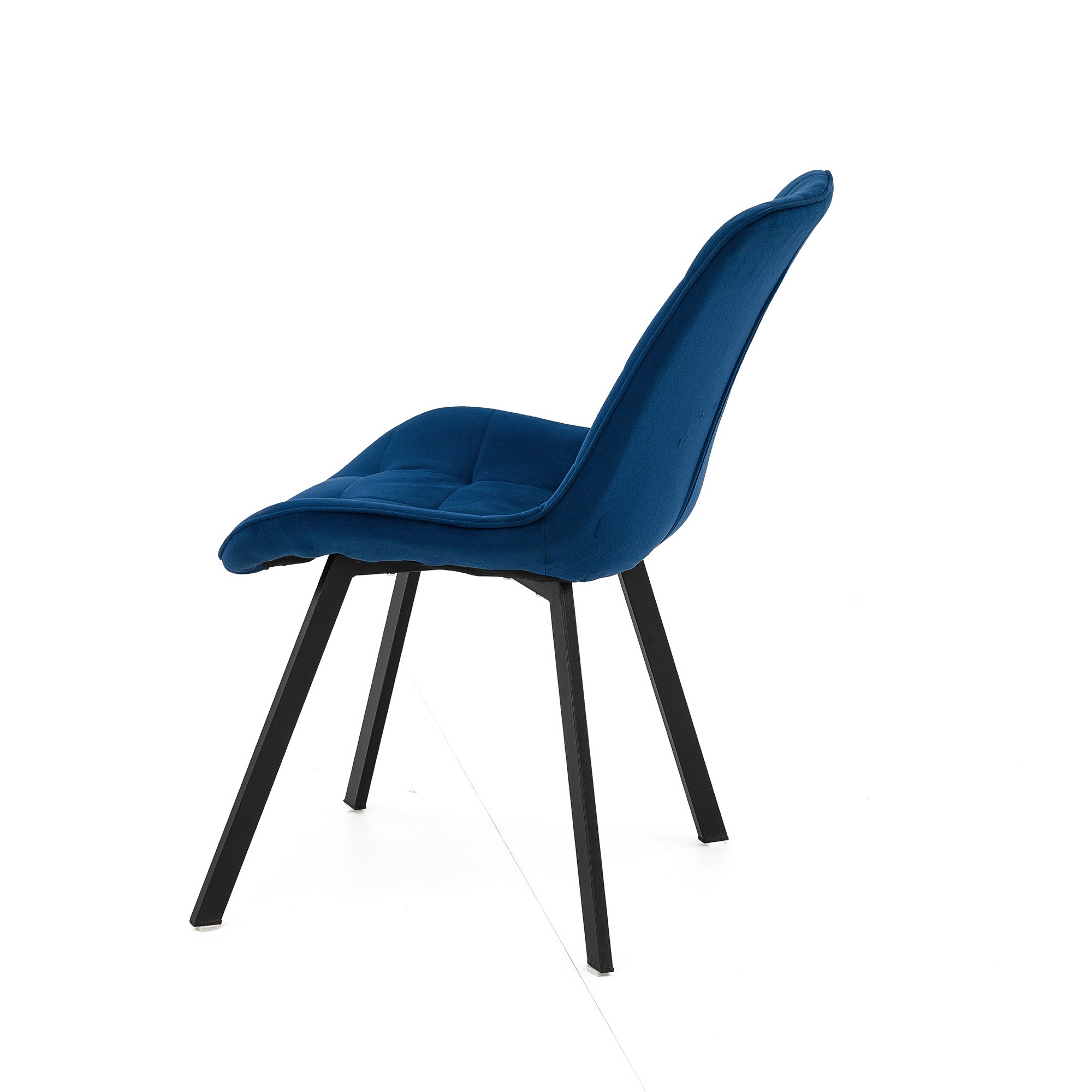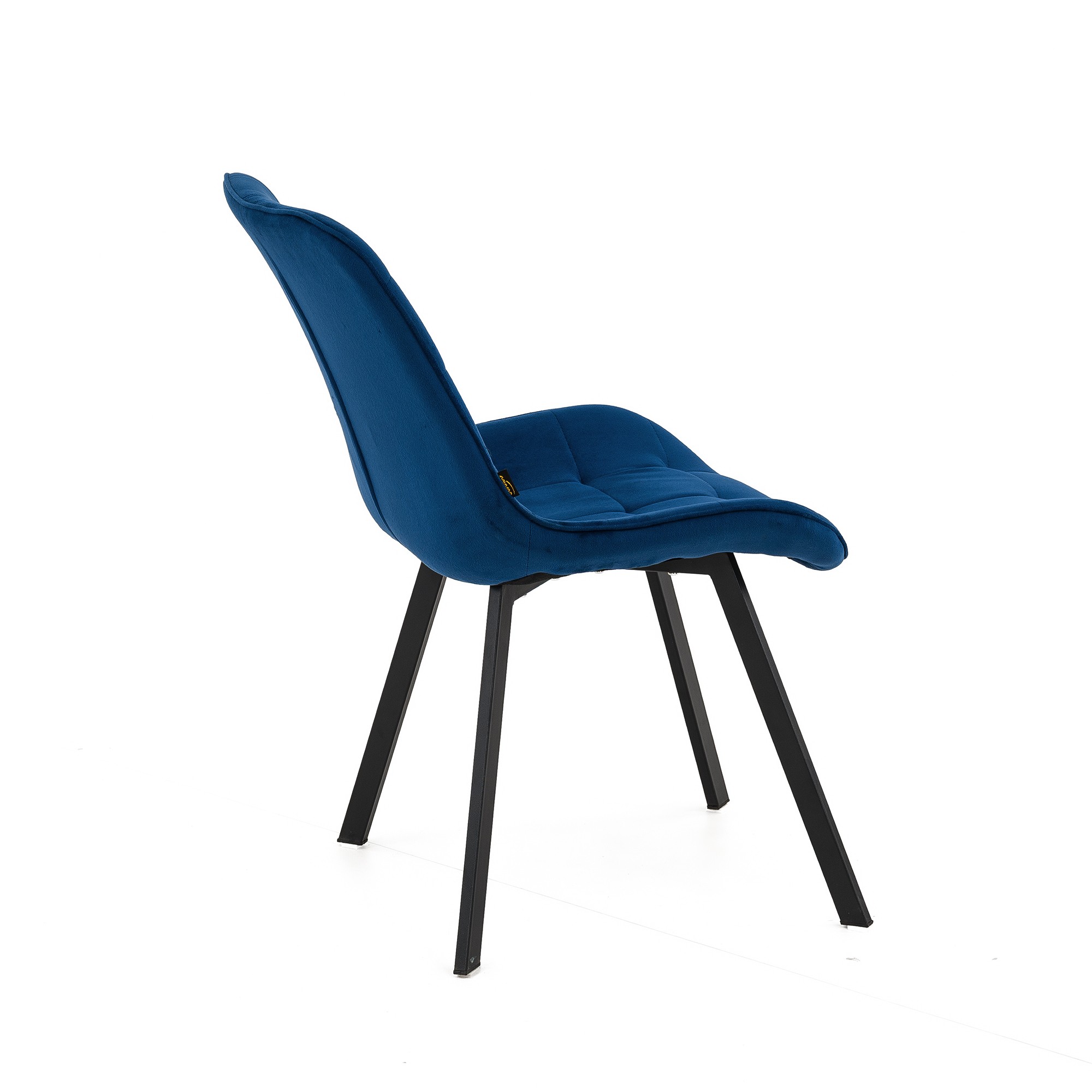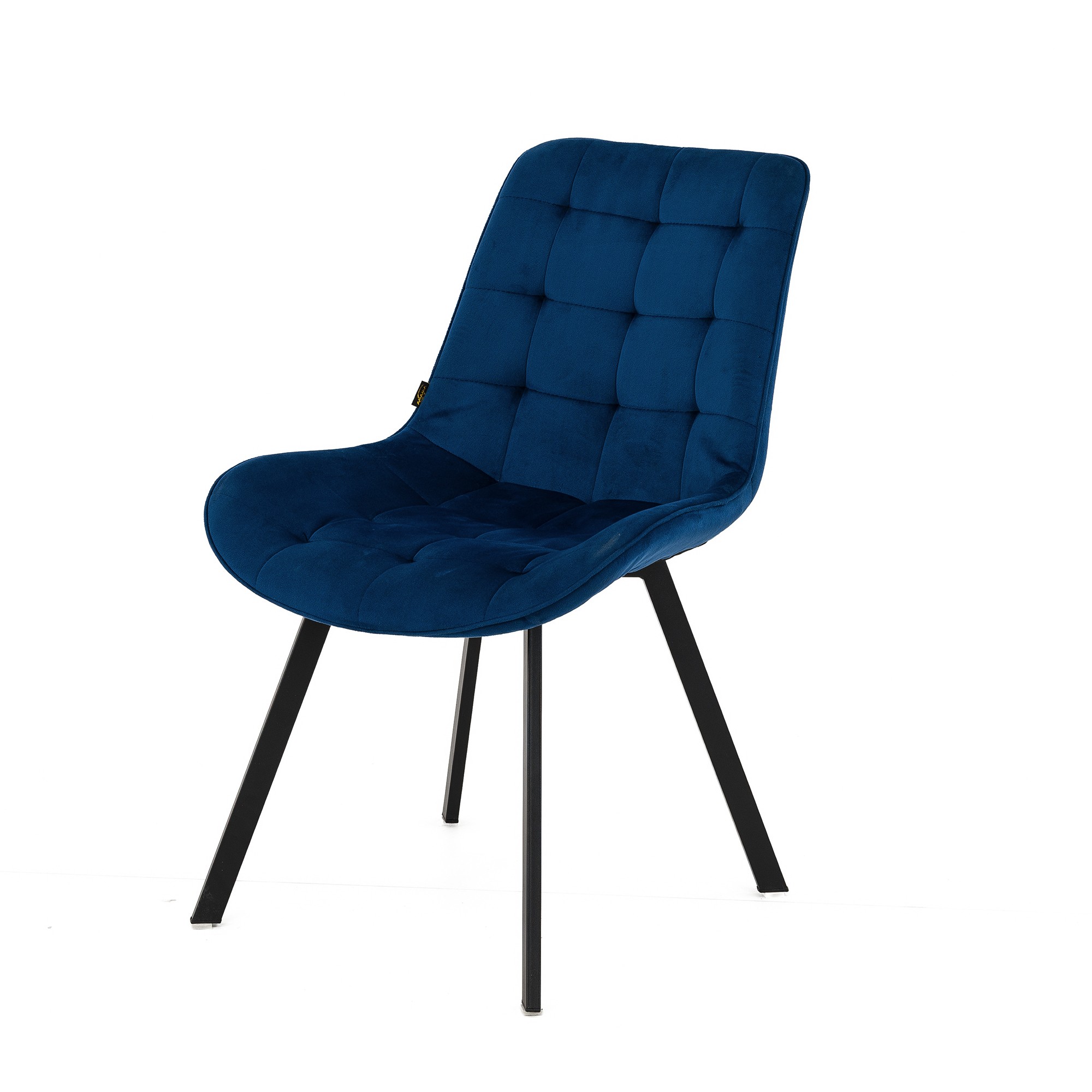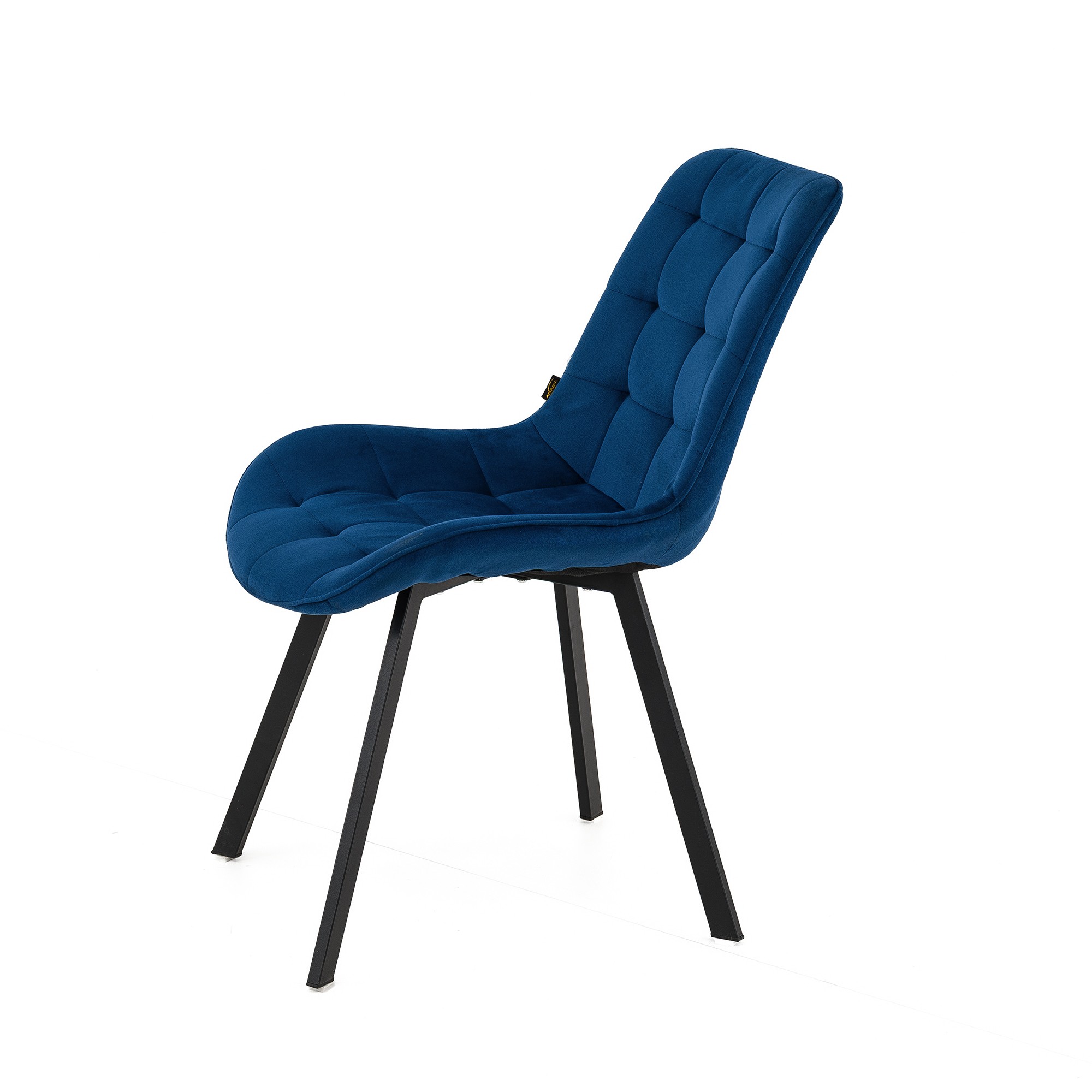- Uniwersalne połączenie niebieskiej tapicerki z czarną podstawą, idealne do wnętrz loftowych i nowoczesnych