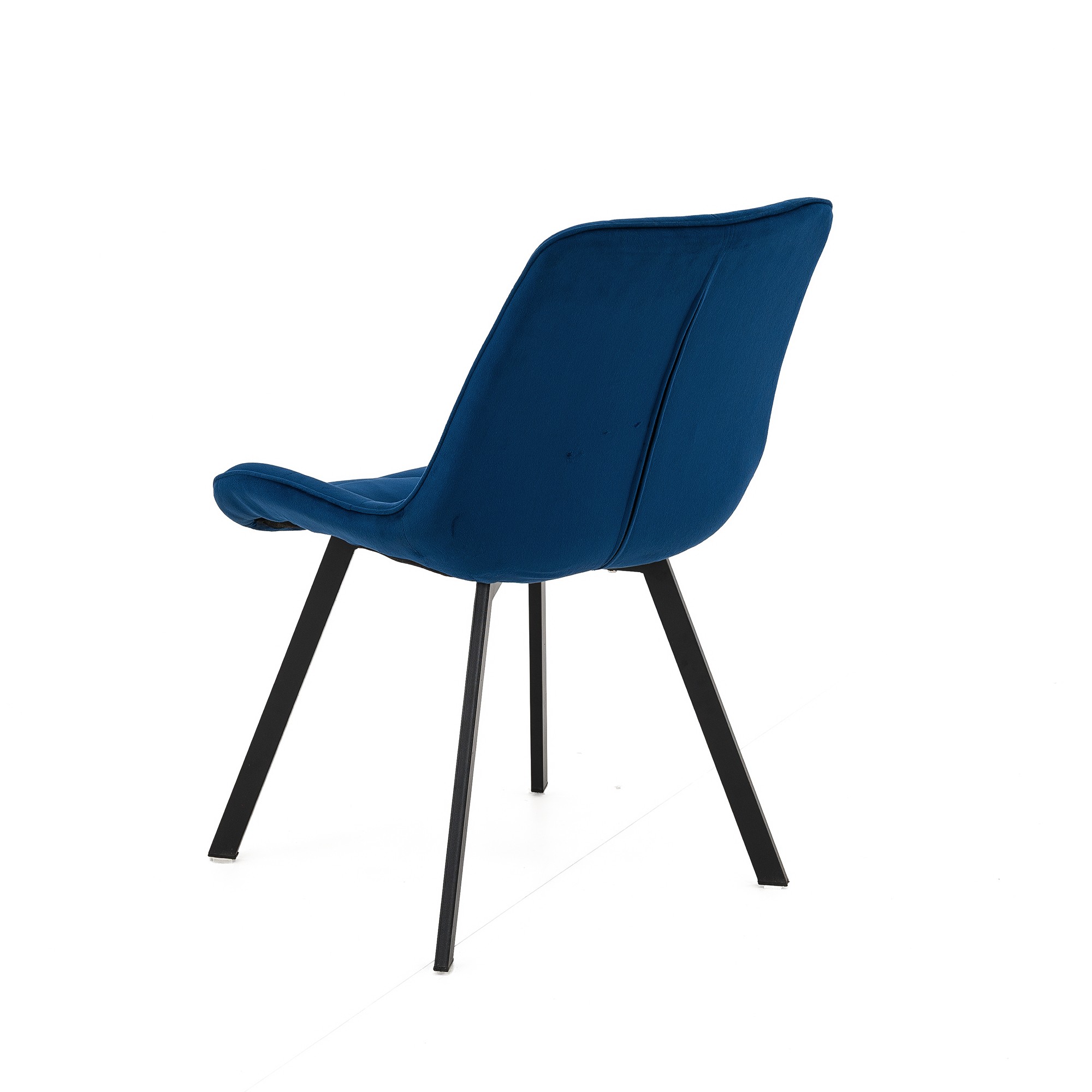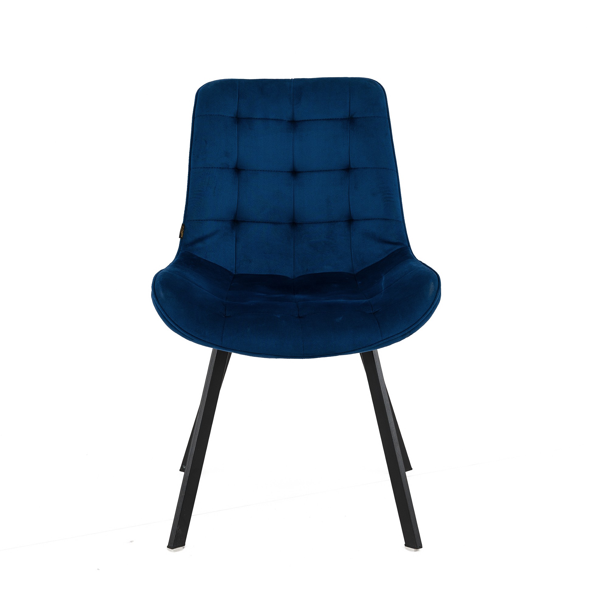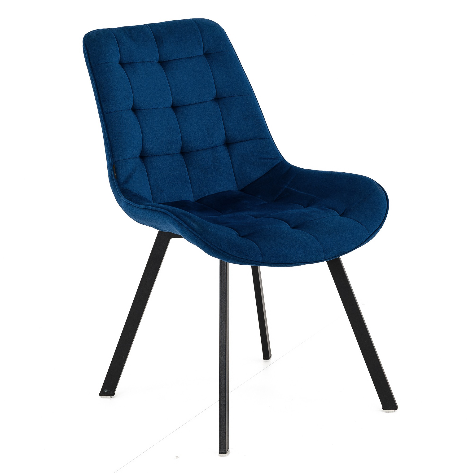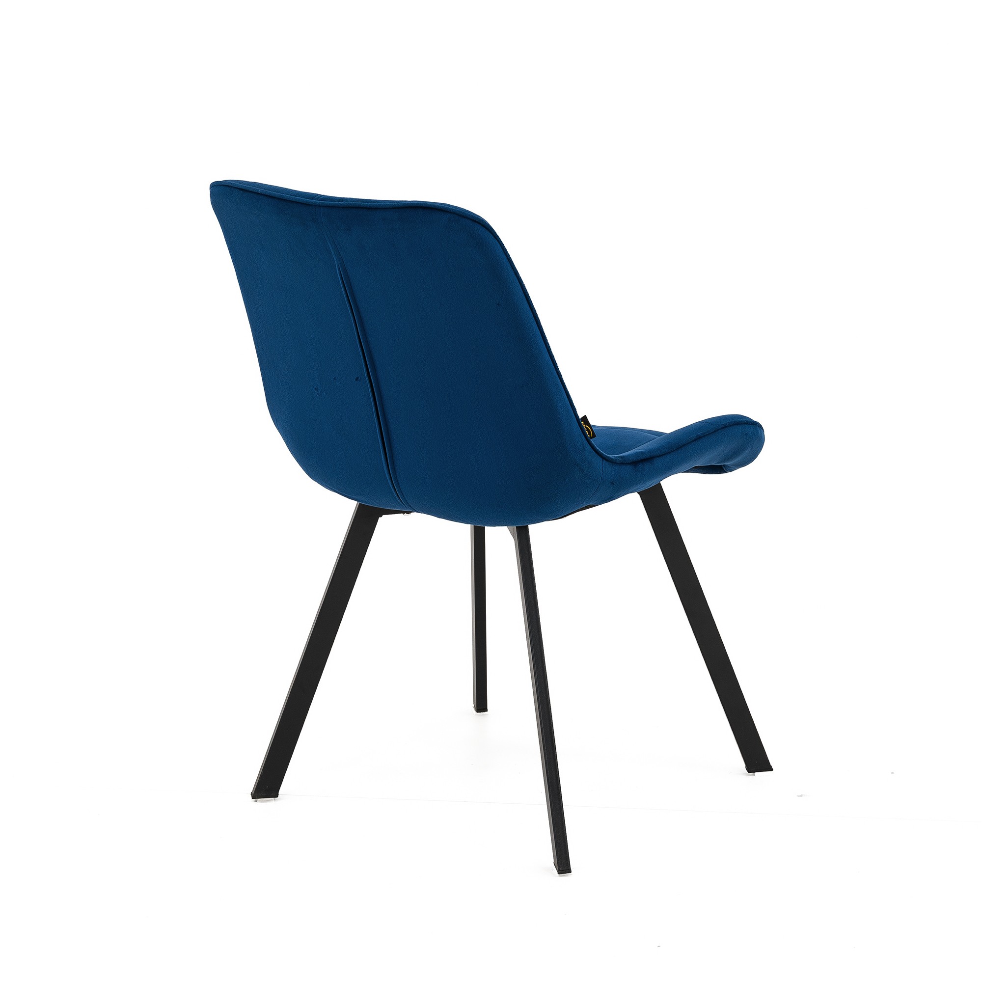 - Uniwersalne połączenie niebieskiej tapicerki z czarną podstawą, idealne do wnętrz loftowych i nowoczesnych