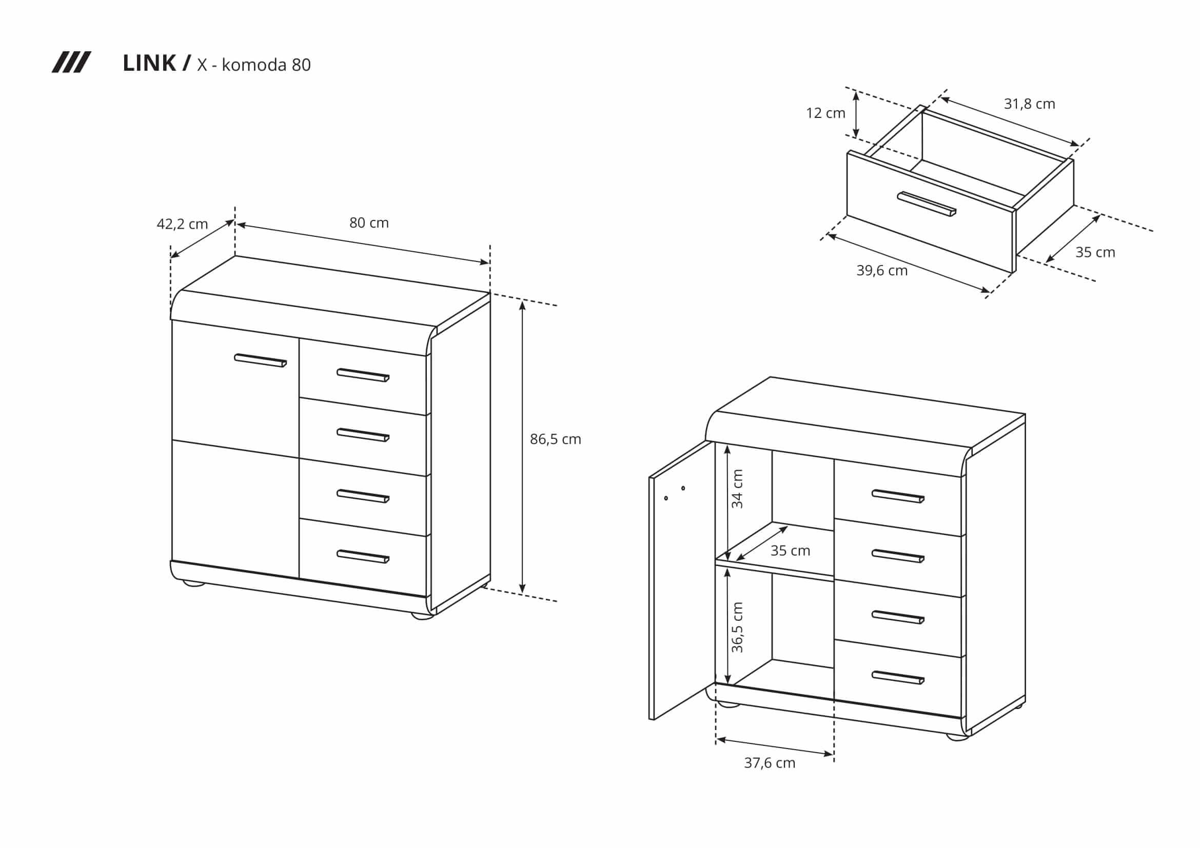 KOMODA 80CM LINK (X) / DĄB SONOMA