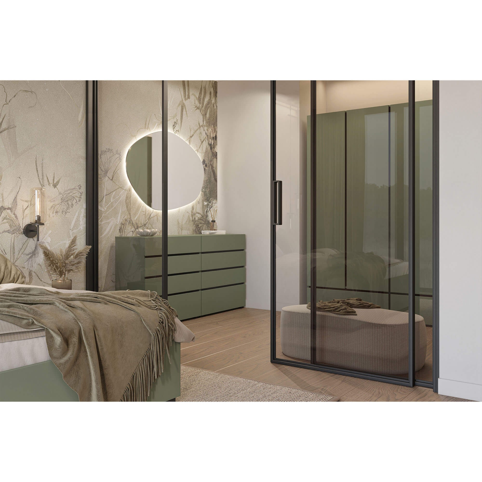 • Fronty w ponadczasowym zielonym wykończeniu podkreślające nowoczesny charakter mebla.