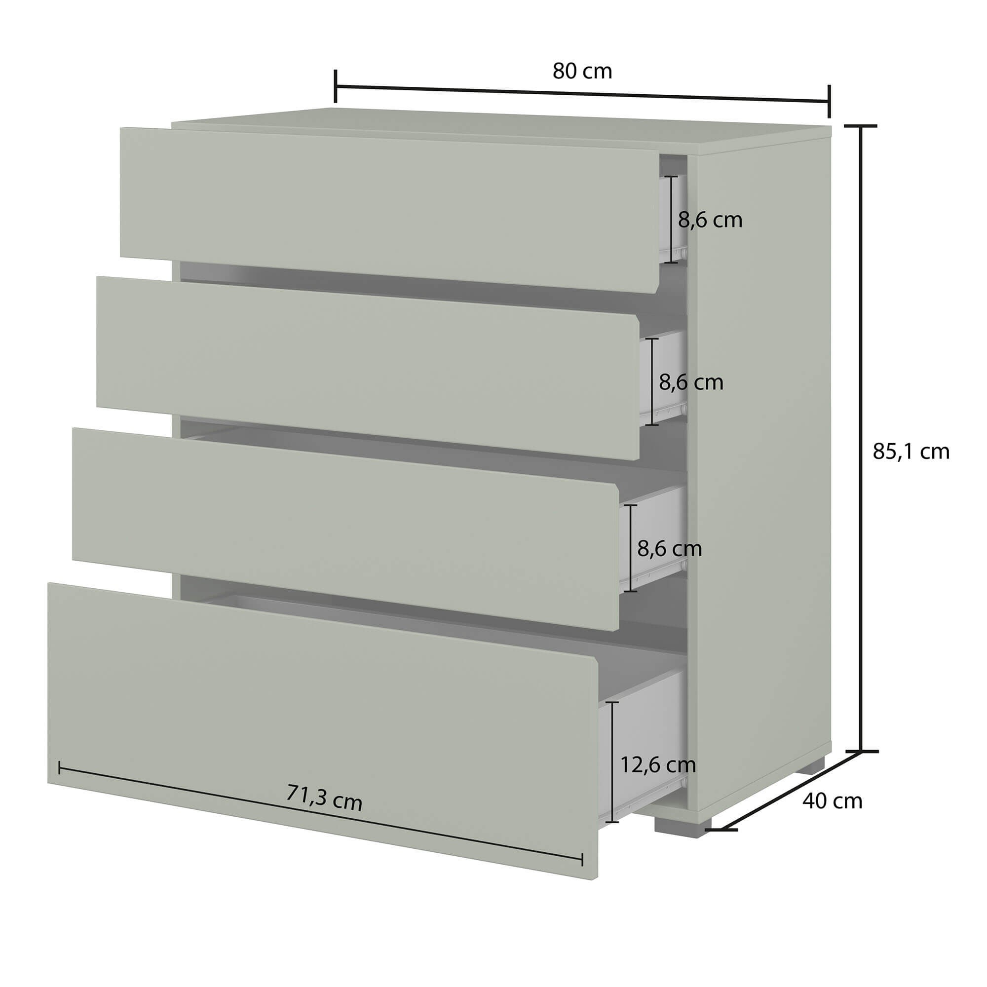 • Cztery pojemne szuflady zapewniające funkcjonalność i oszczędność miejsca.