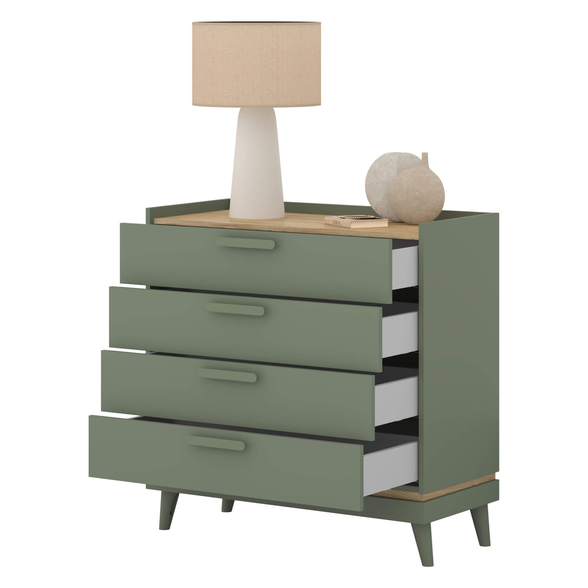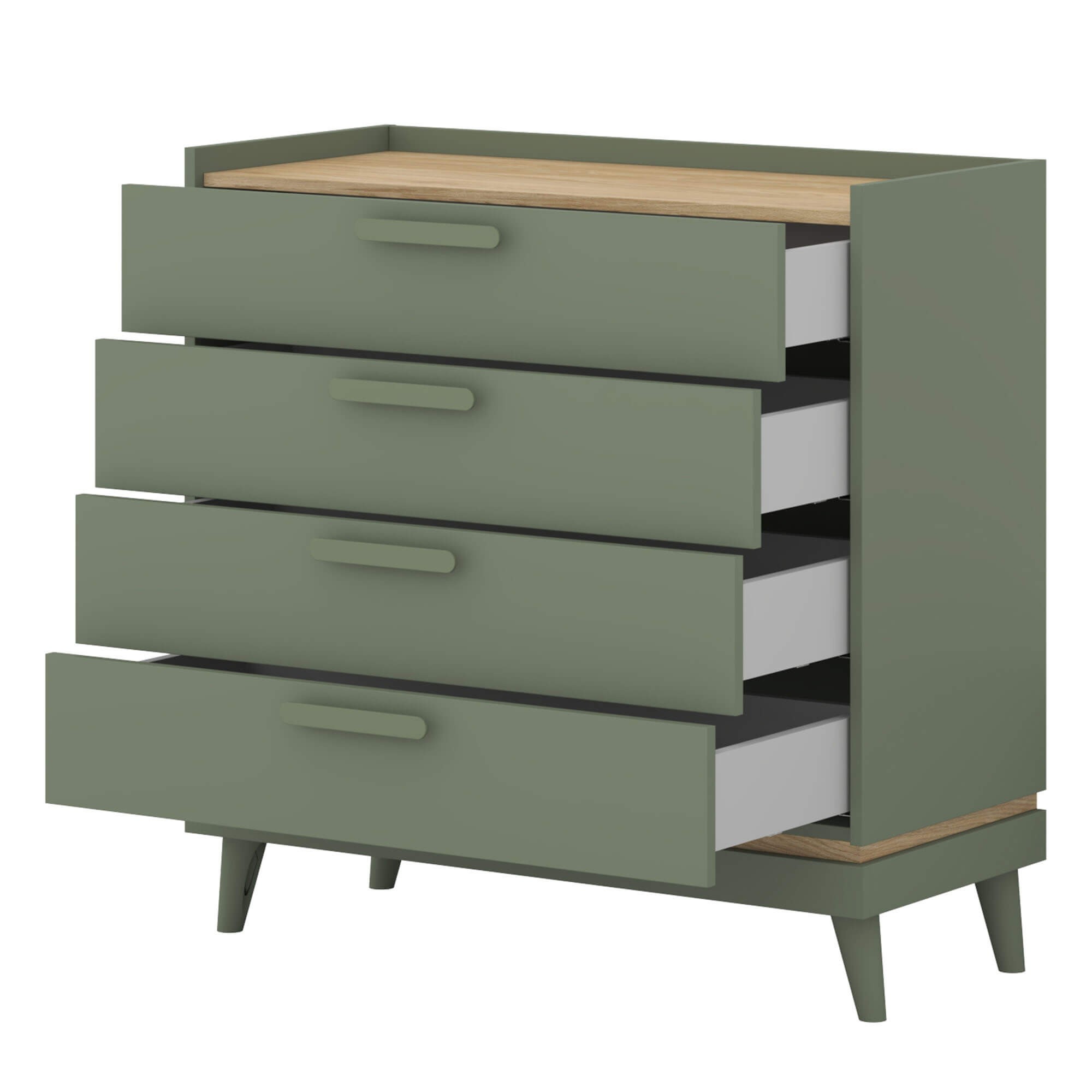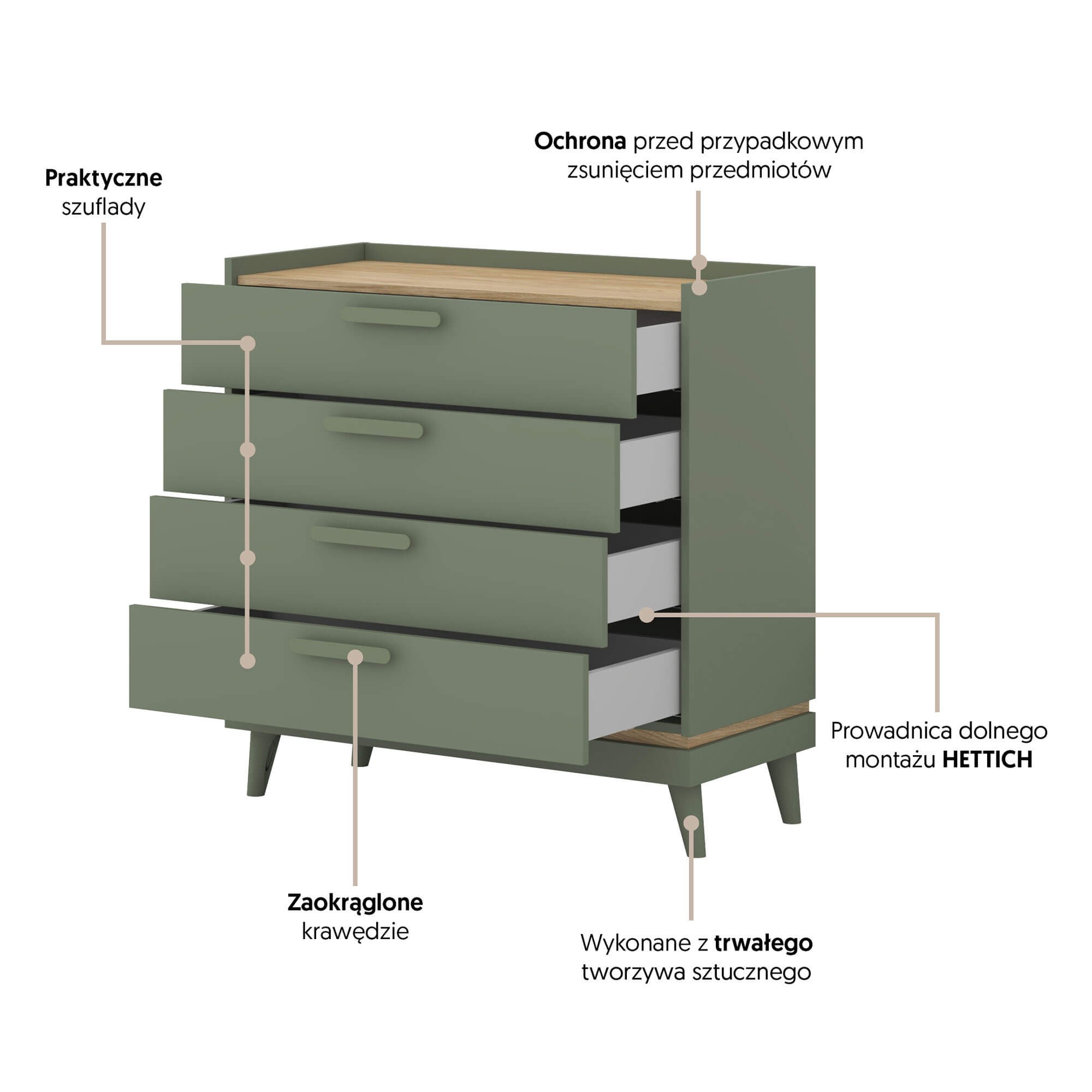 Komoda 4S SCANDI | Zgaszona zieleń-dąb olejowany