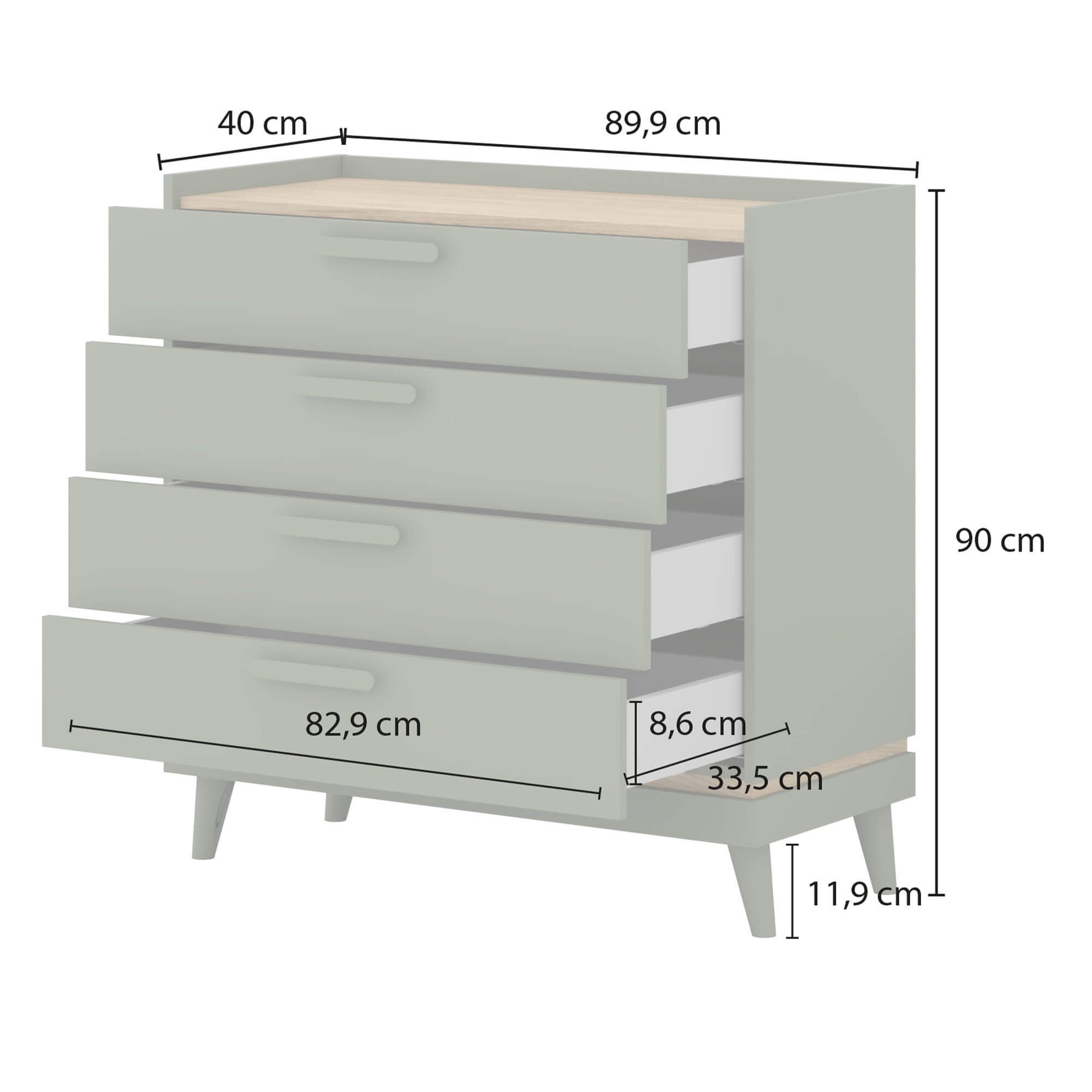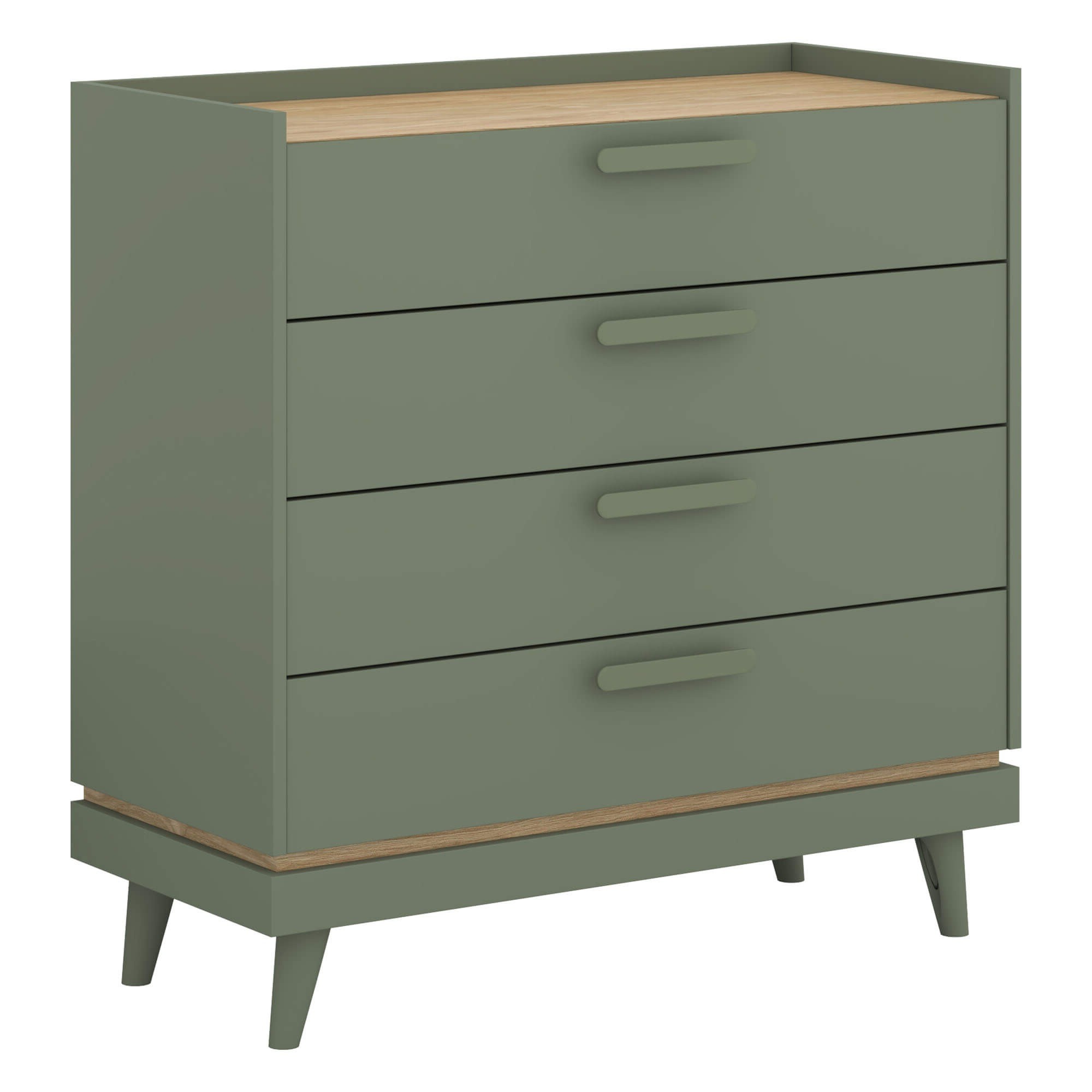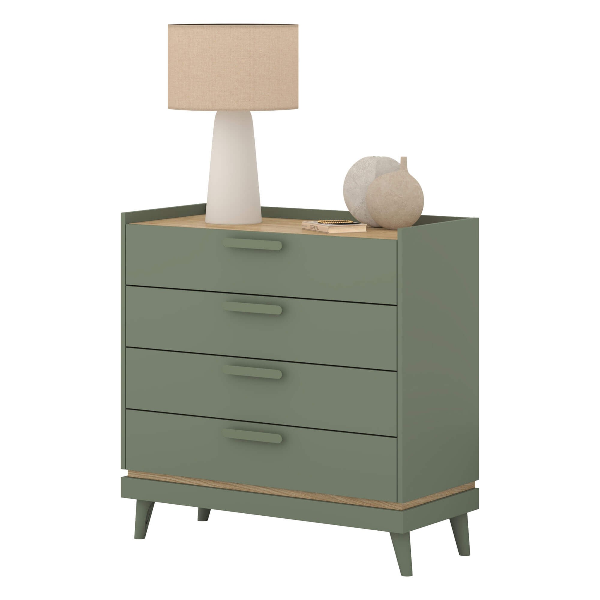 Komoda 4S SCANDI | Zgaszona zieleń-dąb olejowany