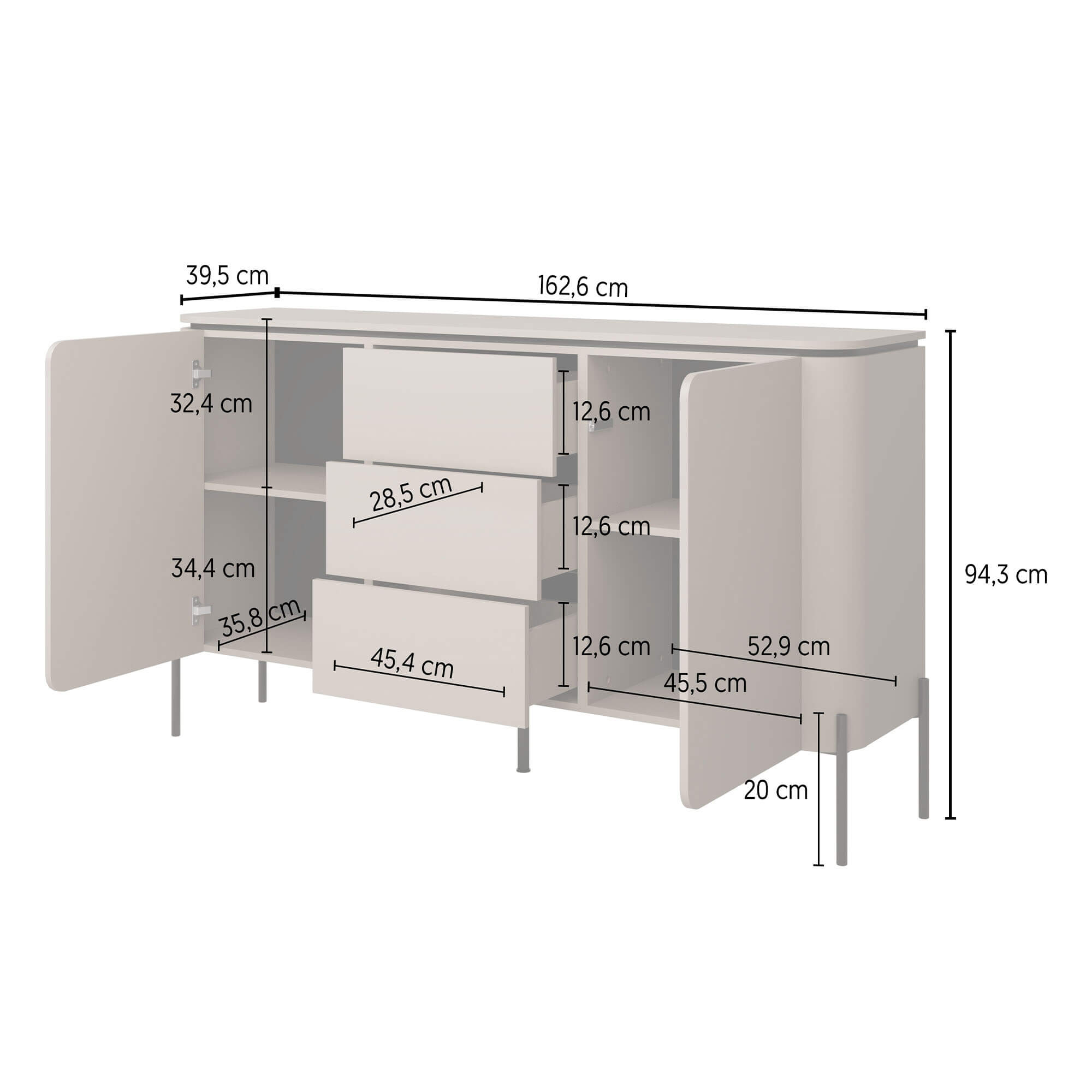 • Korpus wykonany z płyty meblowej laminowanej.