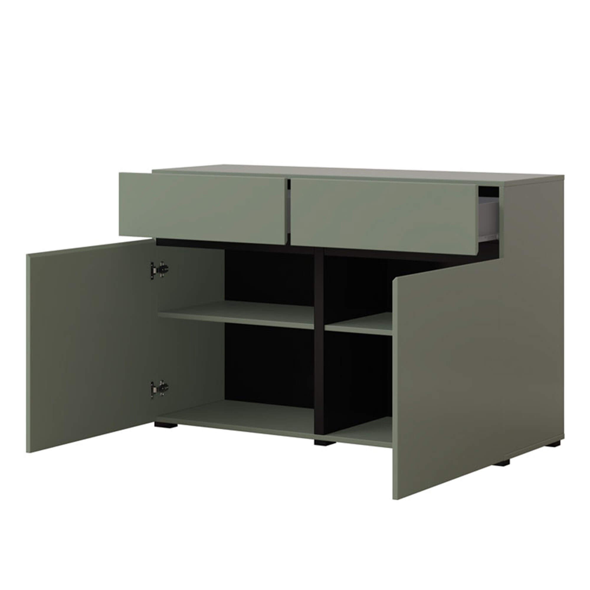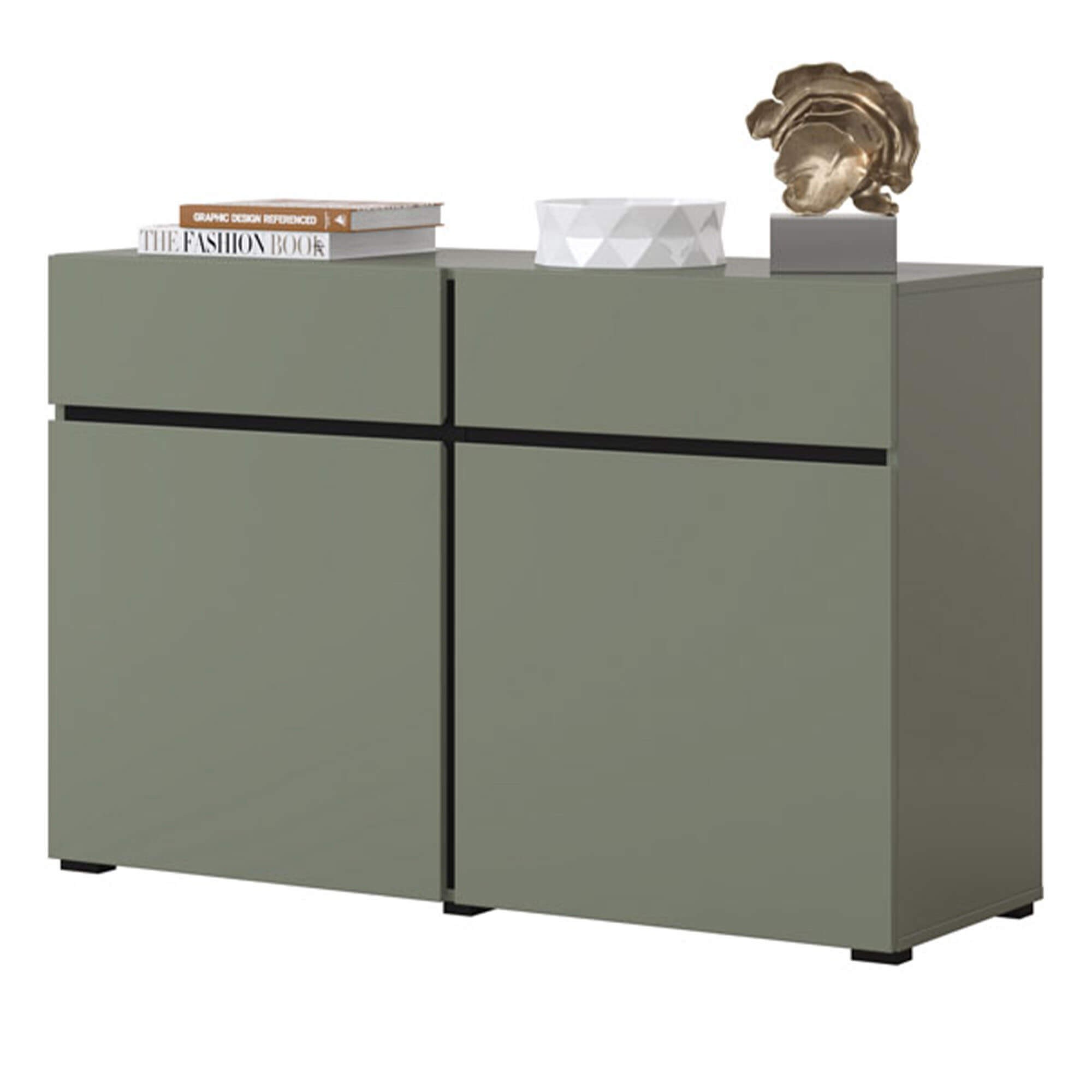 Komoda w nowoczesnym stylu zielona CROSS 119cm, 2 szafki i 2 szuflady