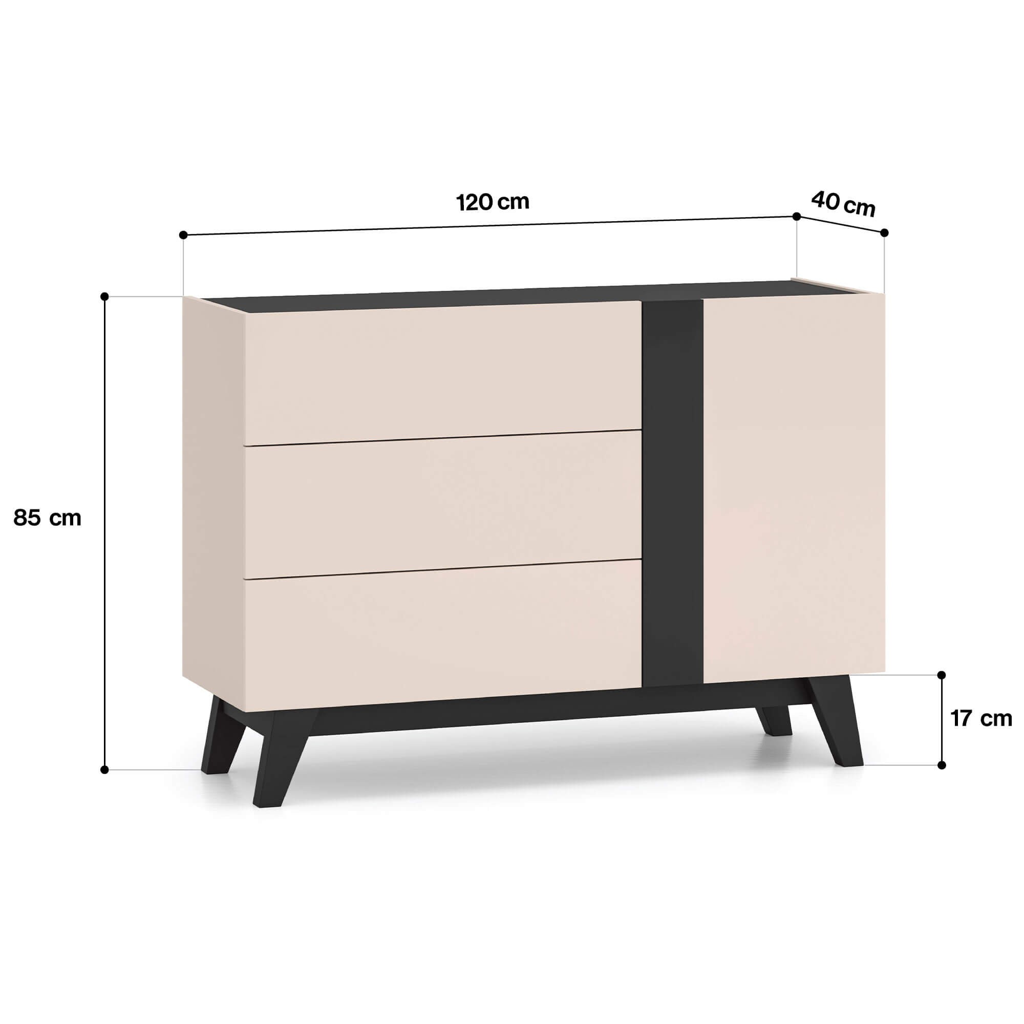 Mała komoda kaszmirowa 120cm FRESHION 04 na czarnych nóżkach – zgrabna i wyjątkowa!