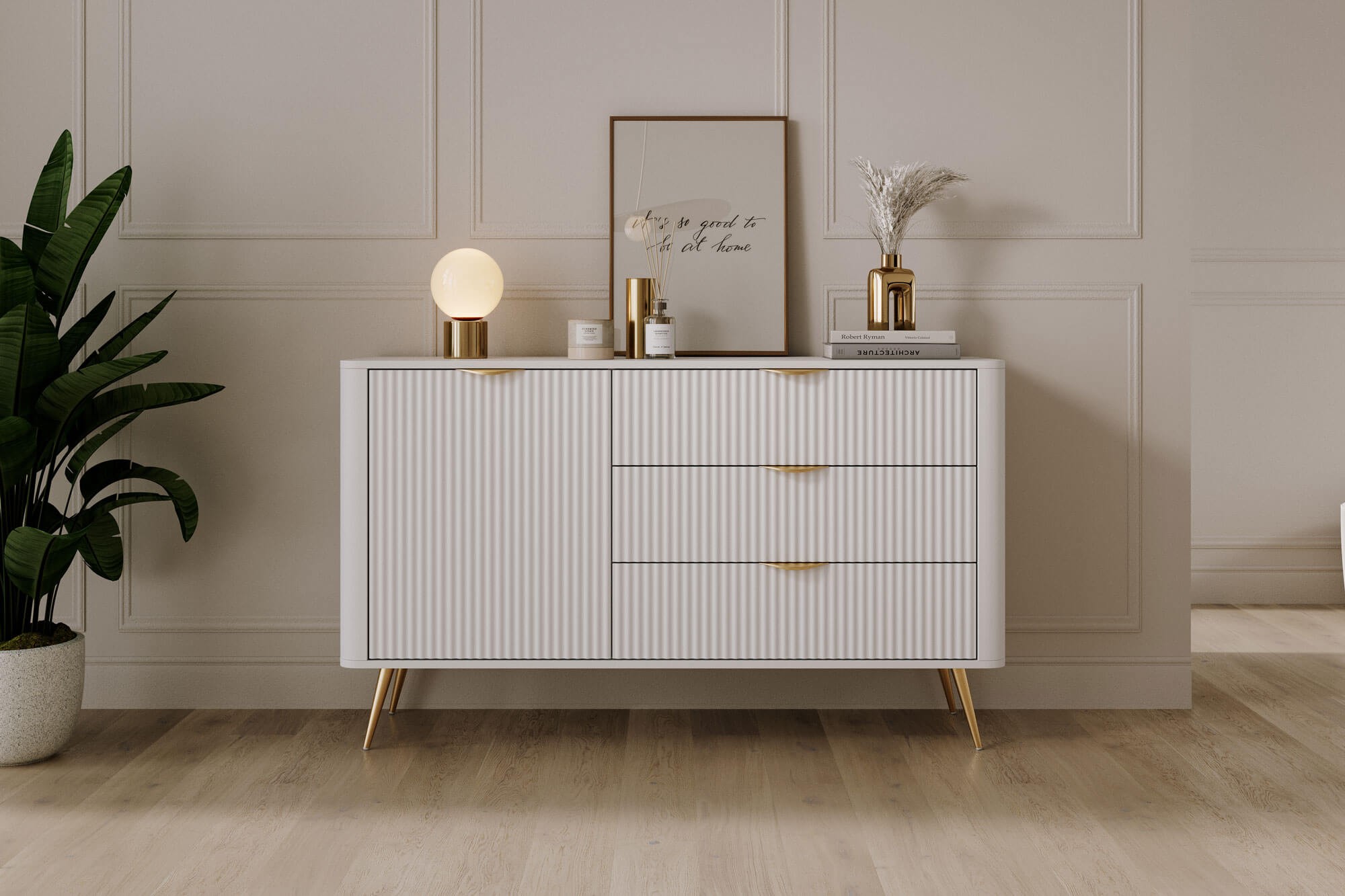 Komoda LANTE 1D3S | 138cm | Biały | Złote nogi