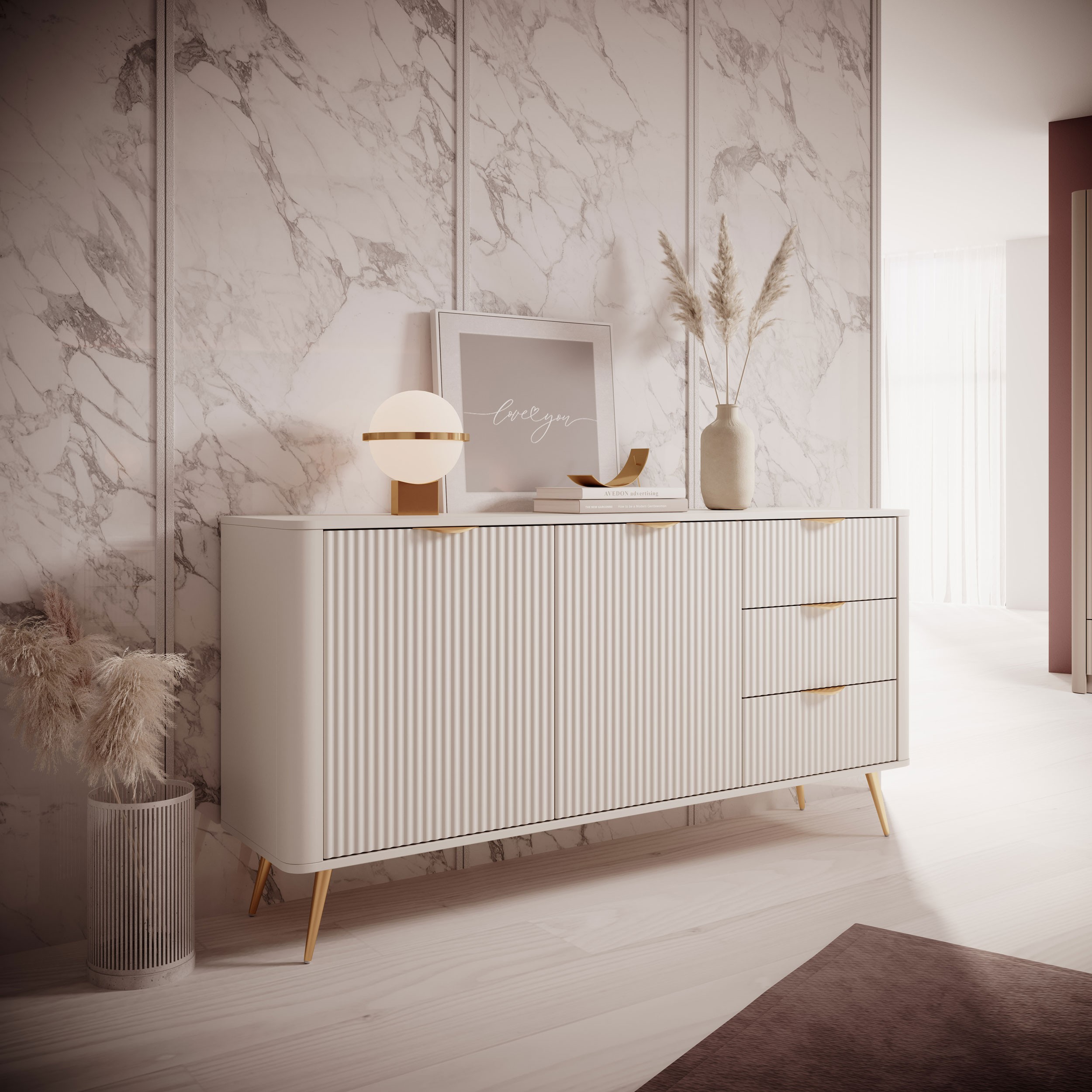 Komoda LANTE 2D3S | 163cm | Beżowy | Złote nogi