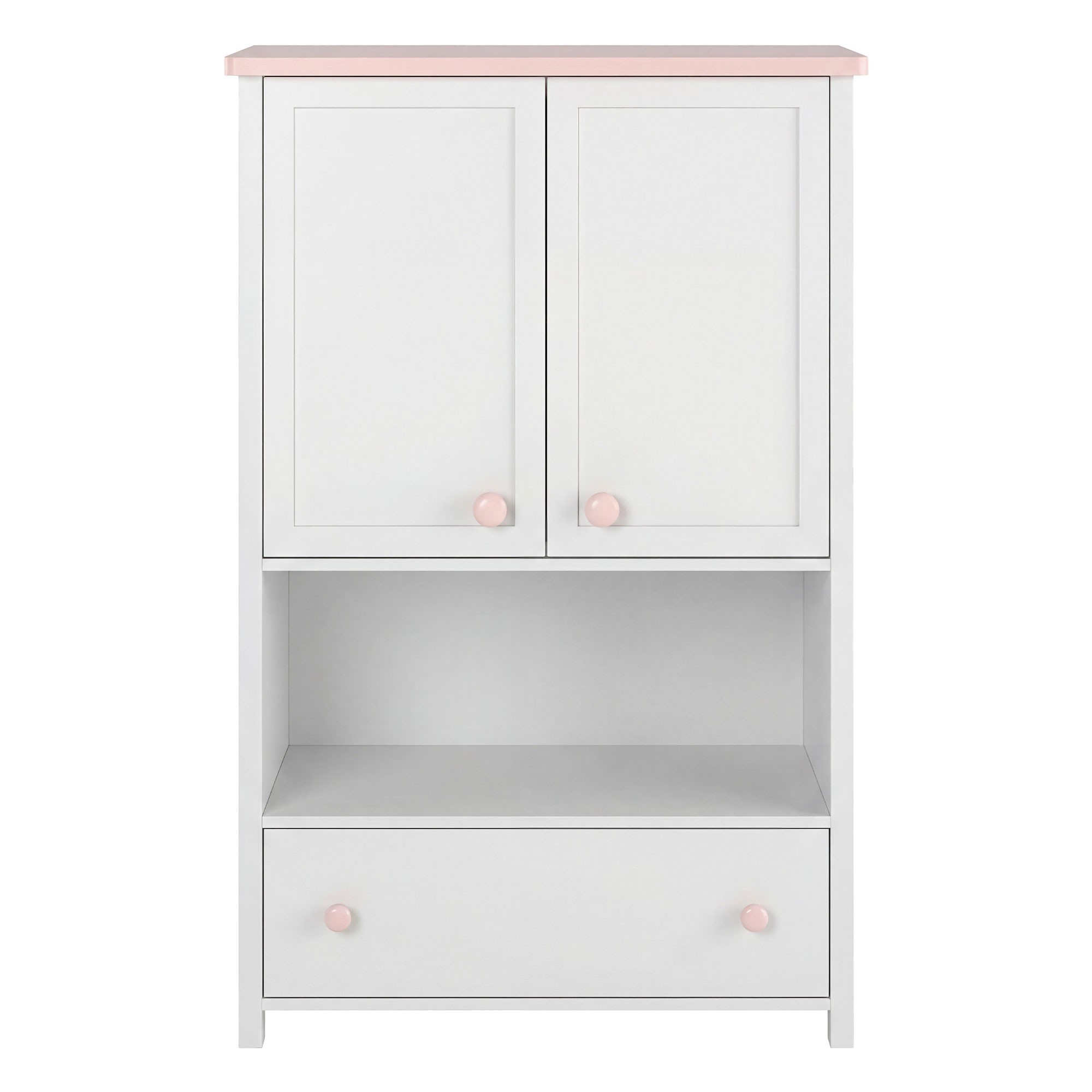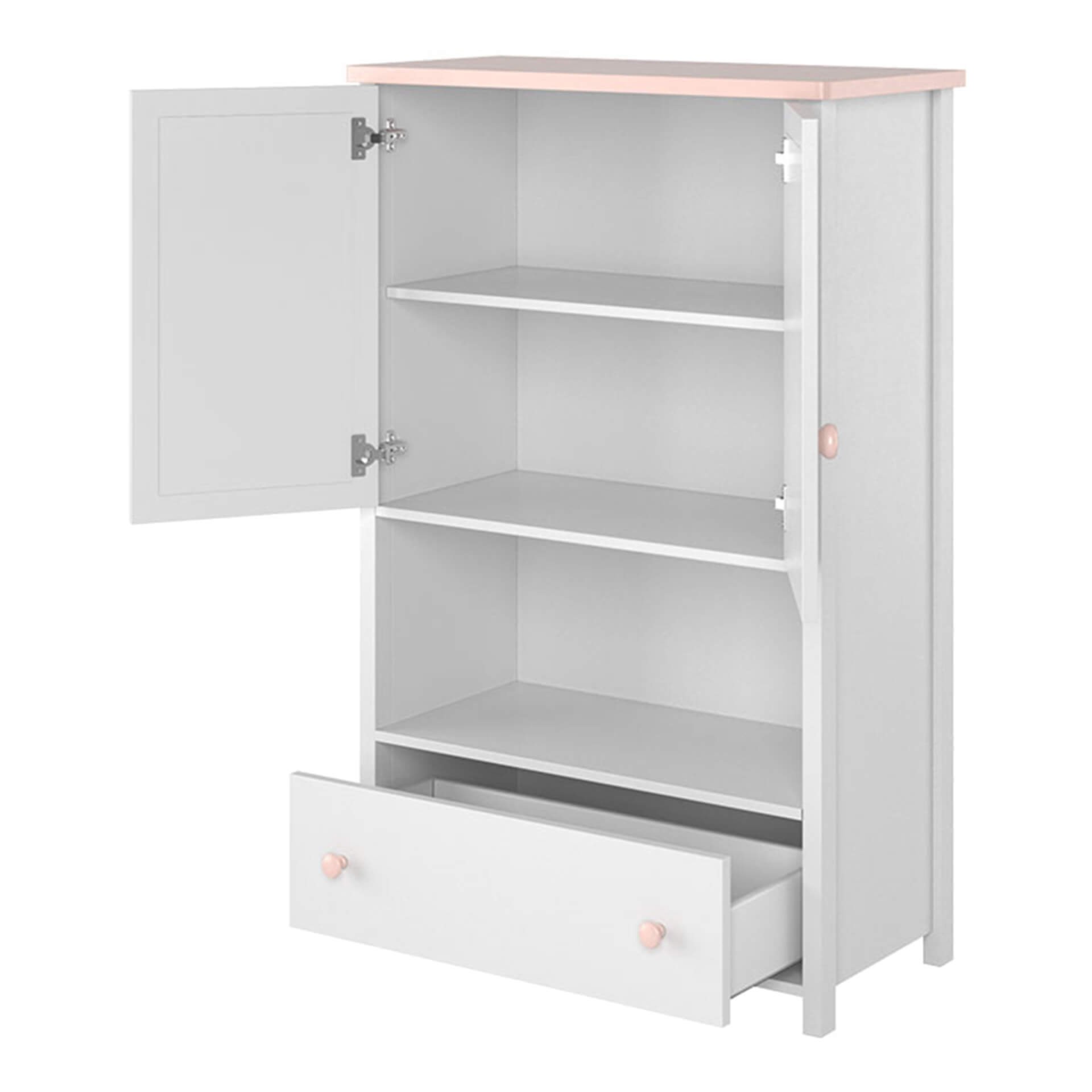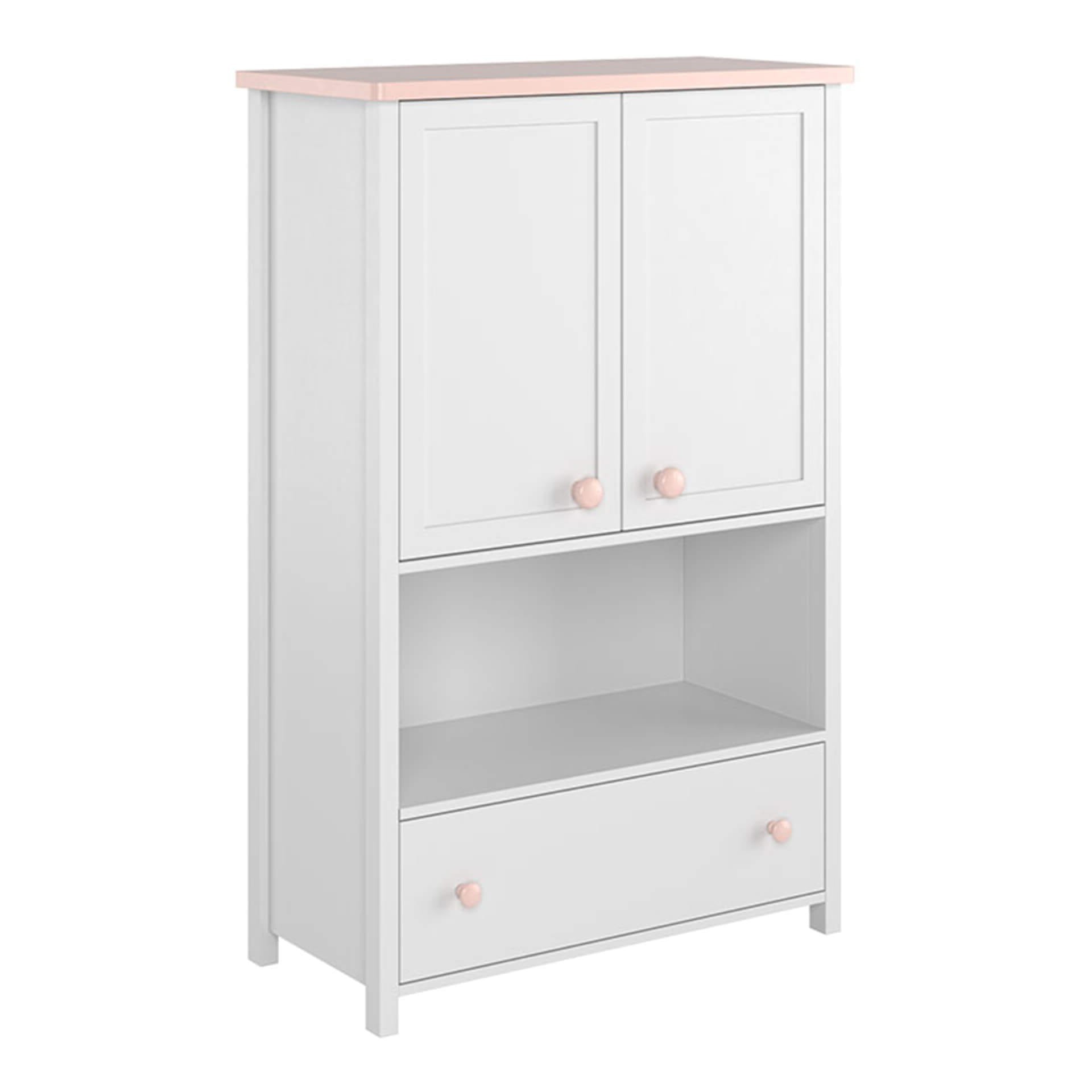 Wysoka komoda do pokoju dziewczynki – biel i pudrowy róż