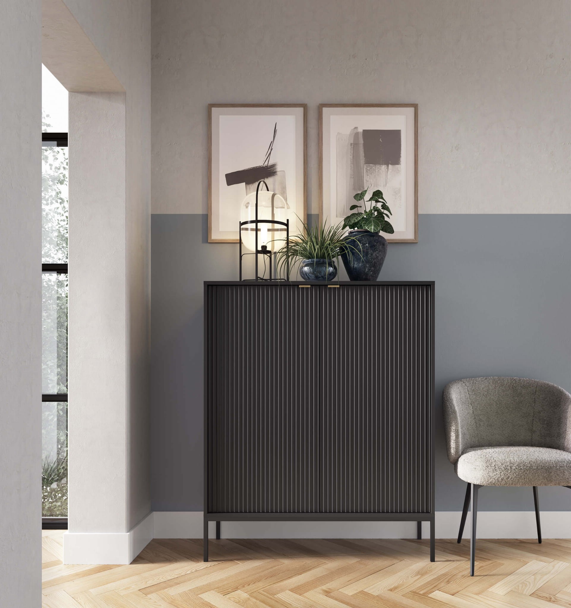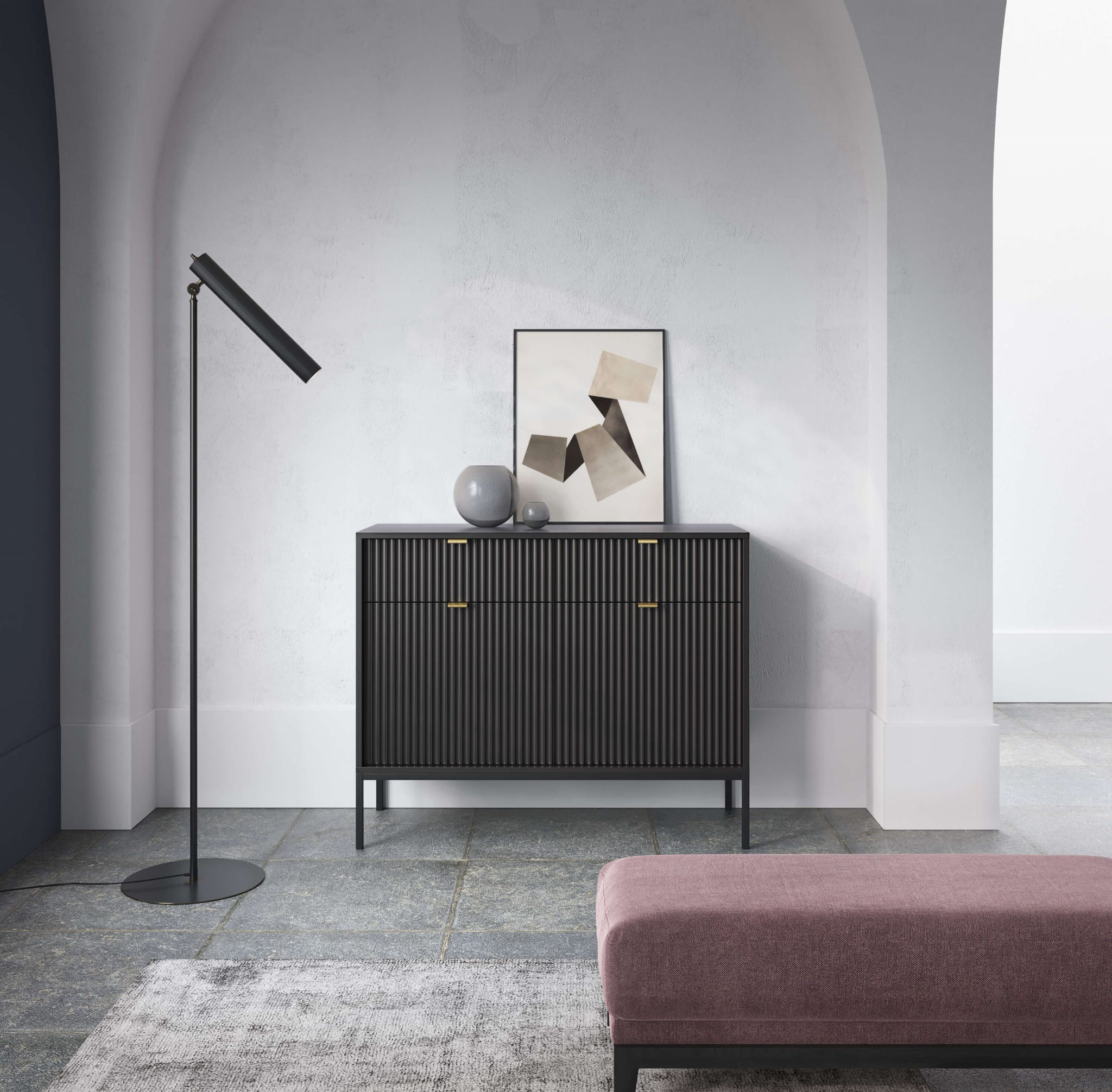 Kolekcja NOVA to doskonała propozycja dla tych, którzy cenią sobie elegancję i ponadczasowy design. Meble z tej linii katalogowej doskonale wpasują się do nowoczesnych salonów, sypialni czy gabinetów. Ich charakterystyczną cechą są proste kształty oraz smukłe nóżki, co sprawia, że utrzymanie porządku jest o wiele łatwiejsze. Meble dostępne są w trzech interesujących dekorach - białym, szarym i czarnym, co pozwala na aranżowanie pomieszczeń w minimalistycznym lub industrialnym stylu. Dodatkowym elementem ozdobnym są złote uchwyty, które dodają meblom elegancji i prestiżu.