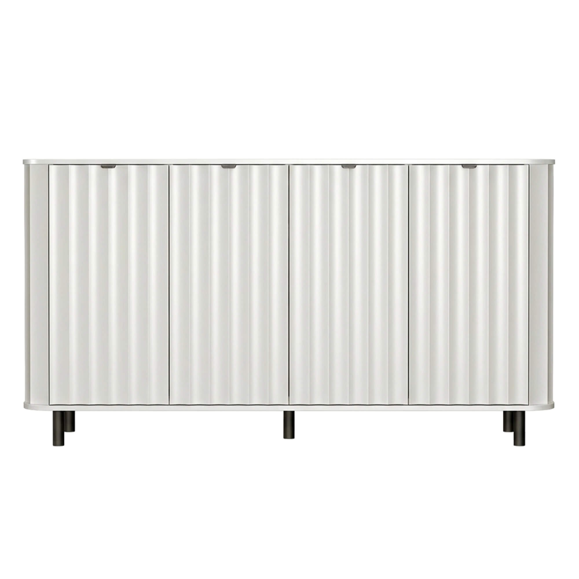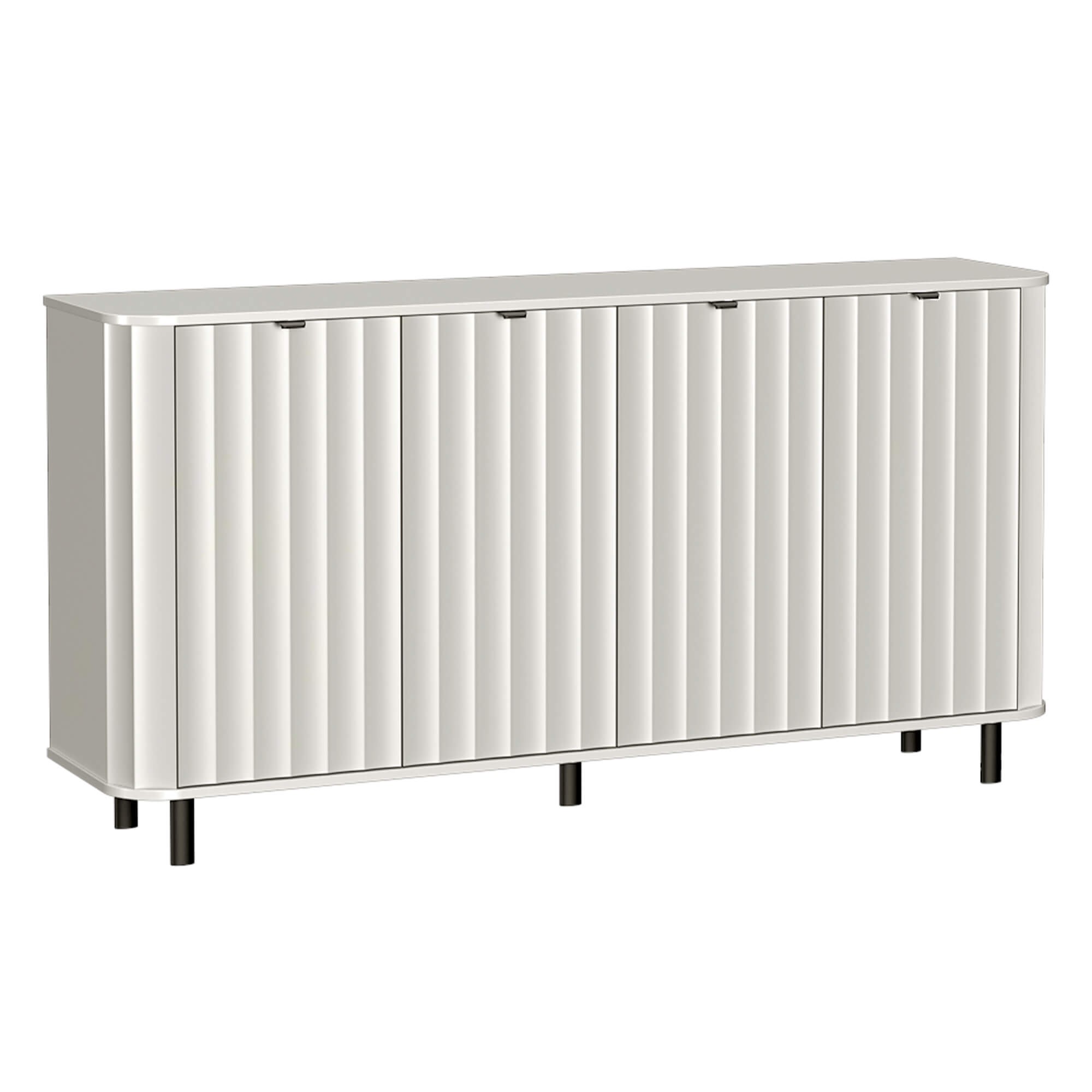 Wnętrze komody zostało zaprojektowane z myślą o najbardziej wymagających użytkownikach. Układ czterech pojemnych szafek pozwala na wygodne segregowanie przedmiotów – od zastawy stołowej po dokumenty czy tekstylia. Zastosowanie systemu cichego domyku oraz prowadnic z miękkim dociągiem sprawia, że codzienne korzystanie z mebla staje się czystą przyjemnością, bez zbędnego hałasu i trzaskania.