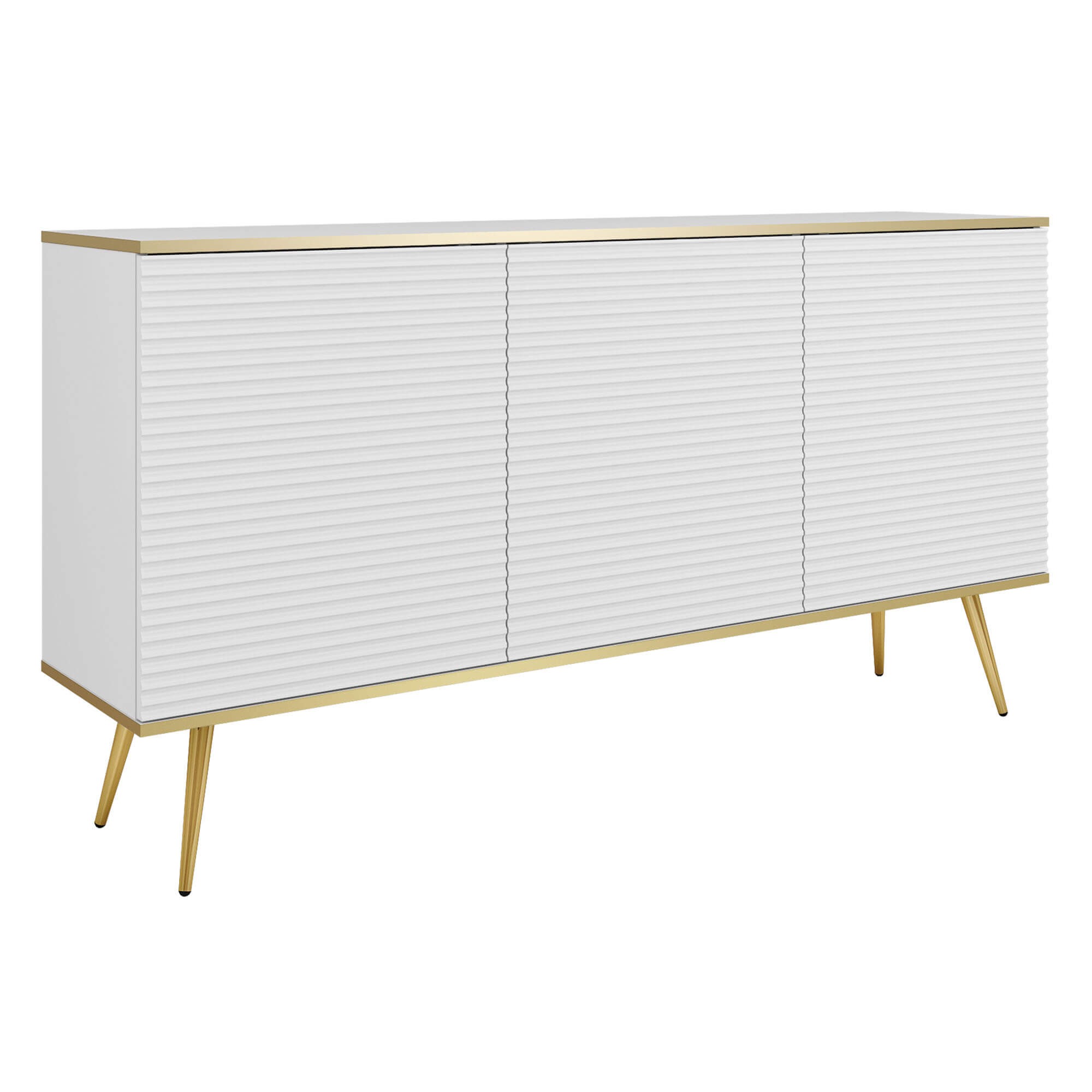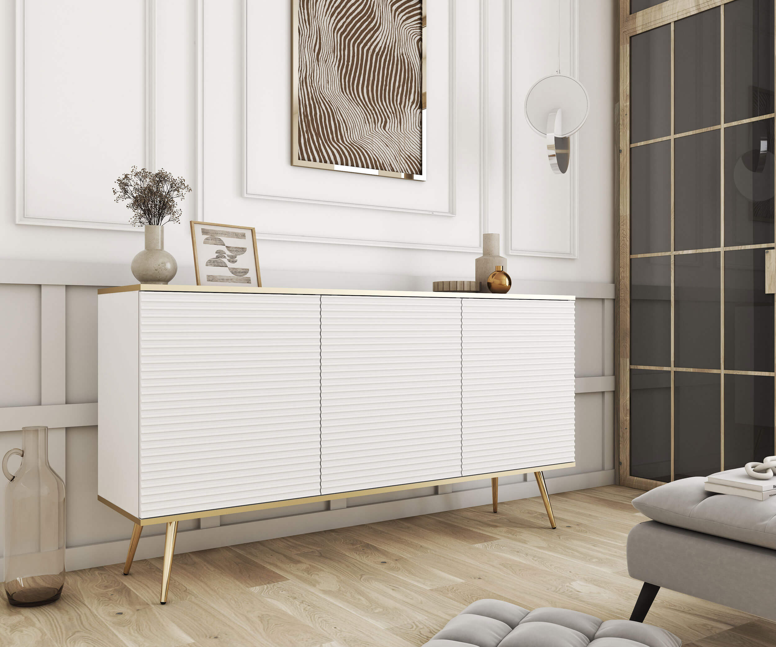 Komoda ORO MDF K-160 w klasycznym, matowym odcieniu bieli to doskonały sposób na wprowadzenie do wnętrza niepowtarzalnej elegancji i lekkiej nowoczesności. Delikatnie frezowane fronty tworzą trójwymiarowy efekt, który przyciąga spojrzenia i nadaje meblowi artystycznego wyrazu, a gładki korpus w czystej bieli subtelnie rozświetla przestrzeń, sprawiając, że nawet niewielki salon czy sypialnia wydają się większe i bardziej przytulne. Bezuchwytowe drzwi otwierają się jednym dotknięciem dzięki innowacyjnemu systemowi „push-to-open”, a ich ciche domykanie potęguje wrażenie luksusu i dbałości o każdy detal. Złociste wykończenia na blacie i cokole dodają komodzie niezwykłego smaku, łącząc minimalistyczną formę z wysmakowanym akcentem glamour. Solidne nóżki o stożkowym kształcie zapewniają lekkość i stabilność, a regulowane stopki pozwalają idealnie wypoziomować mebel nawet na nierównej podłodze. Wnętrze ukryte za trzema frontami to przemyślane rozwiązanie, które pozwala na eleganckie przechowywanie dekoracji, książek czy akcesoriów, a dyskretnie ukryte łączniki Minifix i drewniane kołki gwarantują solidność i estetykę bez widocznych śrub. Komoda ORO MDF K-160 Biały to połączenie funkcjonalności, wyrafinowanego designu i najwyższej jakości wykonania – wybierz ją, by nadać swojemu wnętrzu ponadczasowego charakteru i cieszyć się pięknem detali każdego dnia!