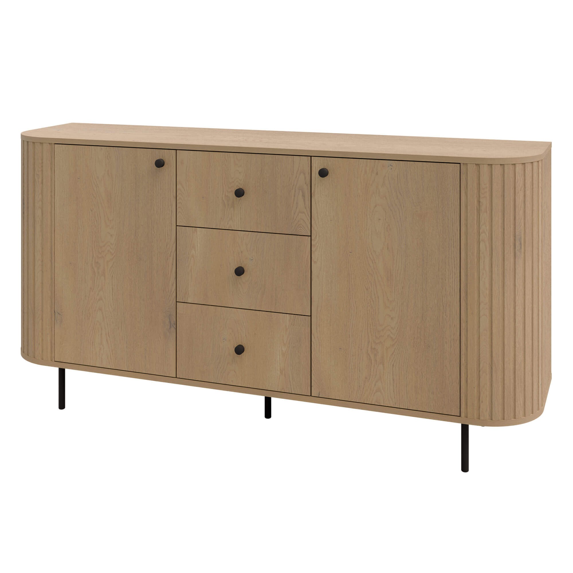 - Ryflowana komoda OVALIO - naturalny dekor dąb cremona w połączeniu z kontrastującymi czarnymi akcentami