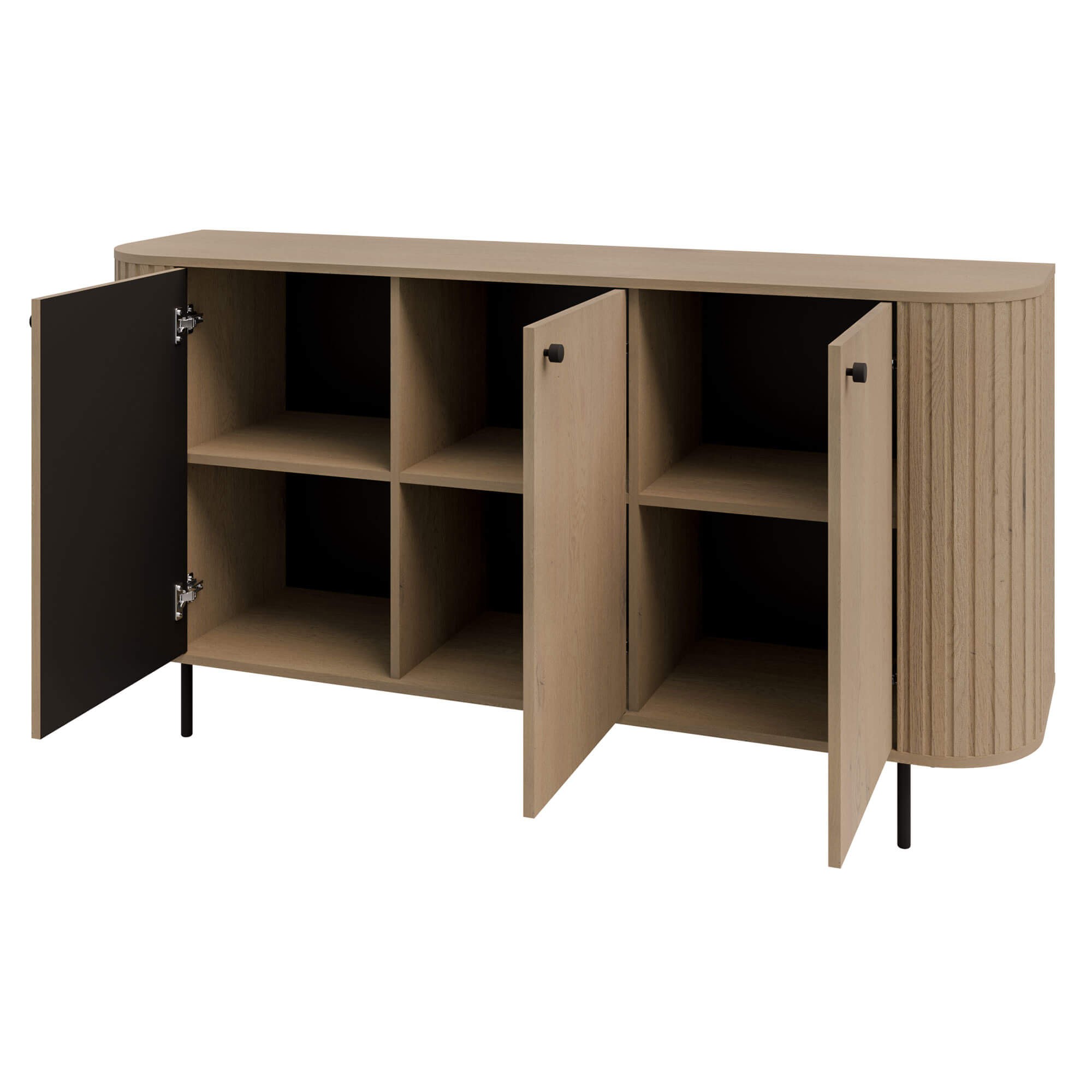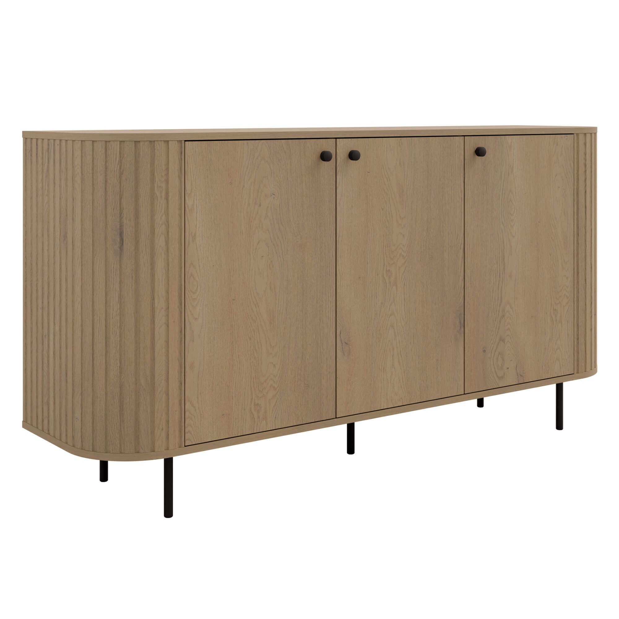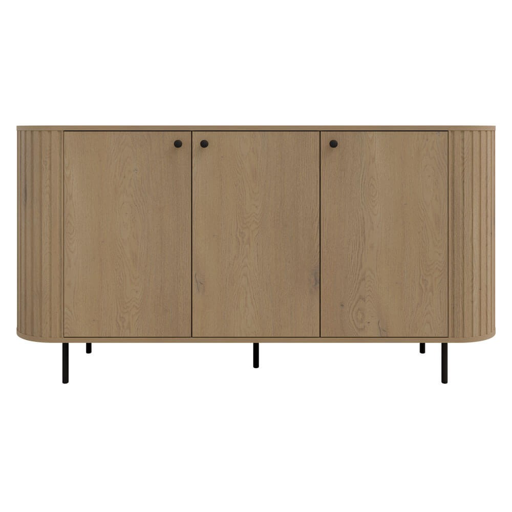 Komoda loftowa trzydrzwiowa OVALIO 164,6 cm – dąb cremona, czarne nogi