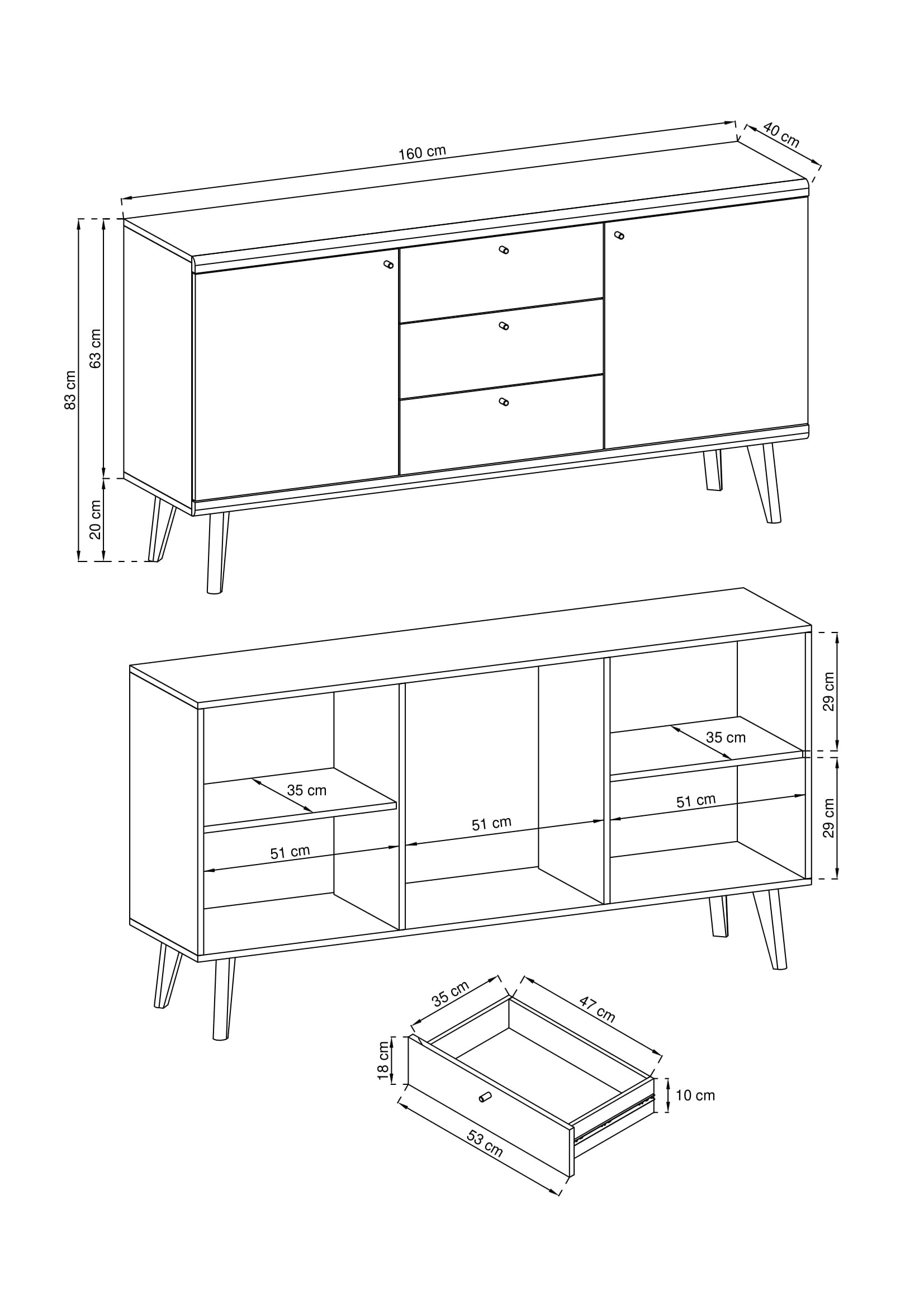 • Wykonany z wysokiej jakości płyty obustronnie laminowanej