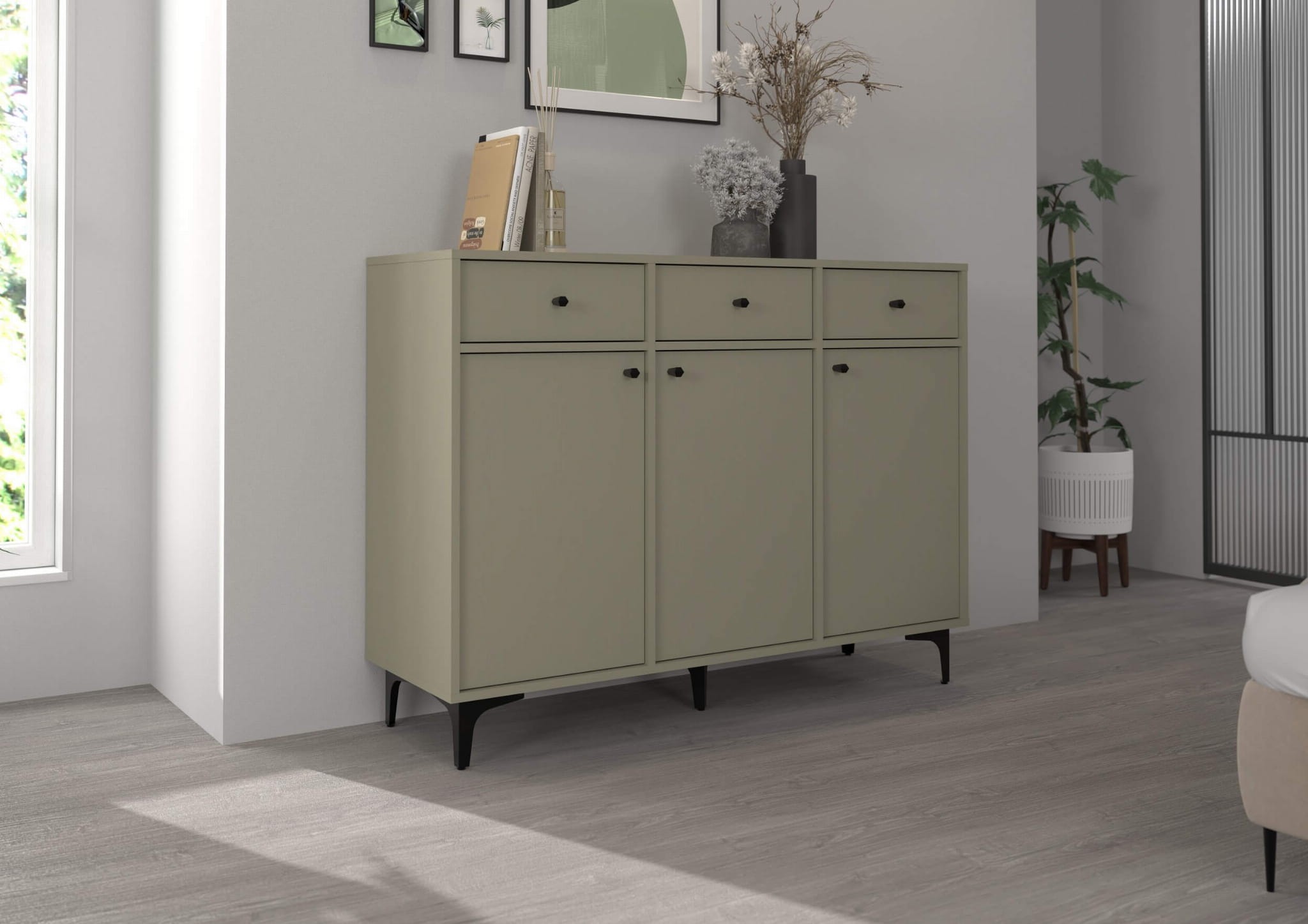 Komoda TOKYO 1 3F3S | Typ 827 | Eukaliptus | Czarne nogi