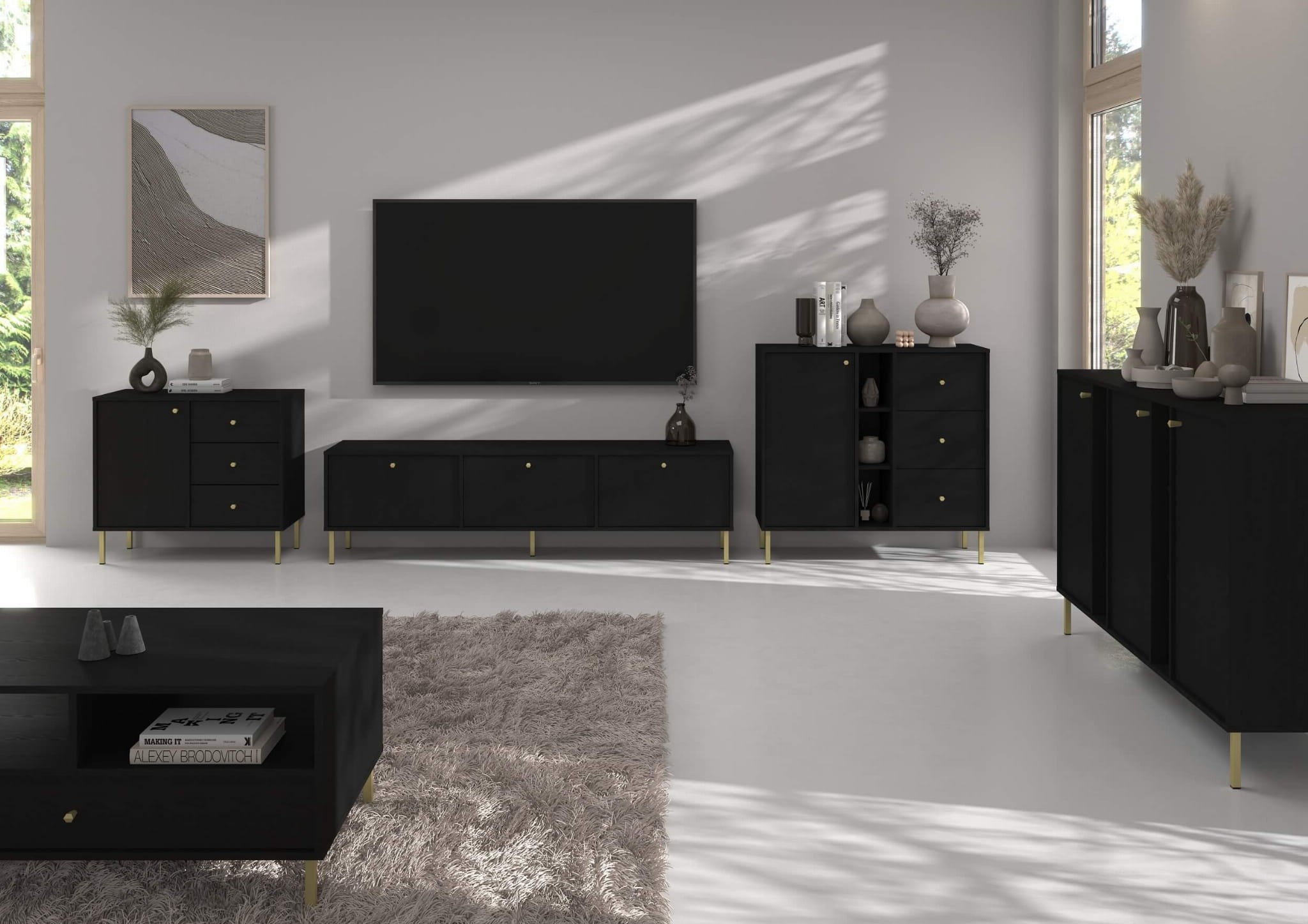 Komoda TOKYO 2 2F2S | Typ 825 | Czarny grafit | Złote nogi proste