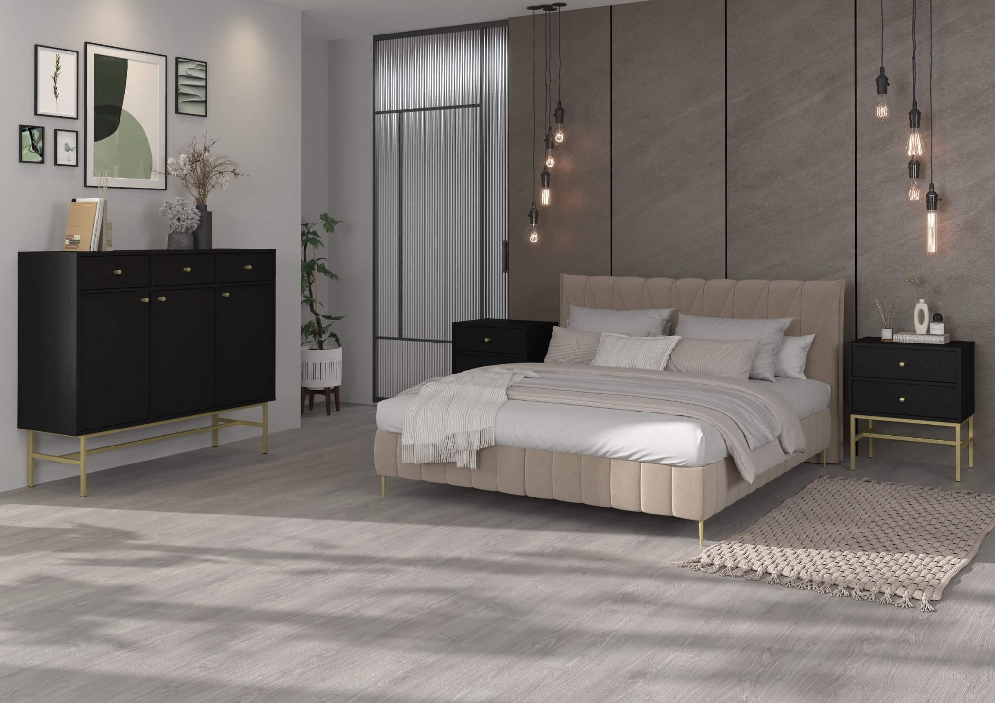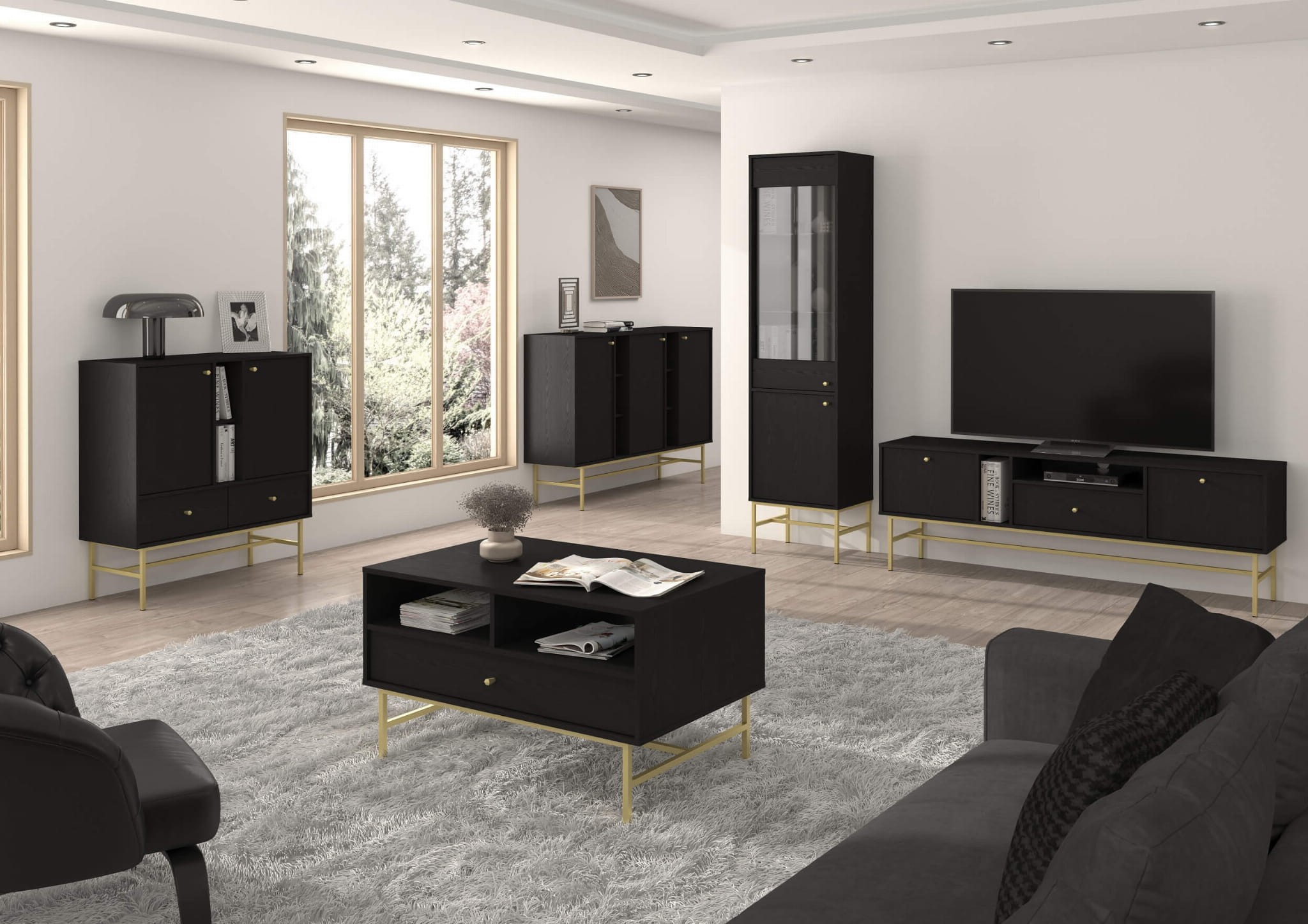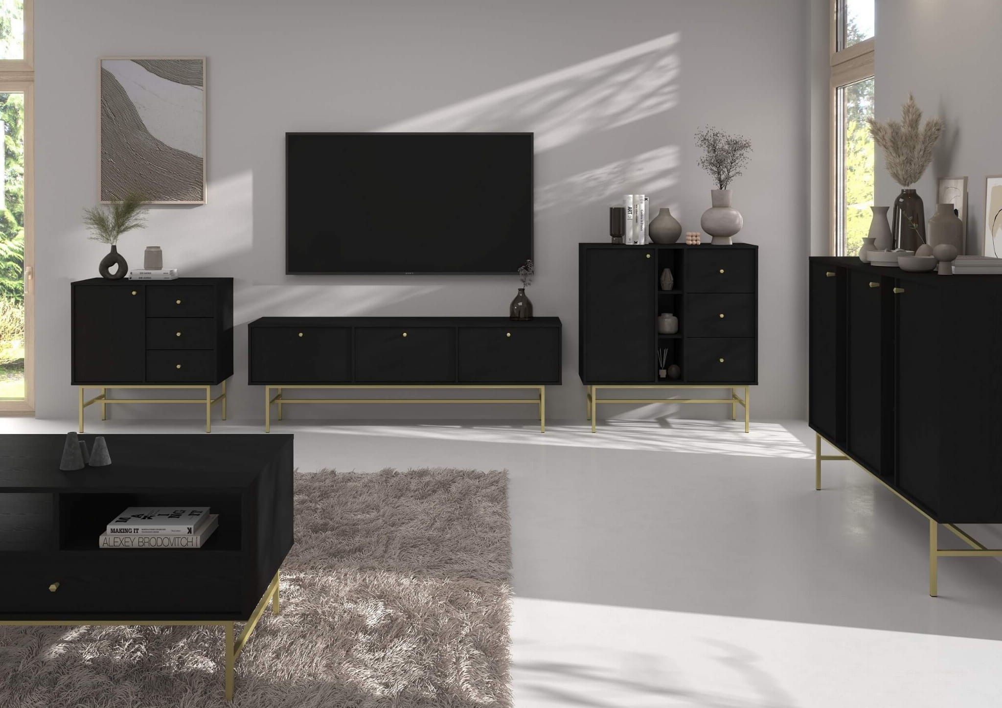 Komoda TOKYO 3 2F | Typ 822 | Czarny grafit | Złoty stelaż